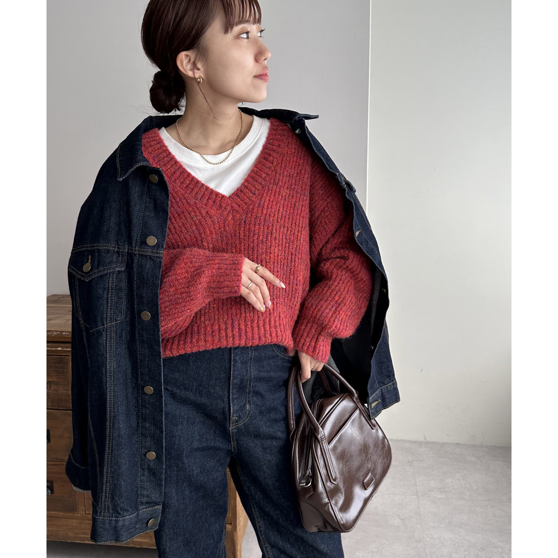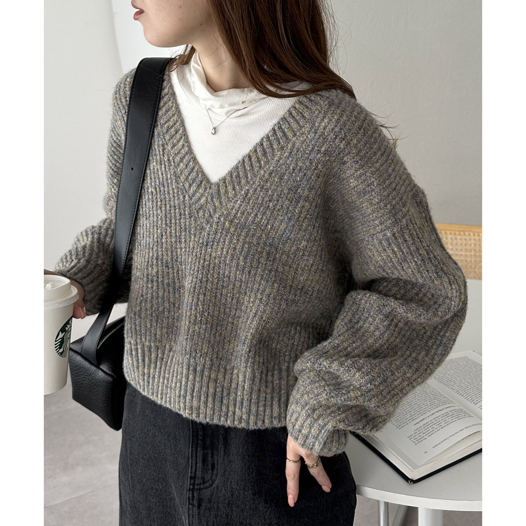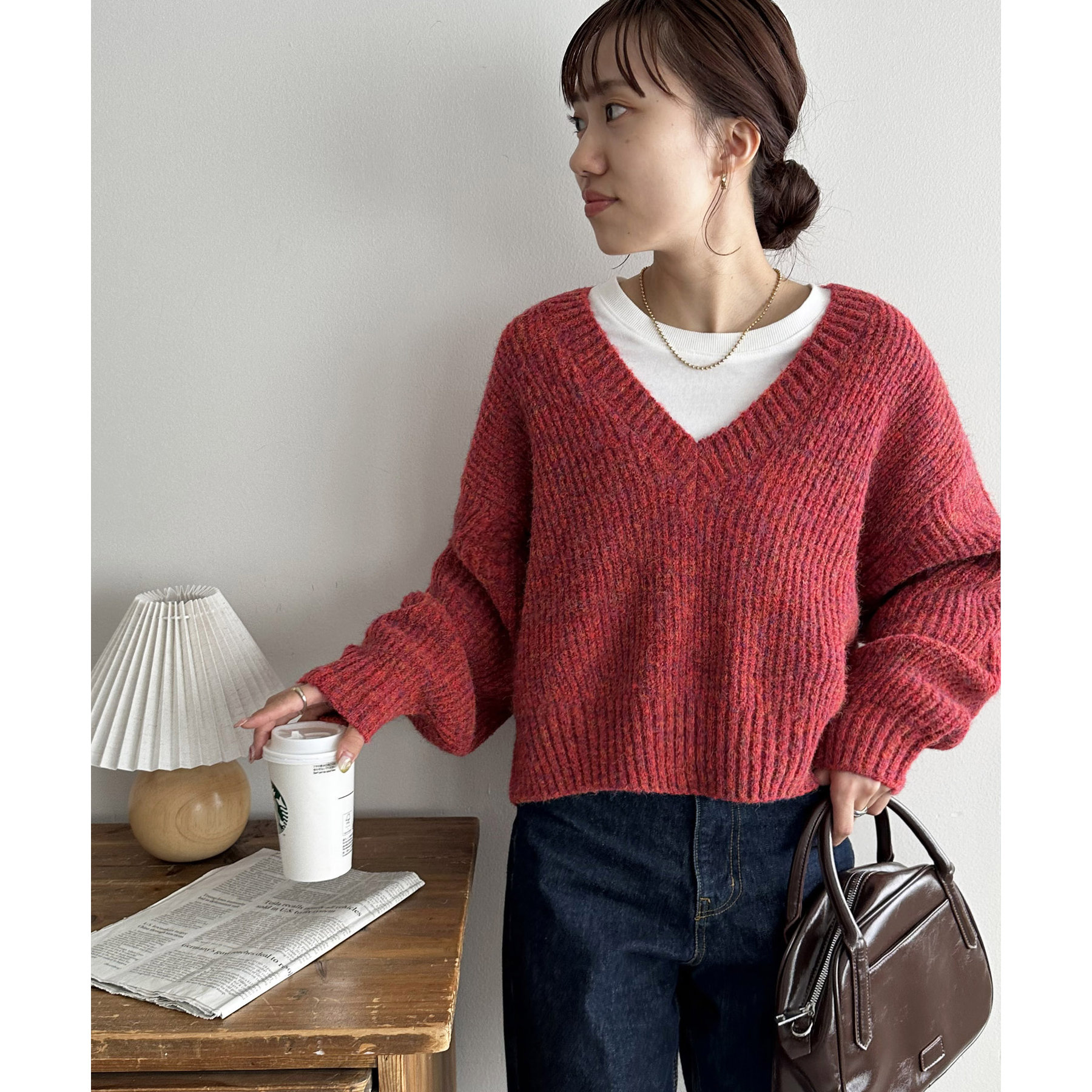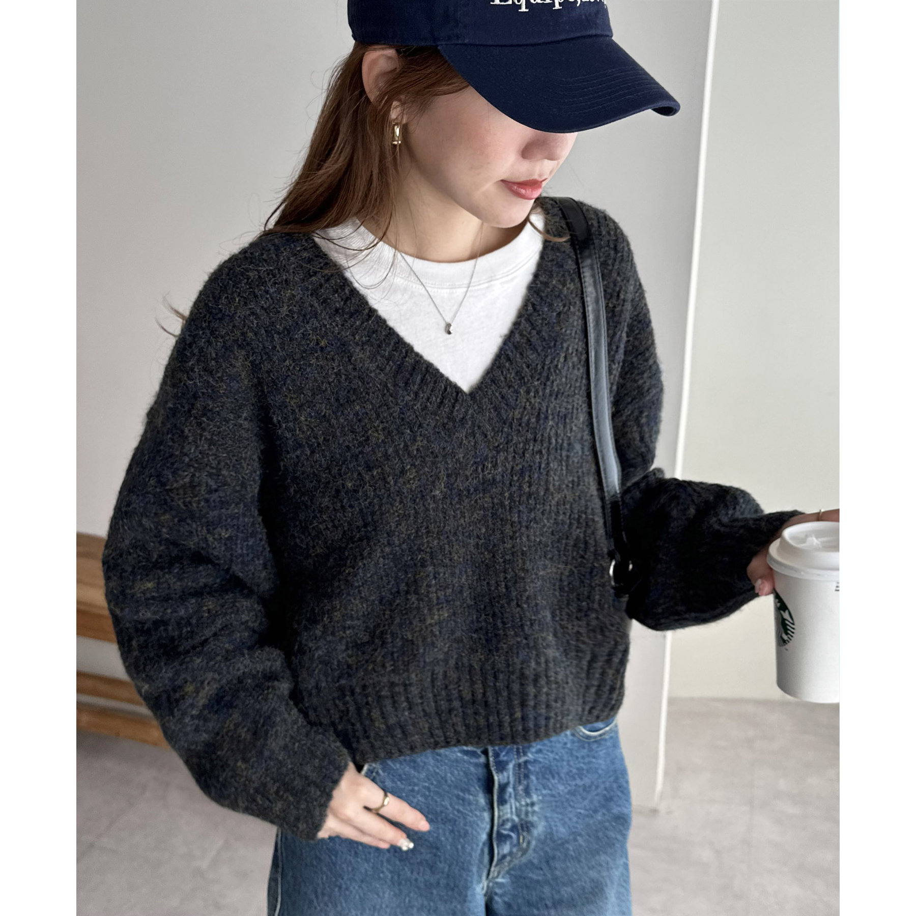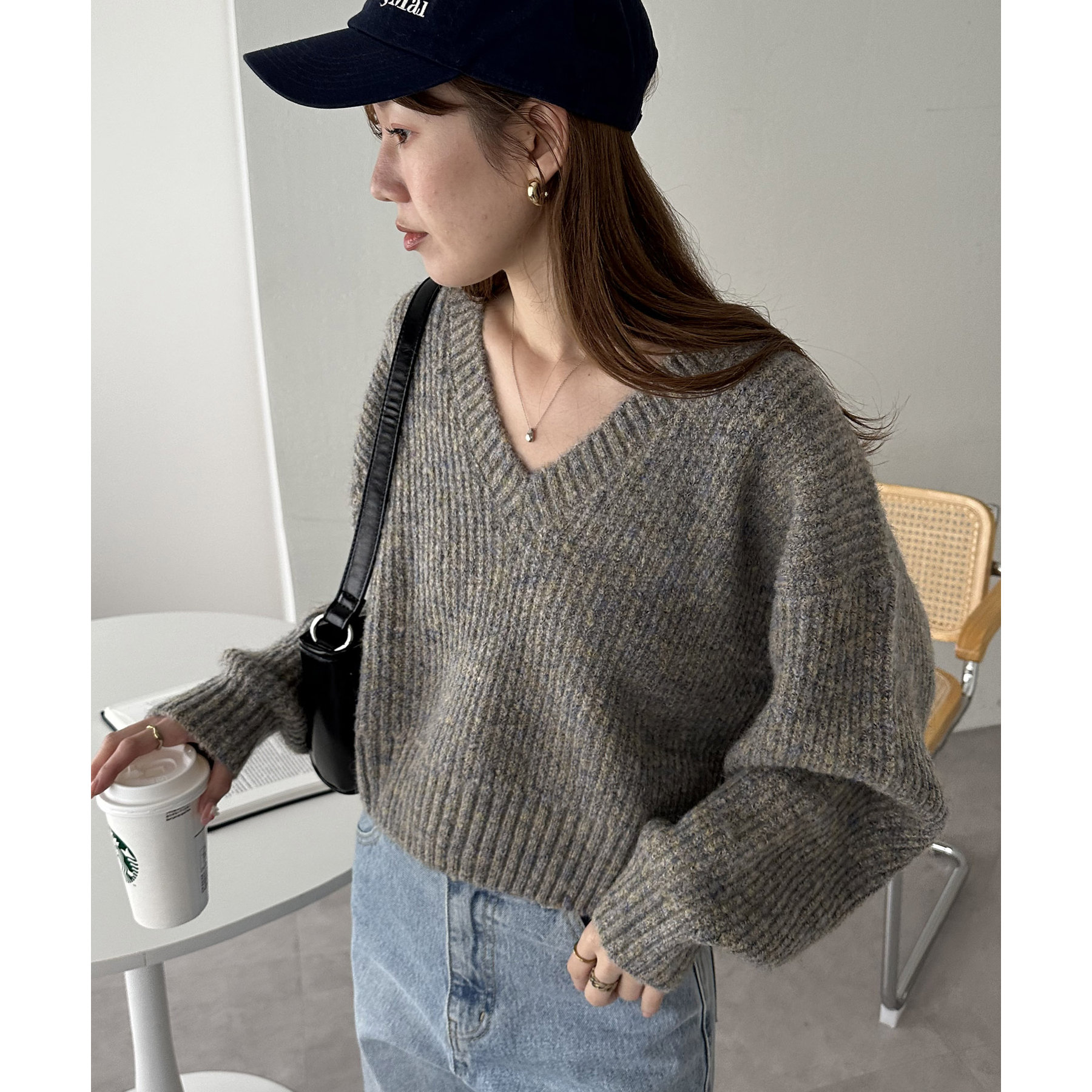 一枚で抜け感の出るVネックニット