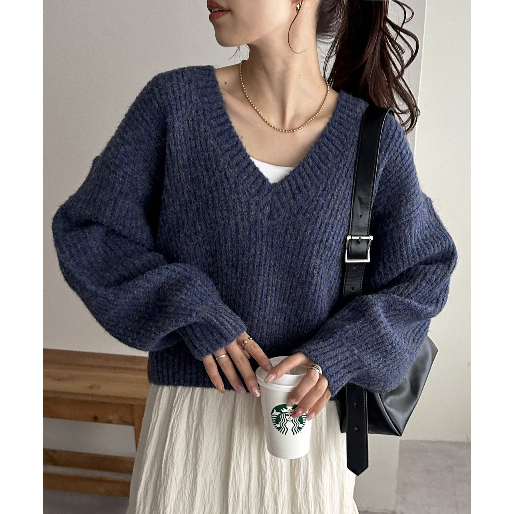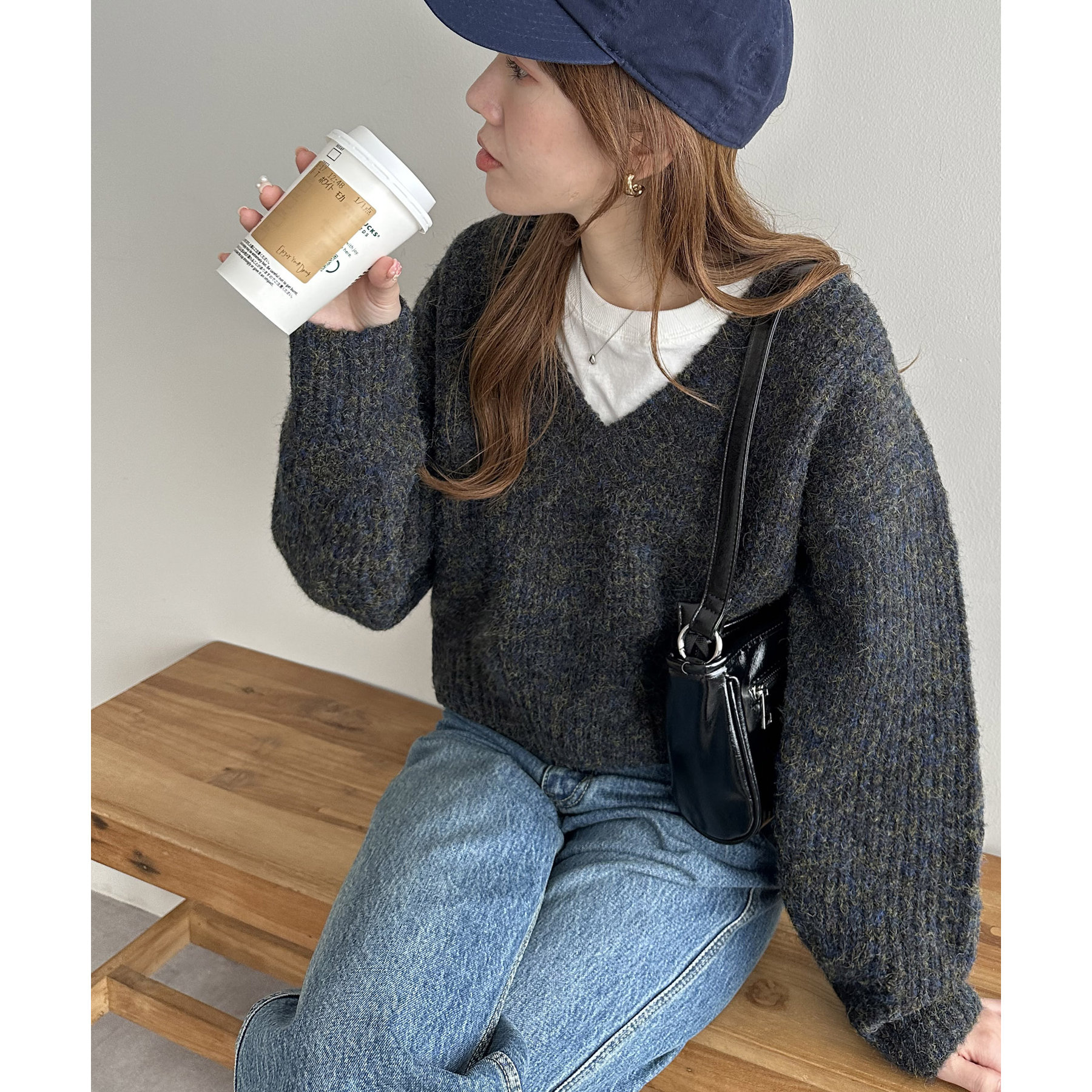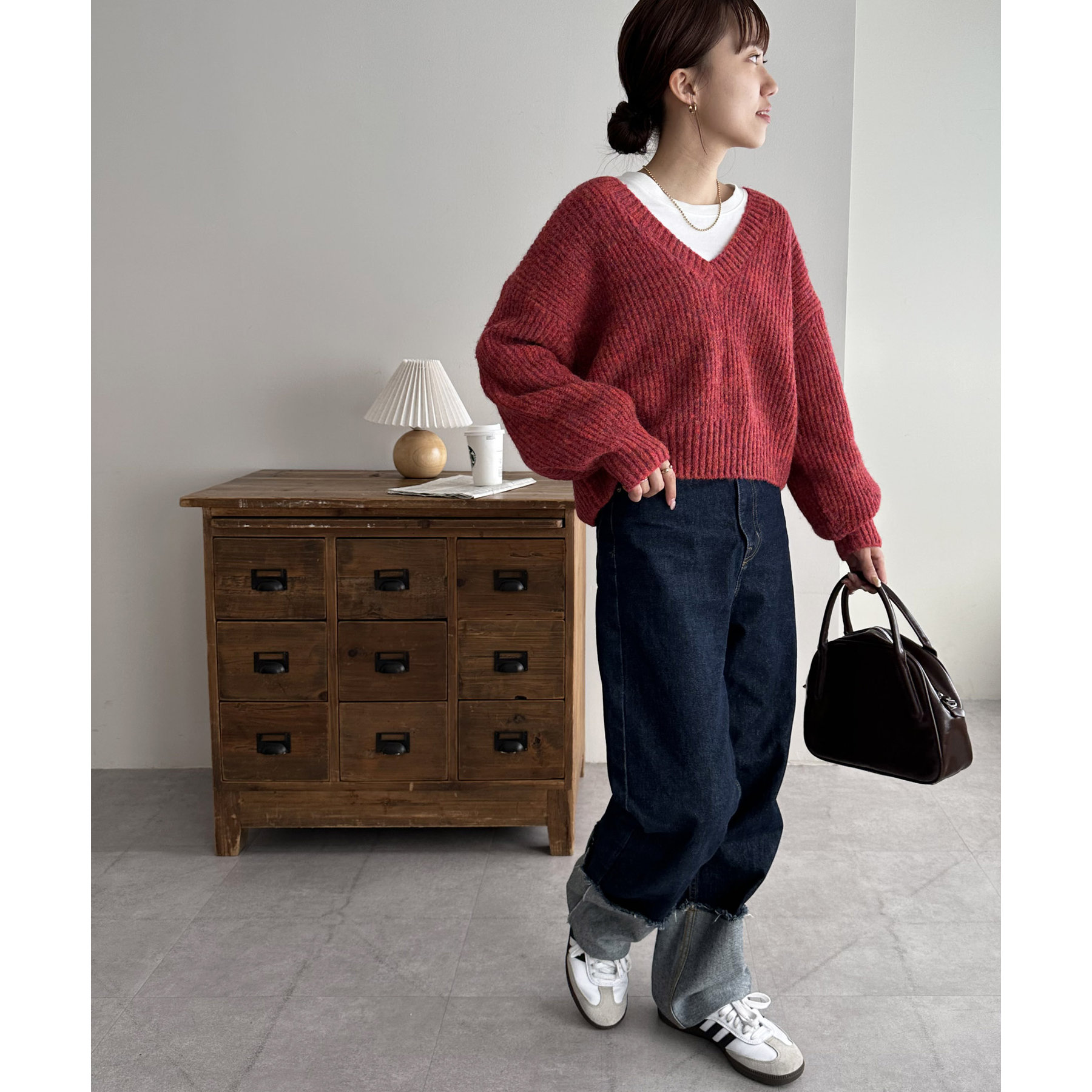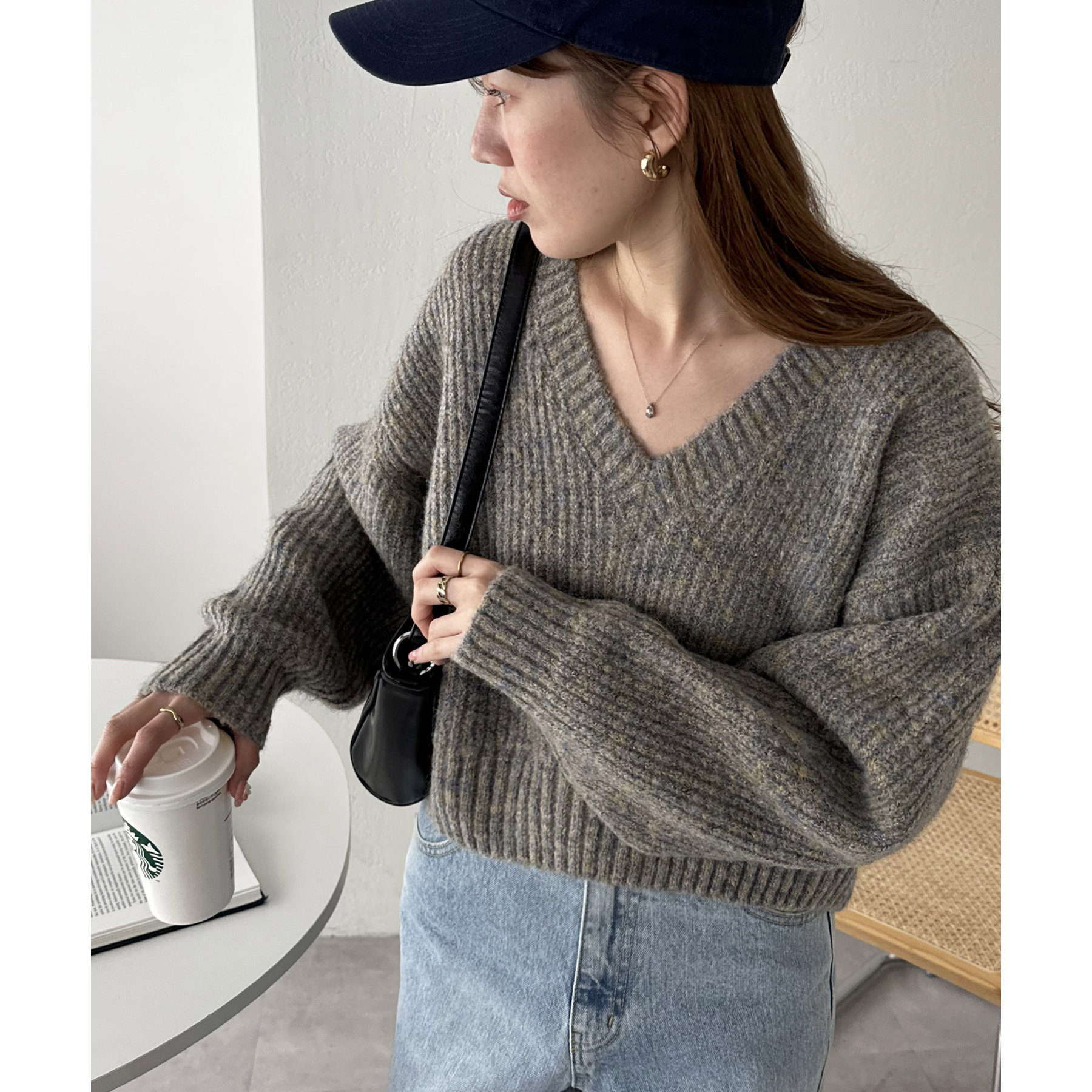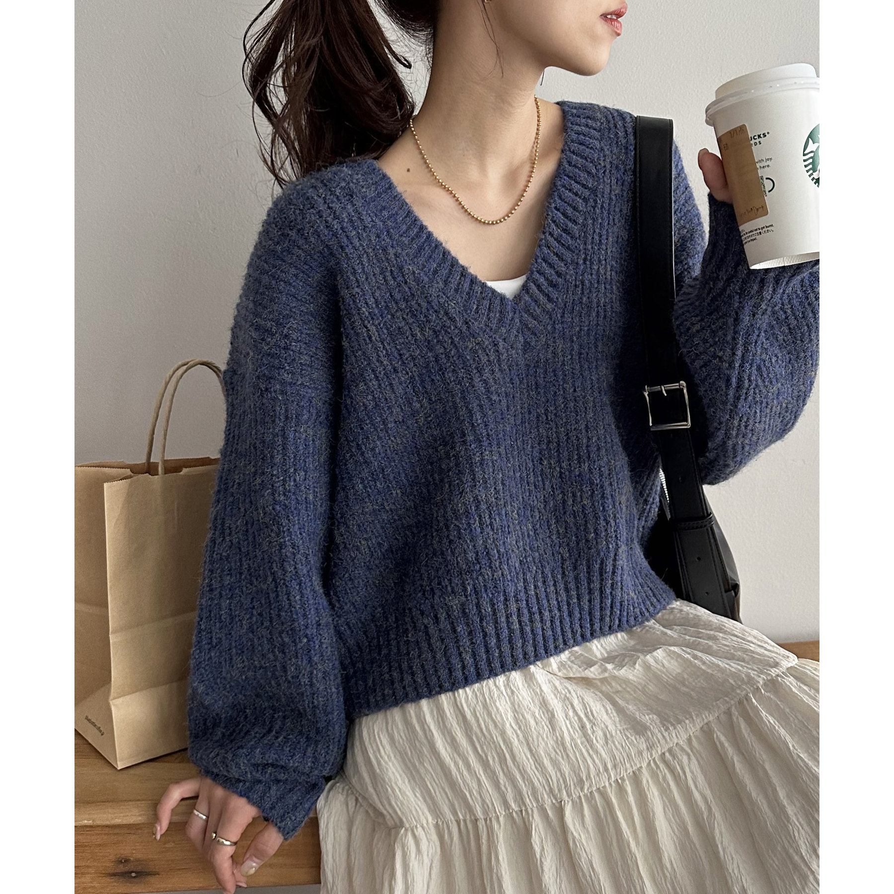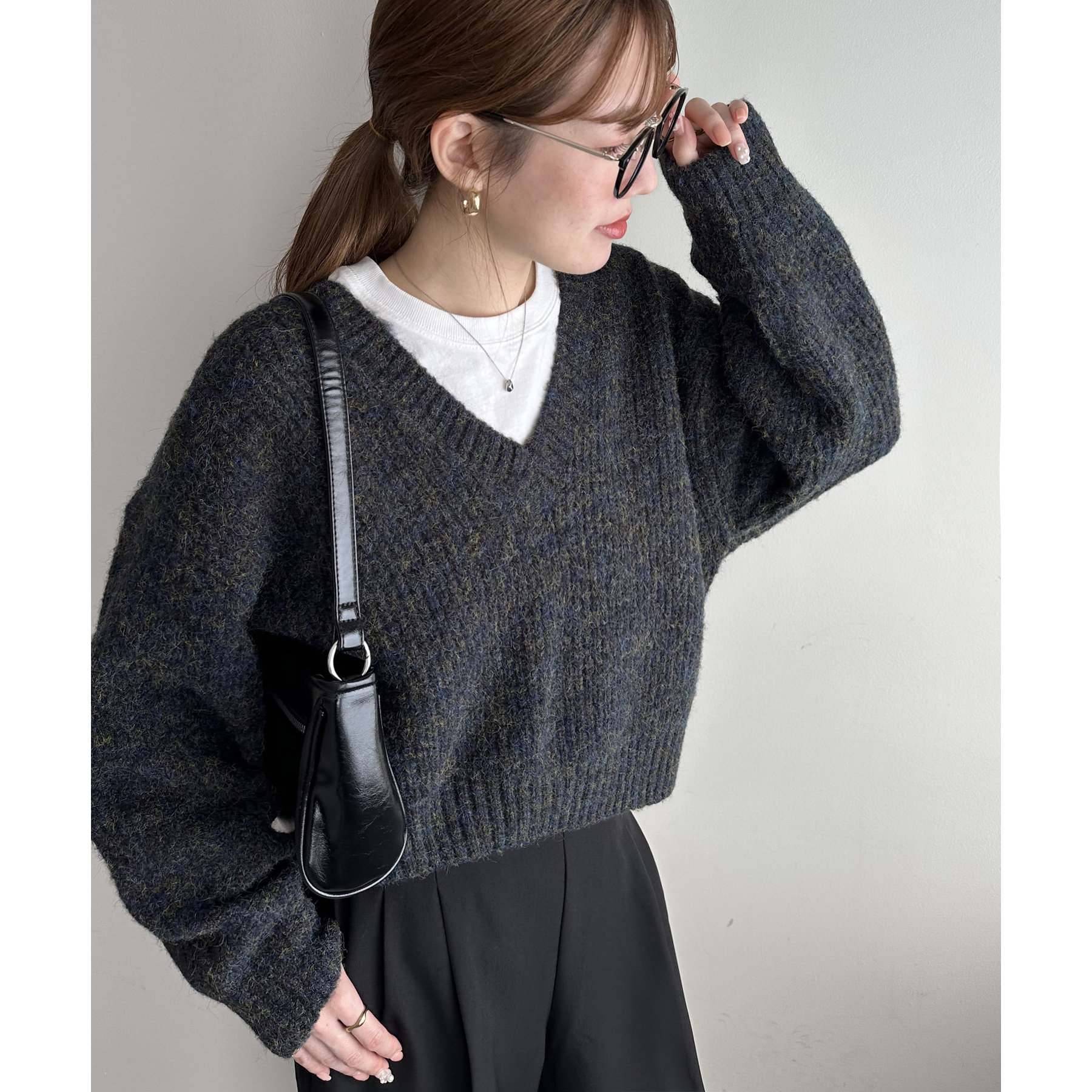 一枚で抜け感の出るVネックニット