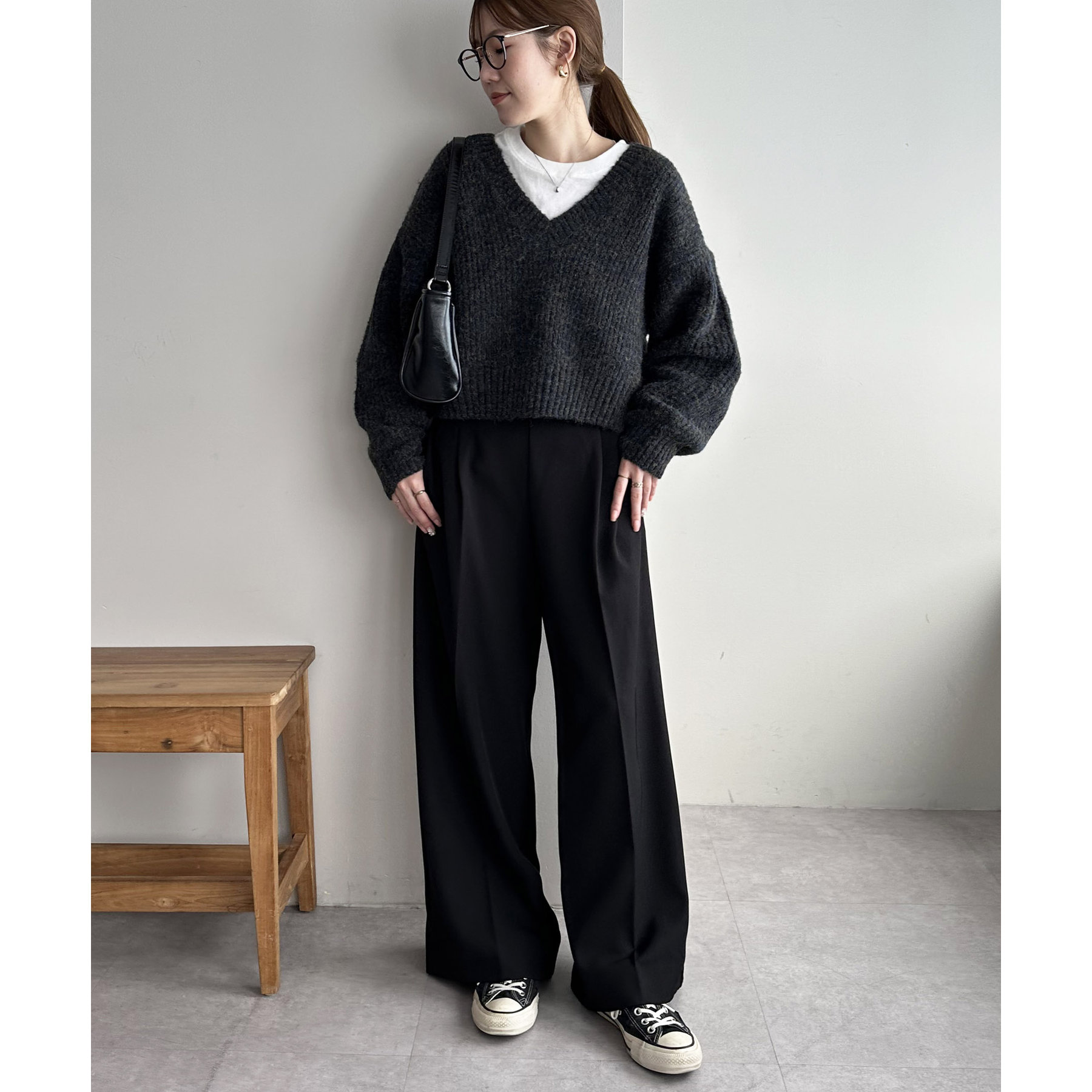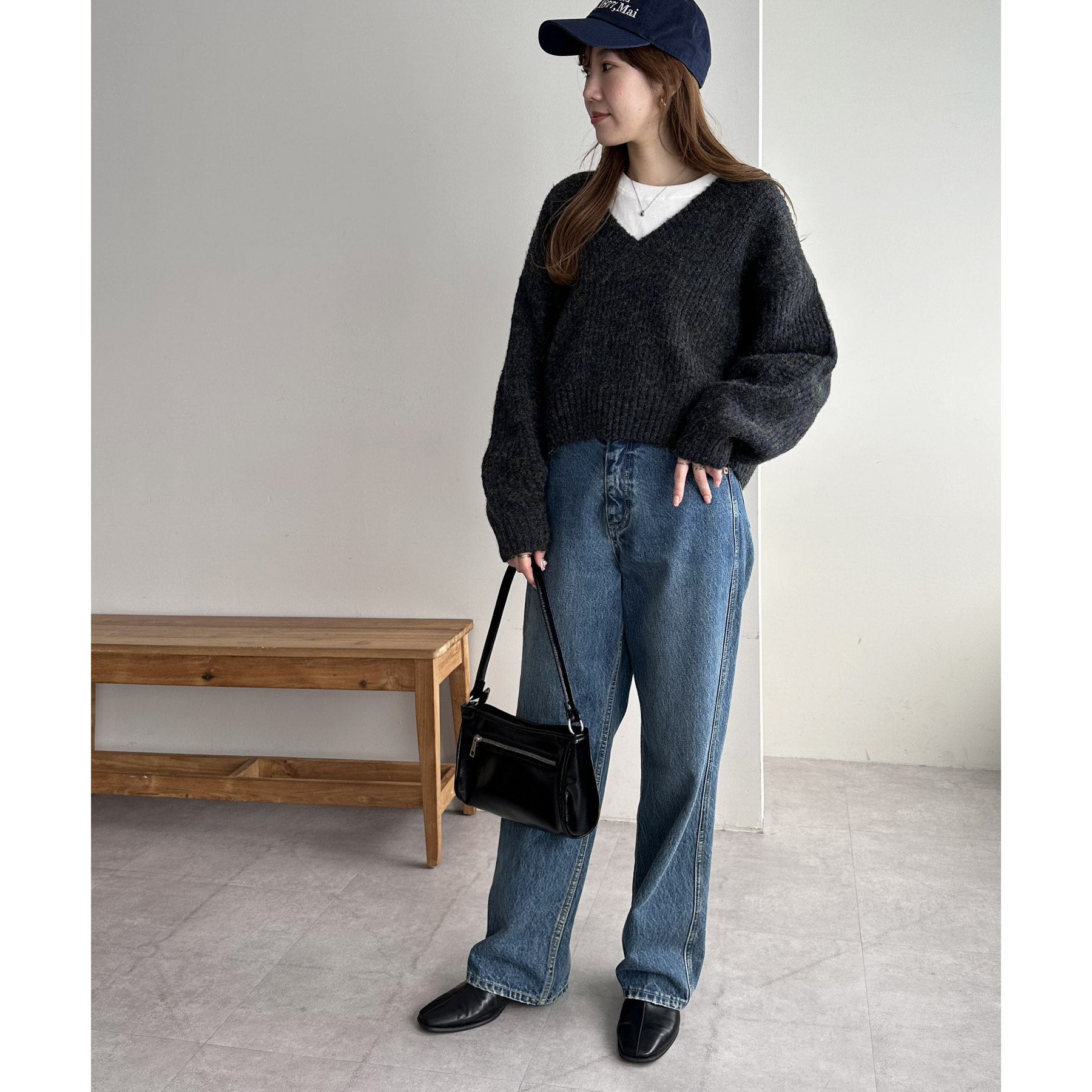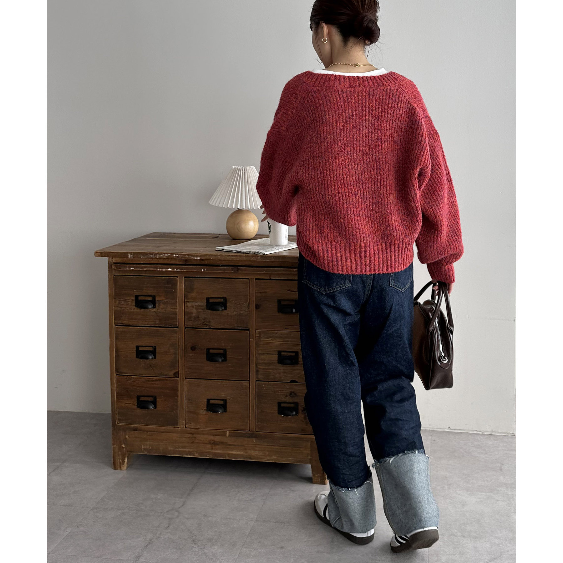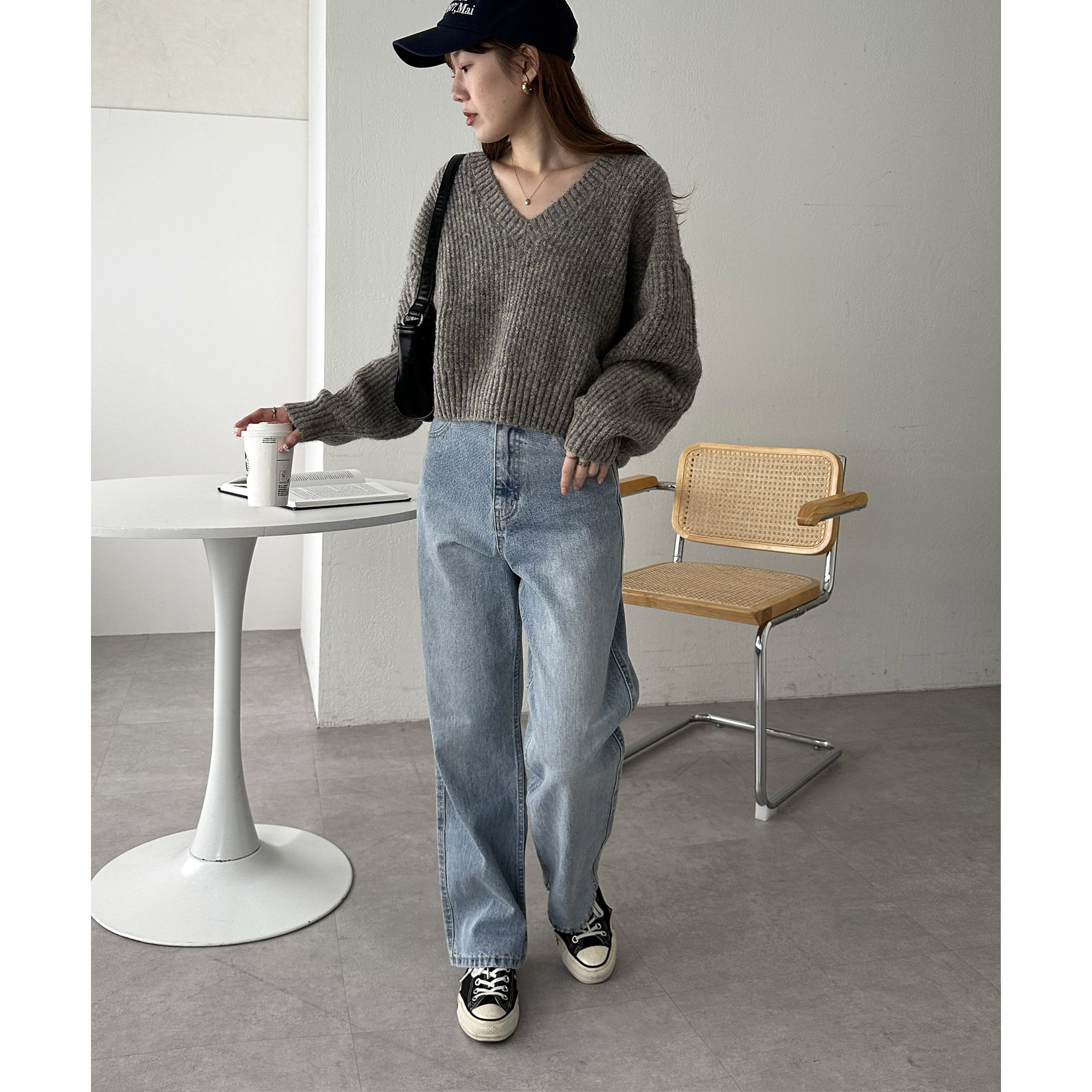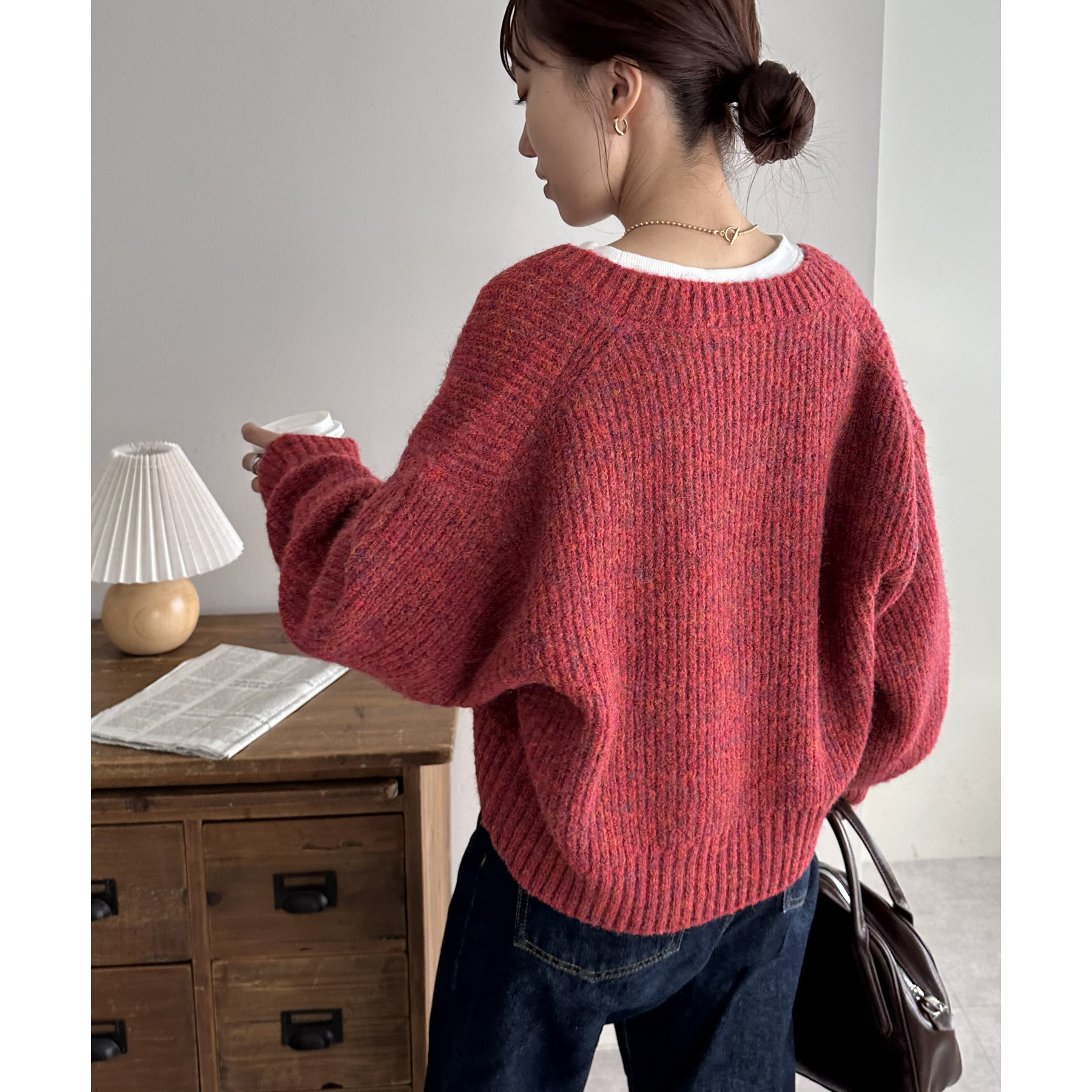 一枚で抜け感の出るVネックニット
