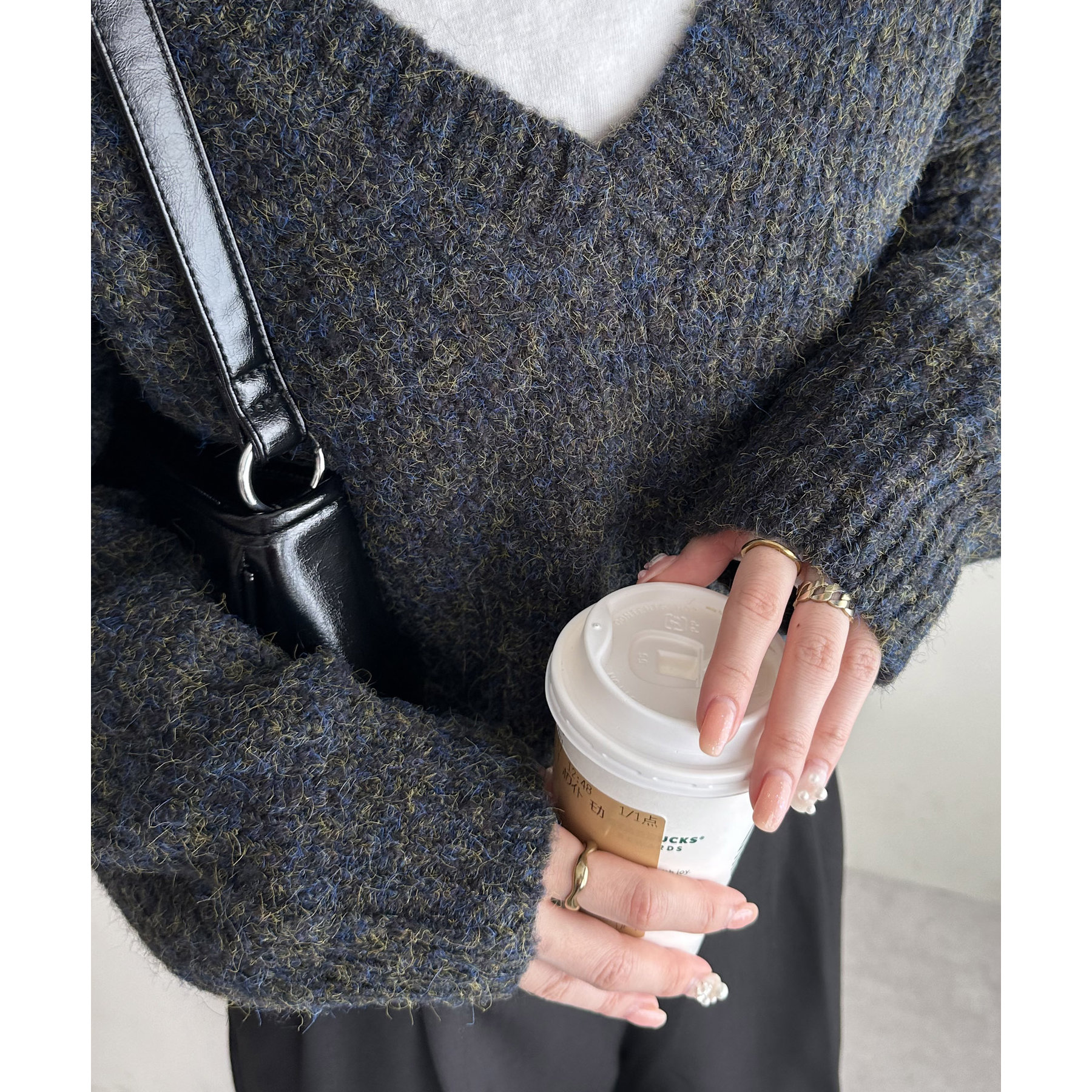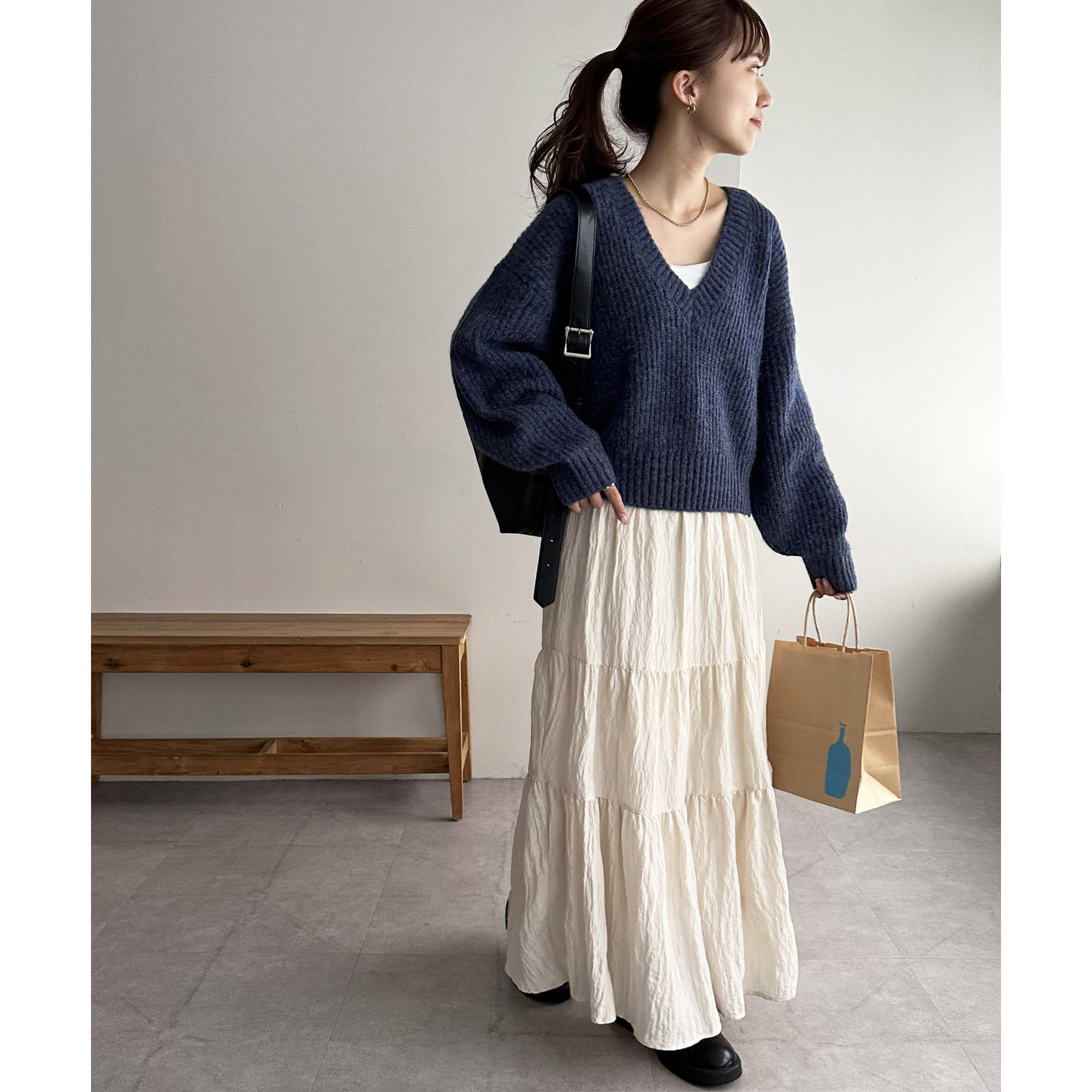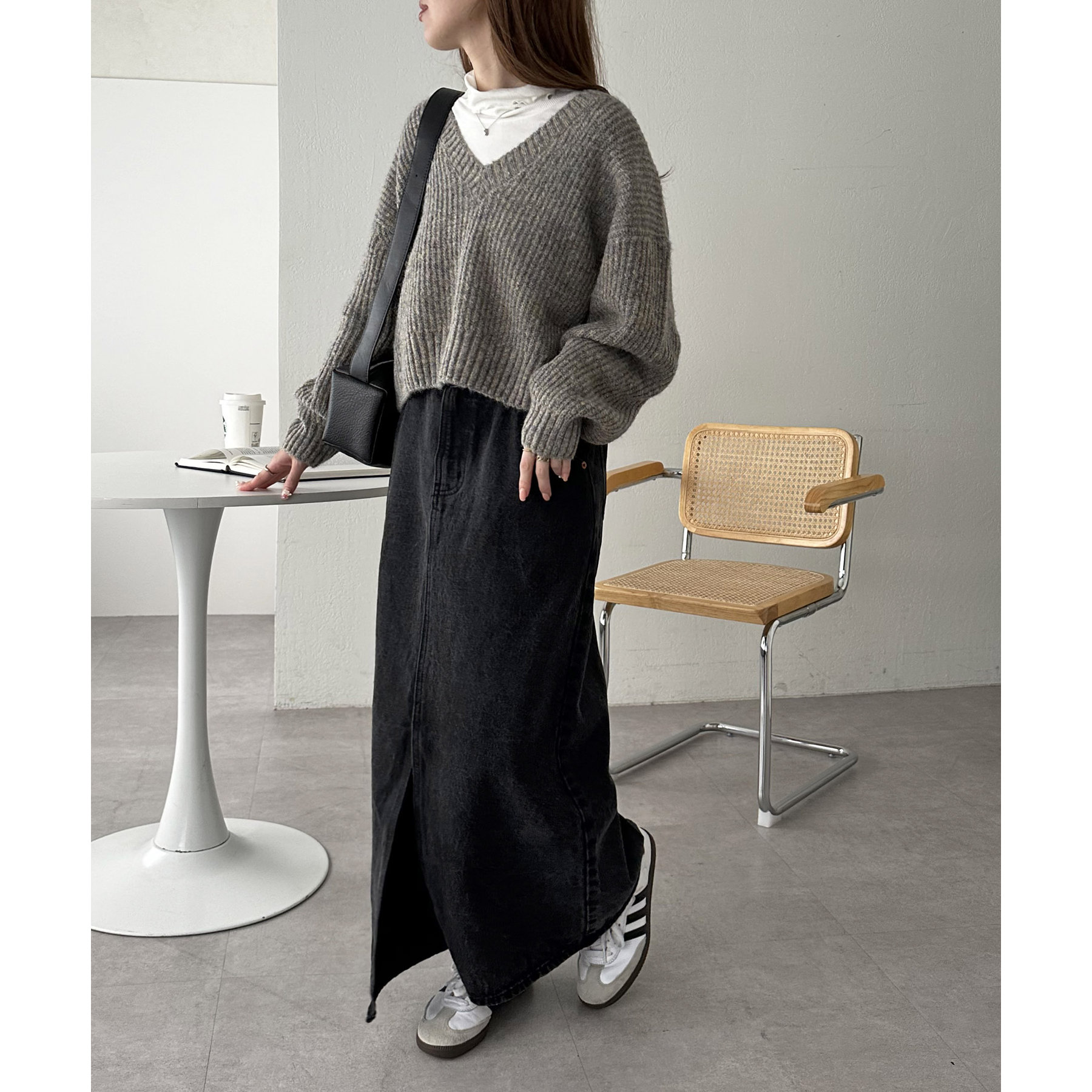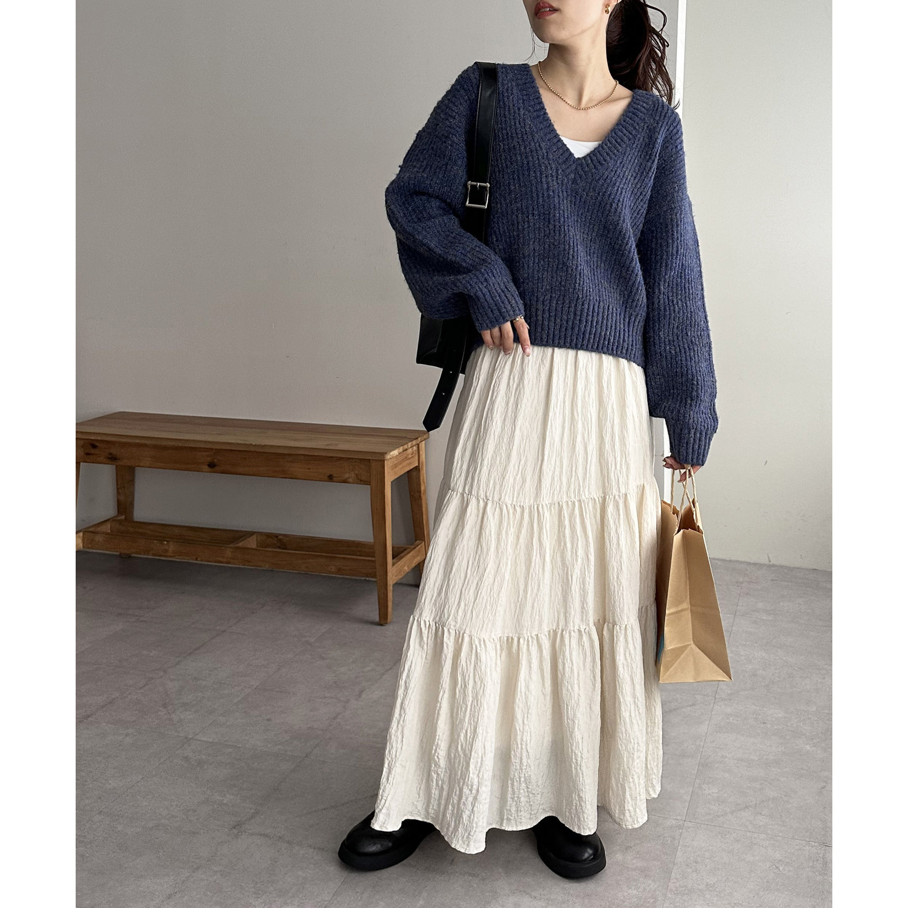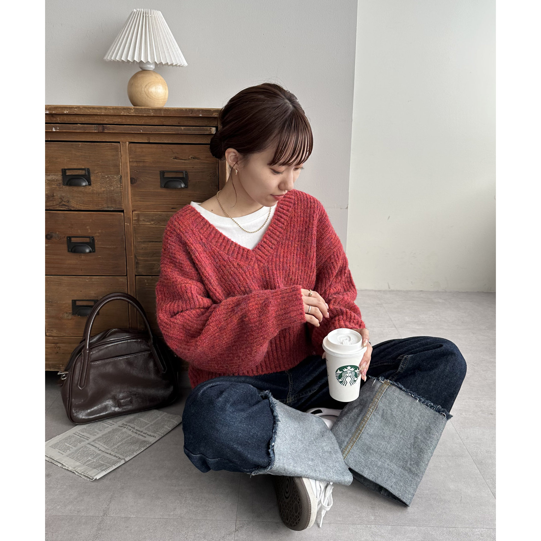 一枚で抜け感の出るVネックニット