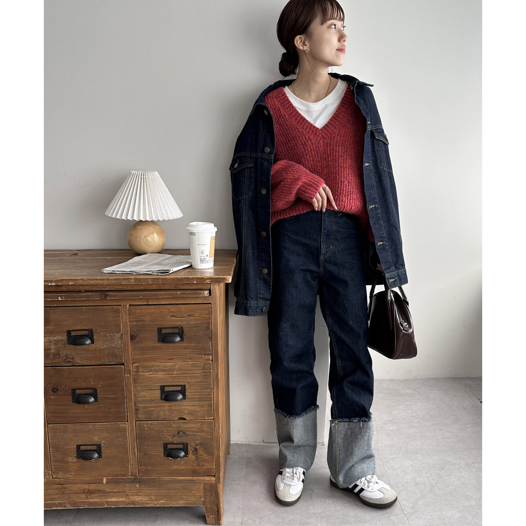 ショート丈のバランスの取れるデザインなので、デニムやスラックス、フレアスカートなどのボトムスとも相性抜群!