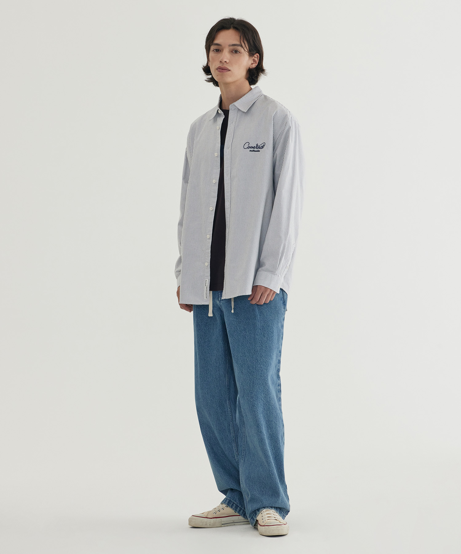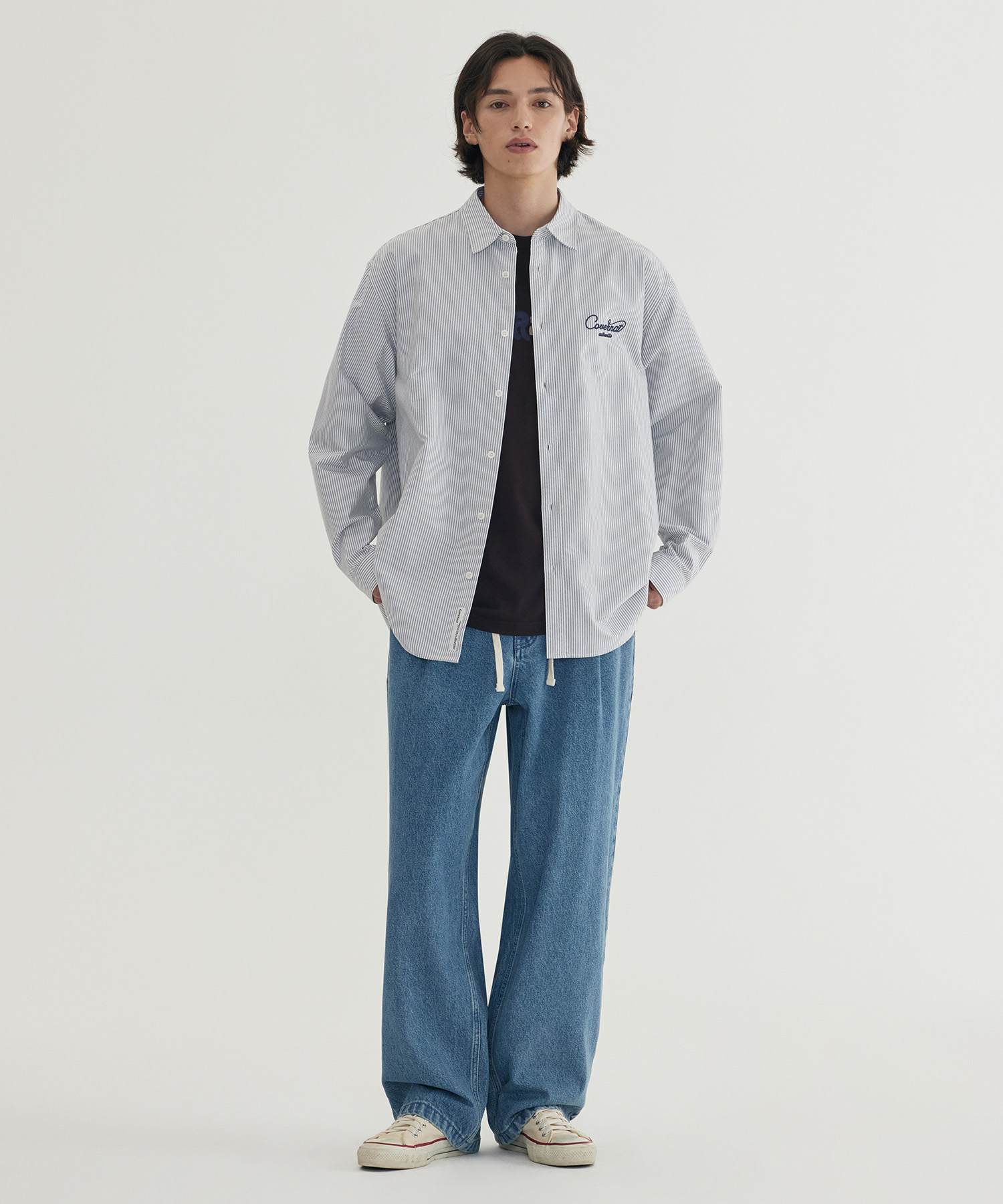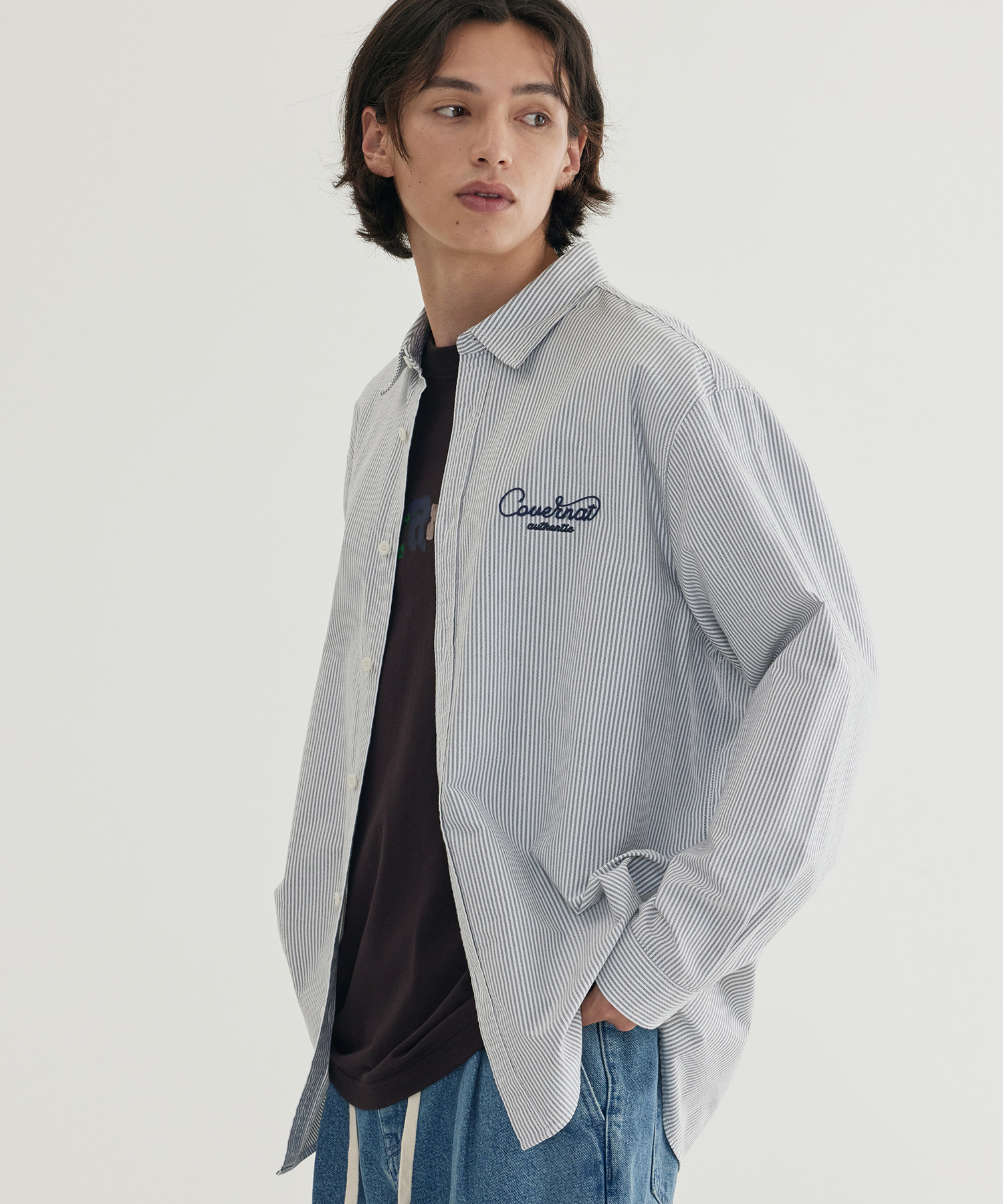 OXFORD STRIPE GRAPHIC SHIRT - Gray