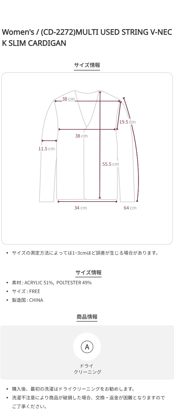 (CD-2272)MULTI USED STRING V-NECK SLIM CARDIGAN