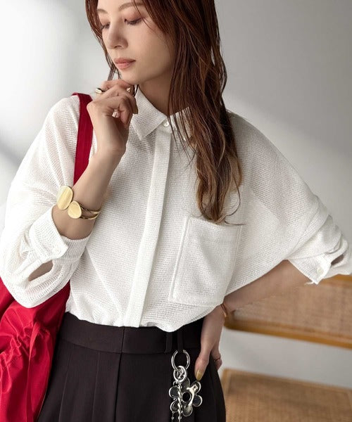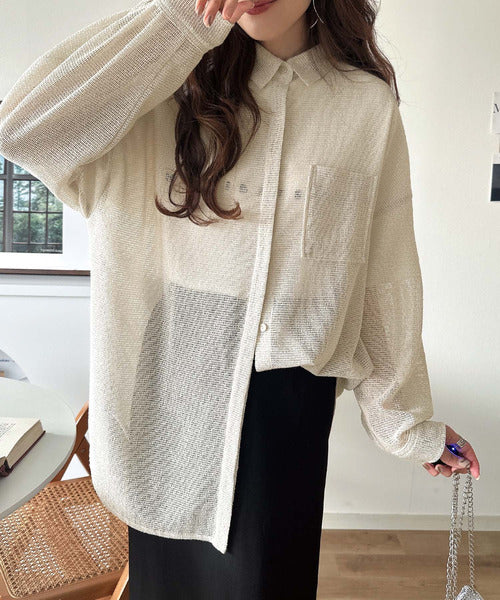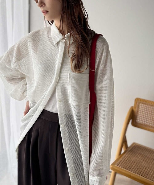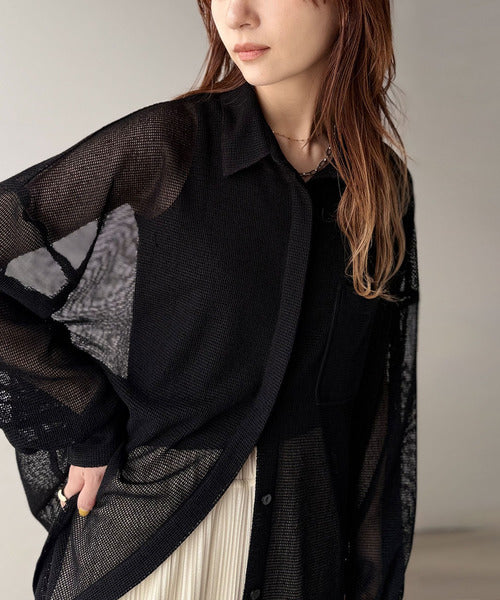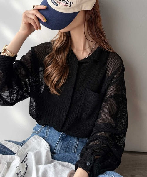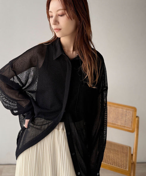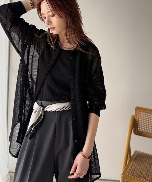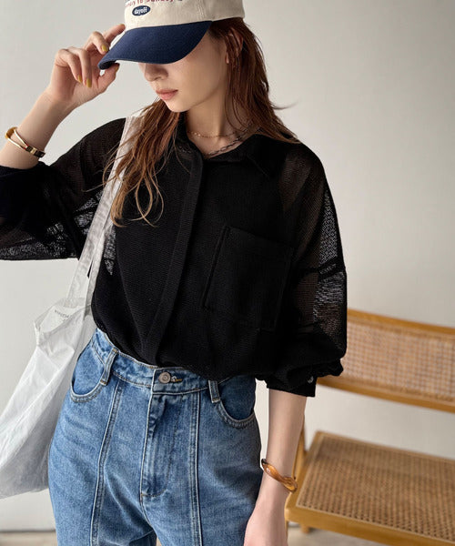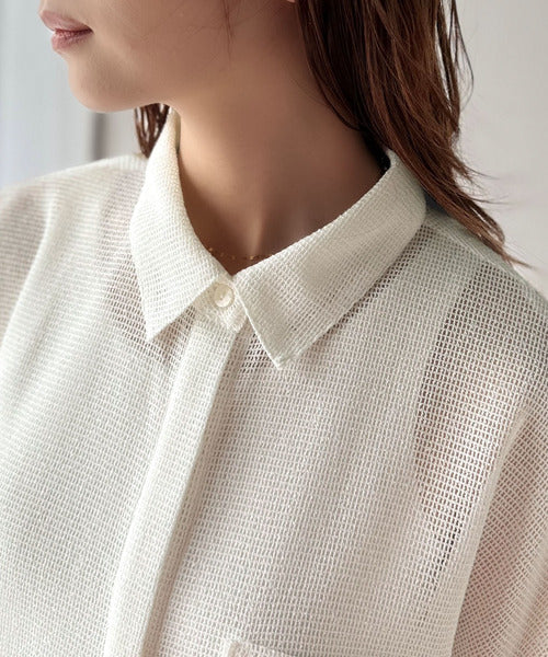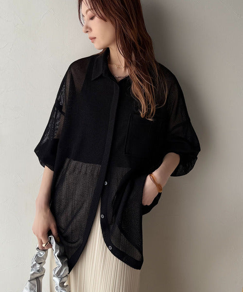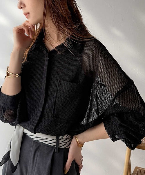 大人な透け感が魅力のメッシュ素材シャツ。