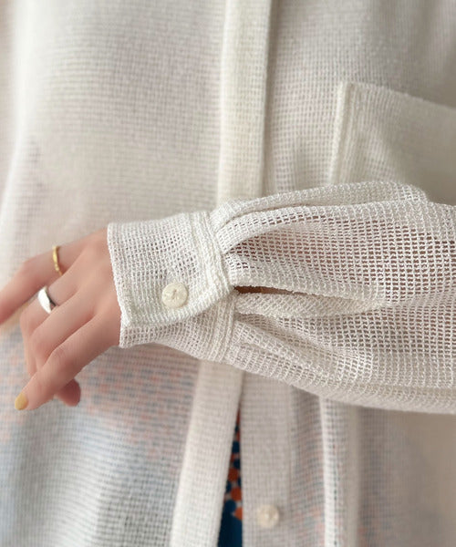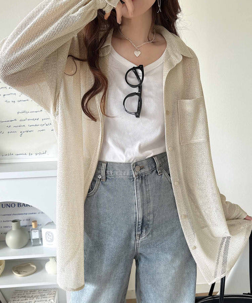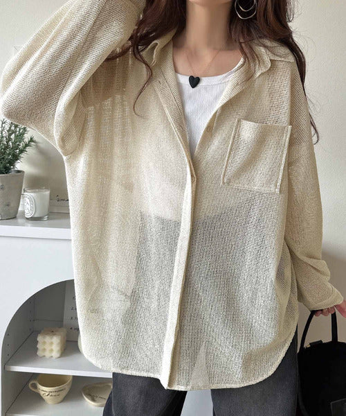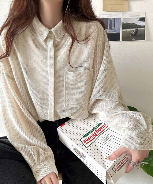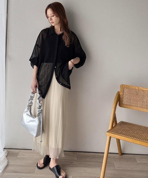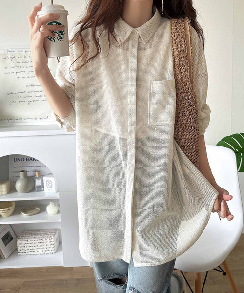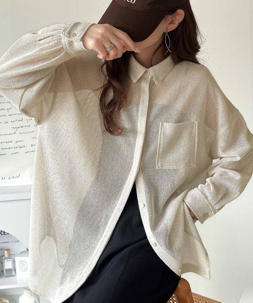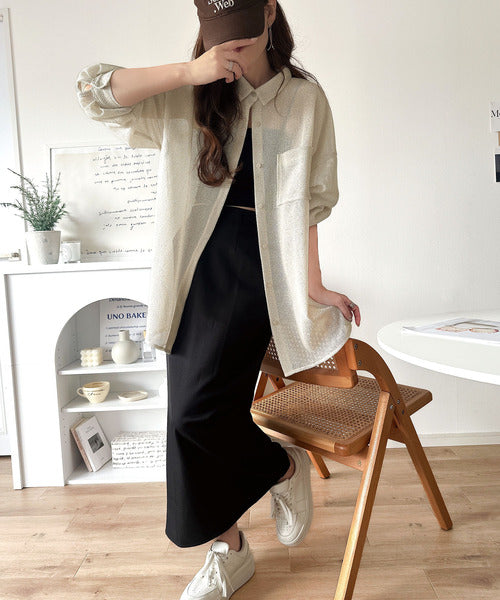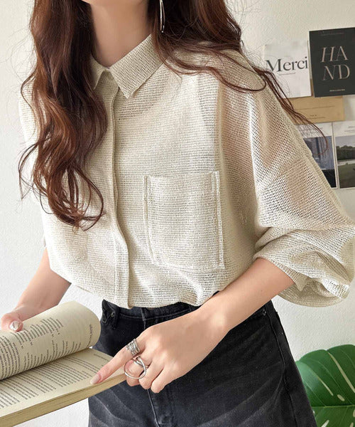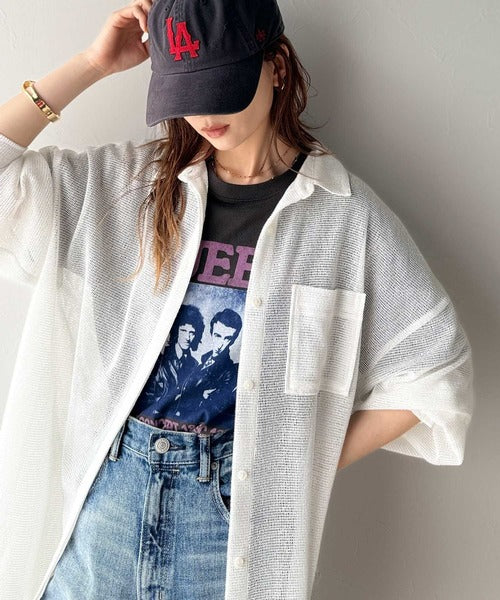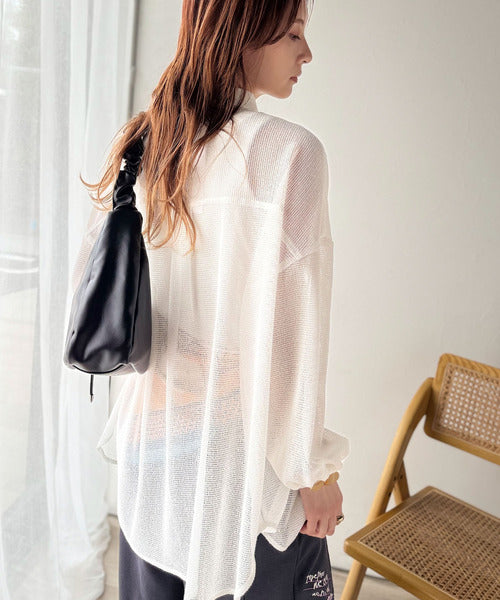 大人な透け感が魅力のメッシュ素材シャツ。