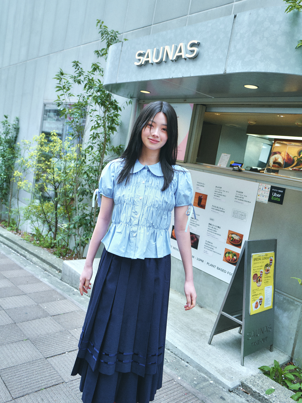 SHIRRING PUFF SHIRTS_SKY BLUE