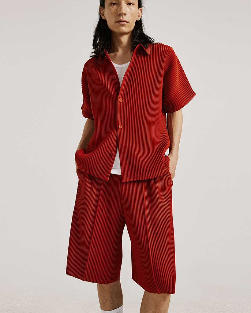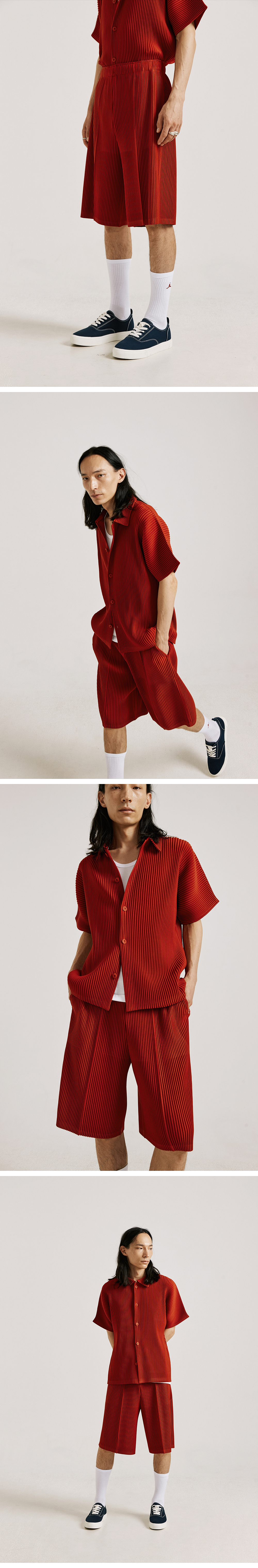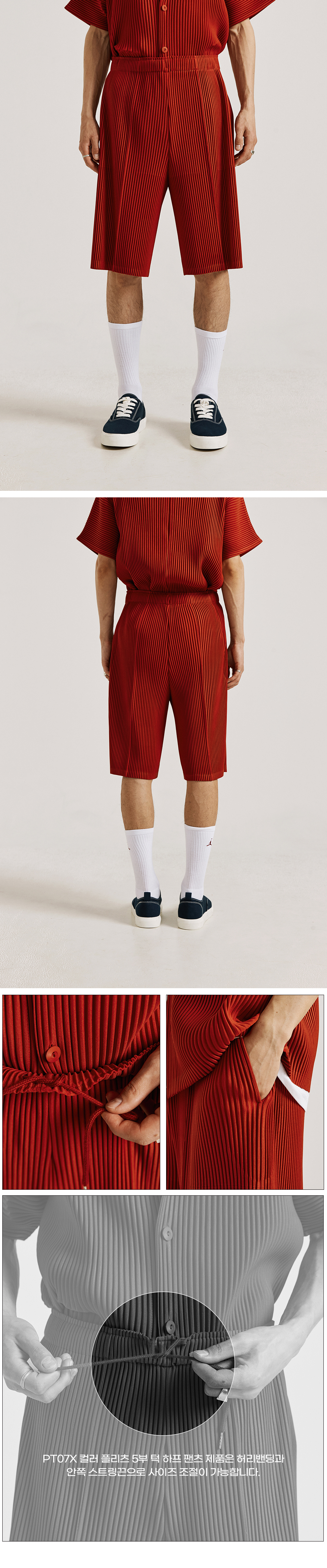 PT07X Color Pleated 5-Part Tuck Half Pants [Red]