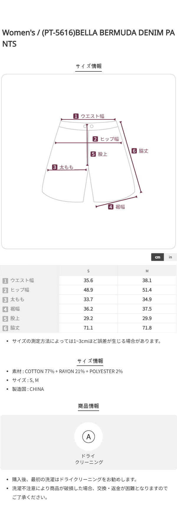 (PT-5616)BELLA BERMUDA DENIM PANTS