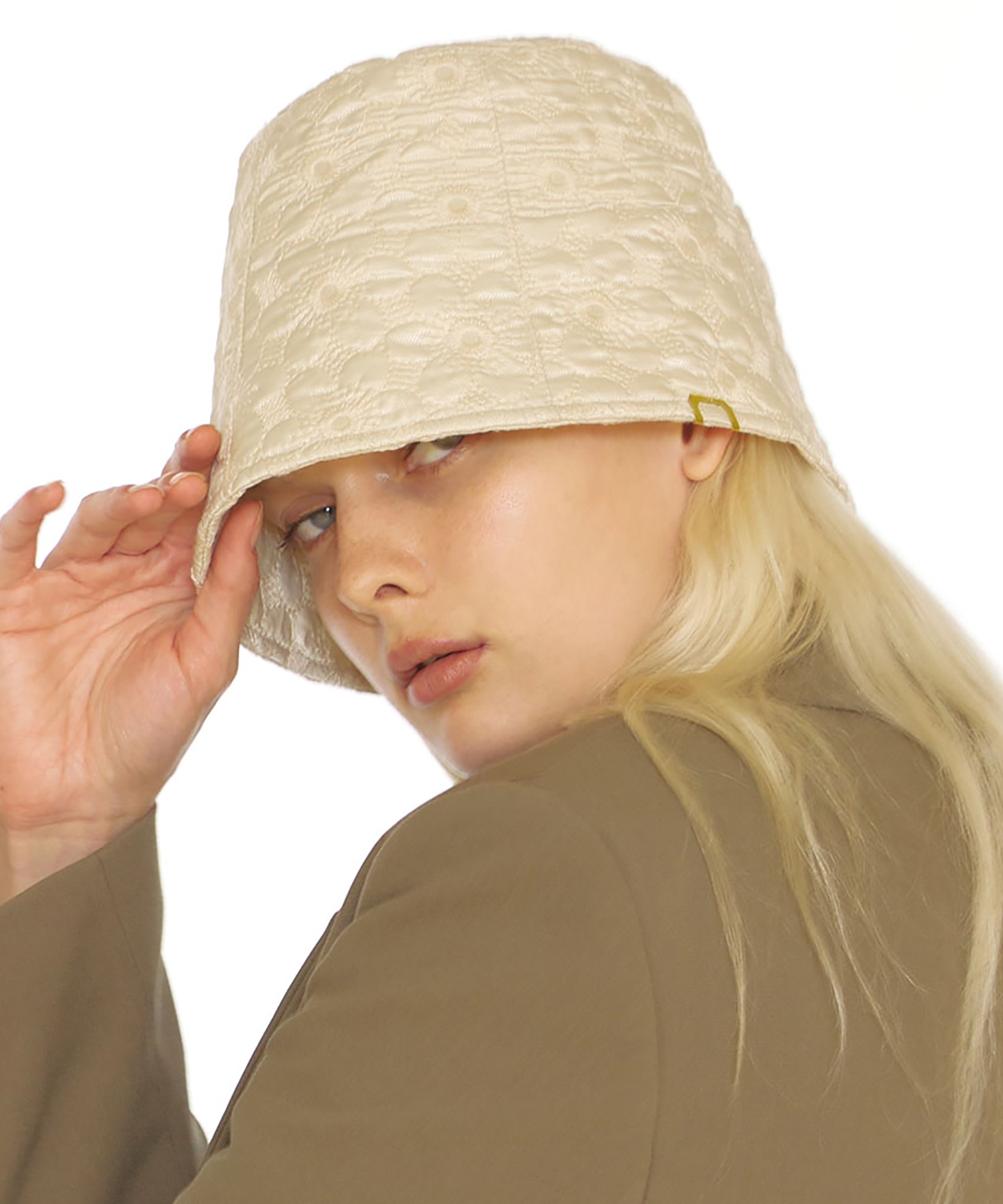 STAND BUCKET / BONDED FLOWER / CREAM(冬 ダウン バケットハット)