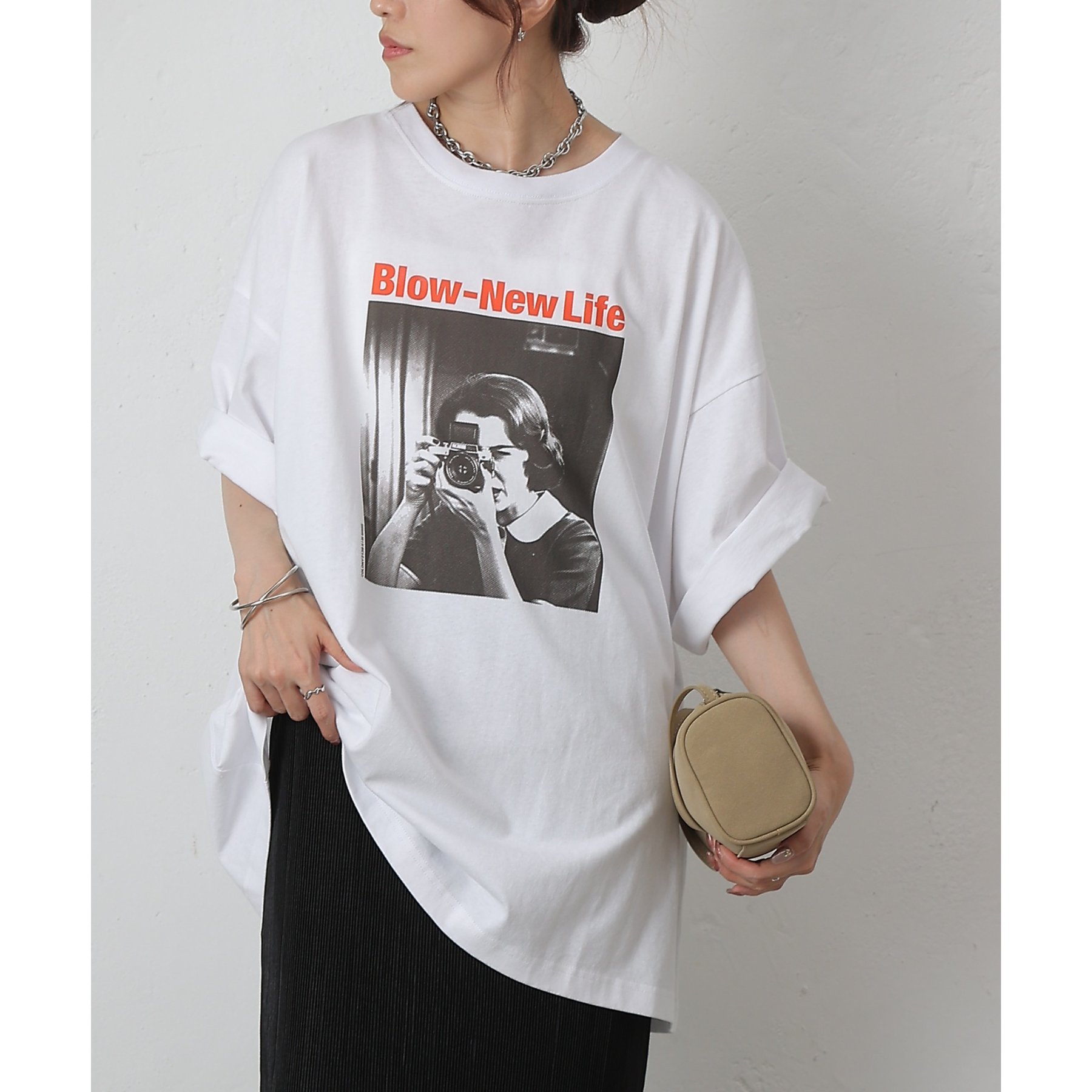 ゆるっと着られるBIGシルエットに、目を惹くフォトプリントを大胆にあしらった「SayCheese」Tシャツ。