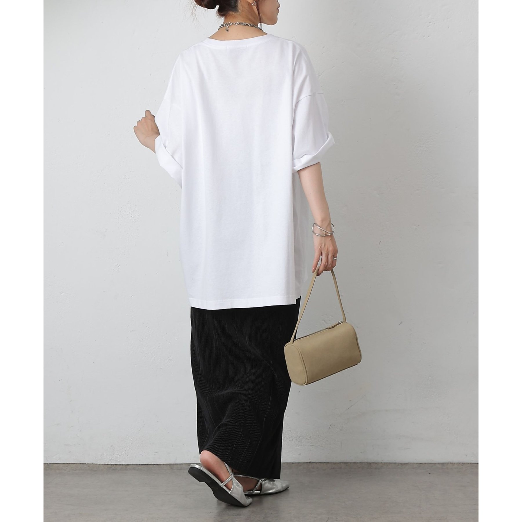 ヒップが隠れるオーバーサイズは、体型カバーも叶いながらどこか抜け感のある大人カジュアルに。