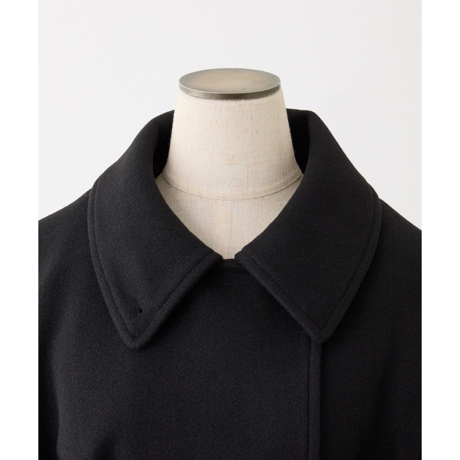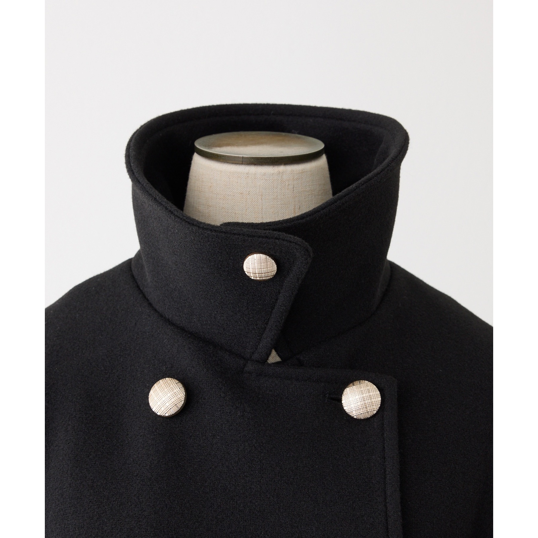 フロントはWボタン仕様でクラシカルな印象に仕上げ、ウエストのリボンでシルエットの調整も可能。