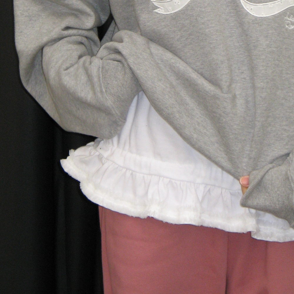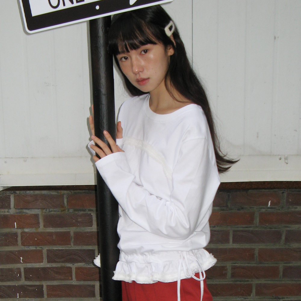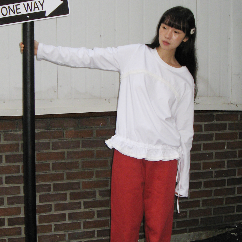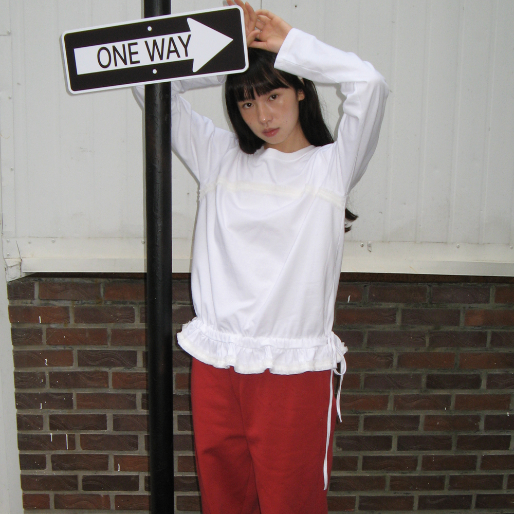FRILL SHIRRING LONG SLEEVE T SHIRT WHITE