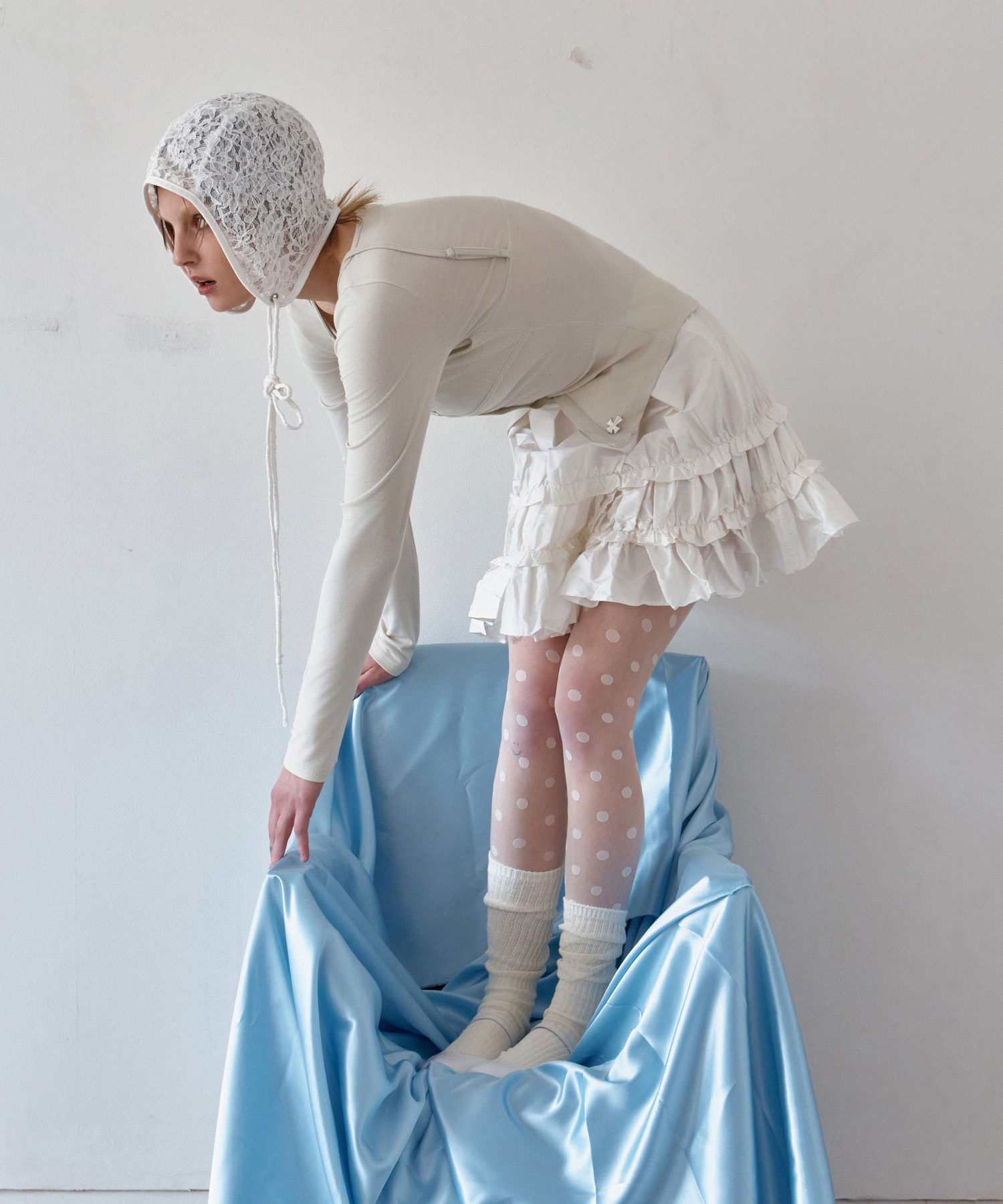 AVIATOR HAT / DOUBLE LACE / WHITE(薄手ノレース 航空帽)