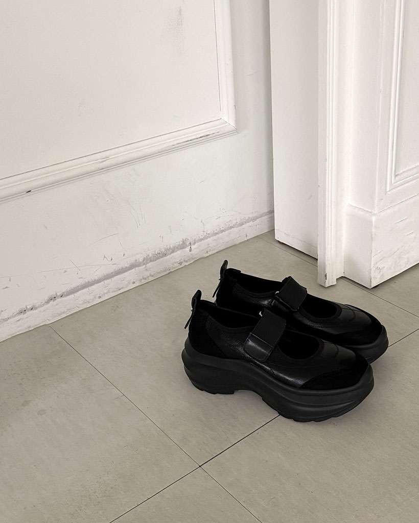 【2色展開】ステッチポイント バンディングストラップ メリージェーン厚底スニーカー/2026 SS FLATFORM COLLECTION/black