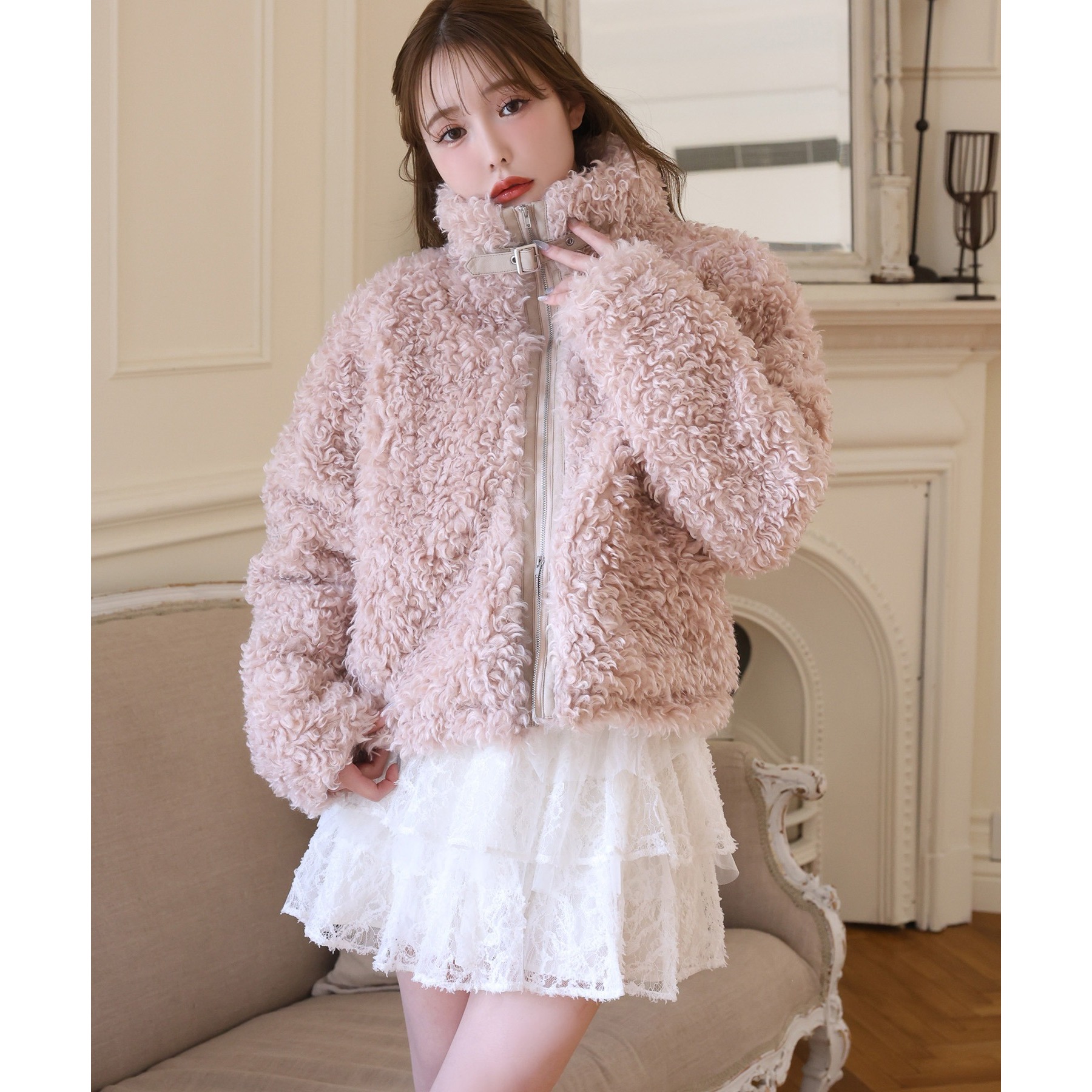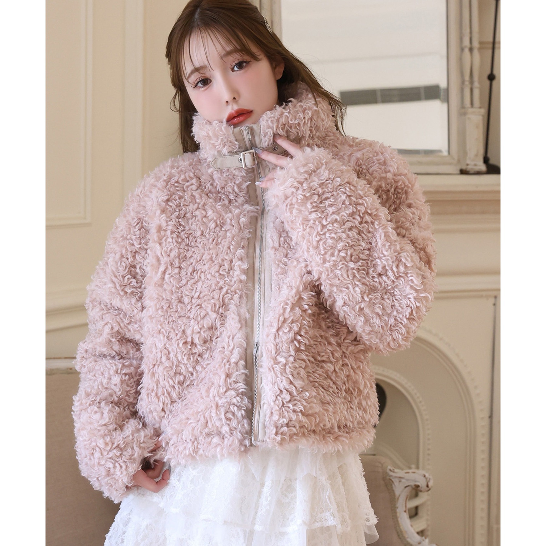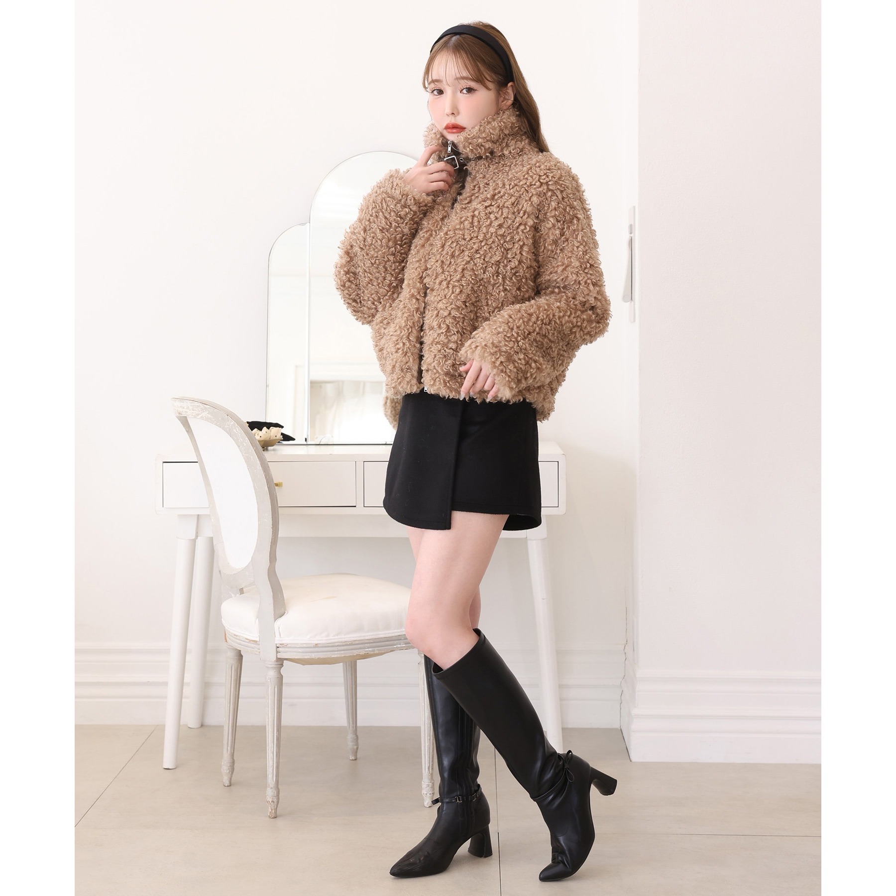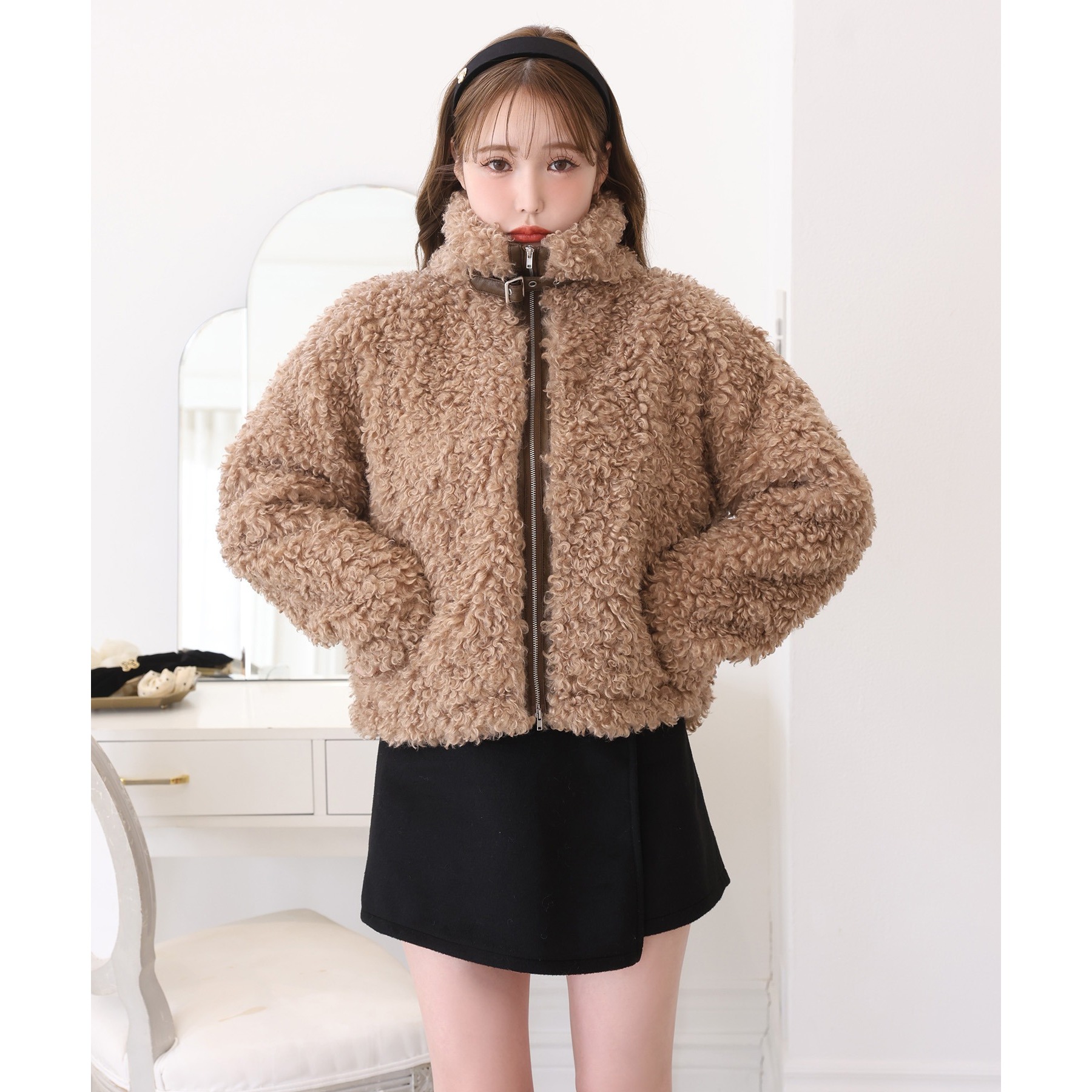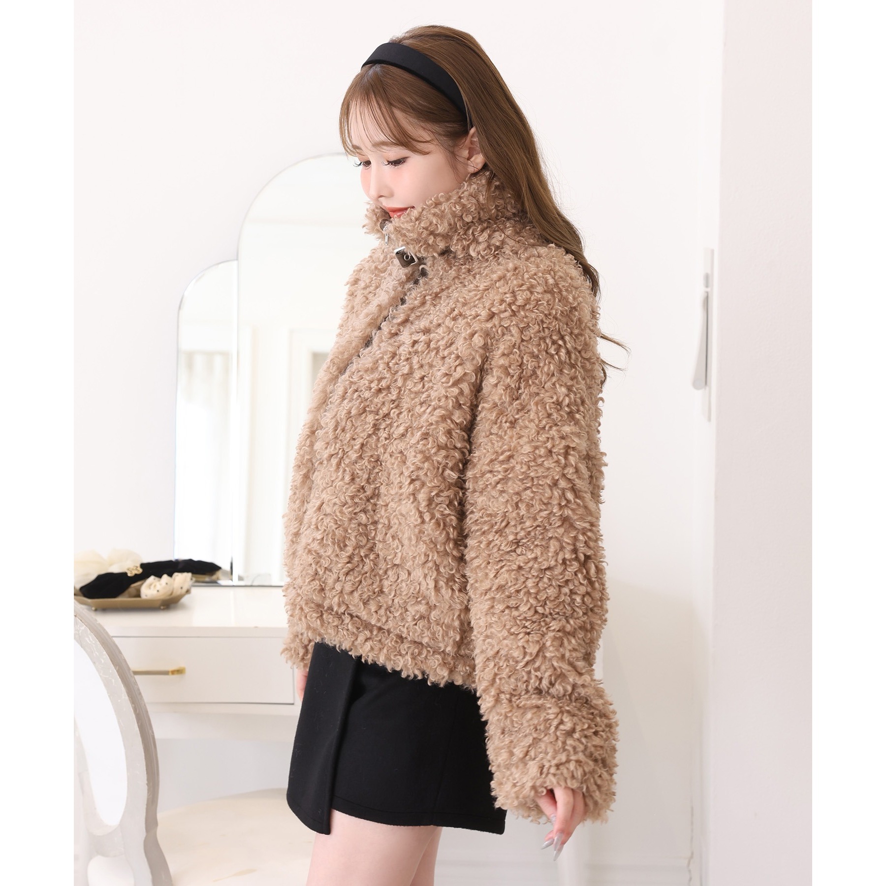 ふわふわのプードル素材で仕立てたショート丈コート。