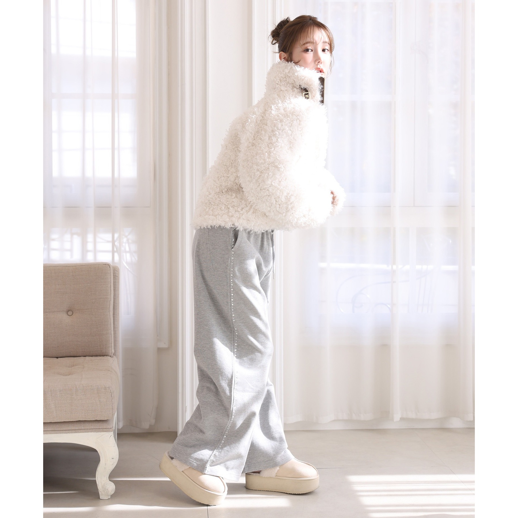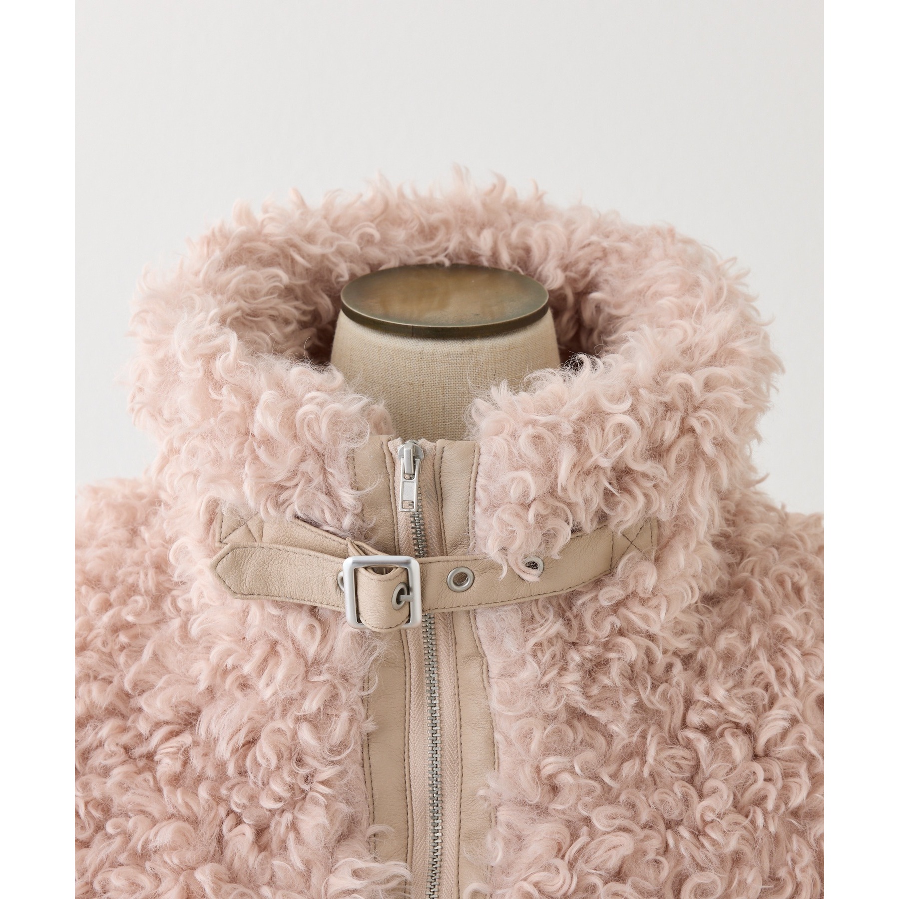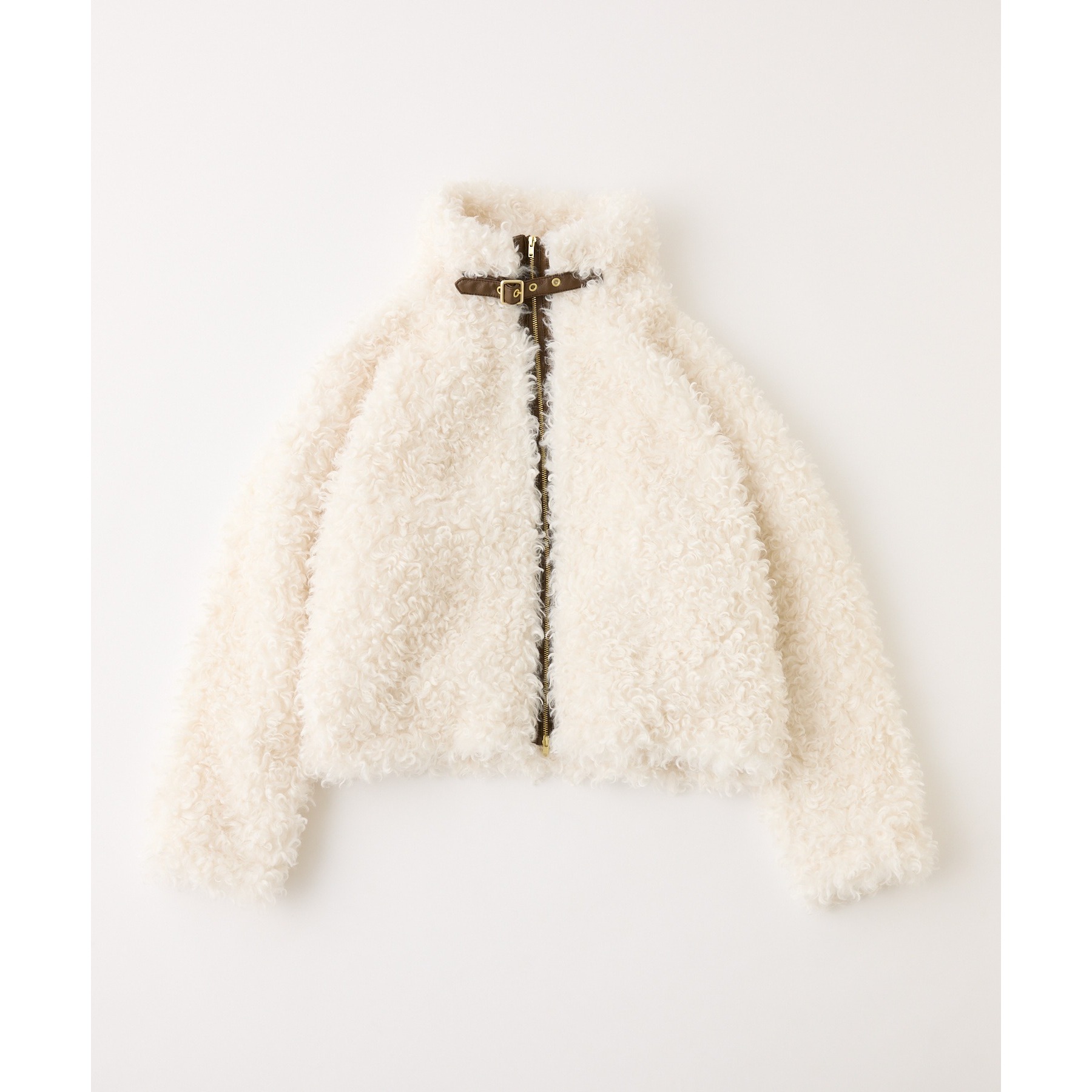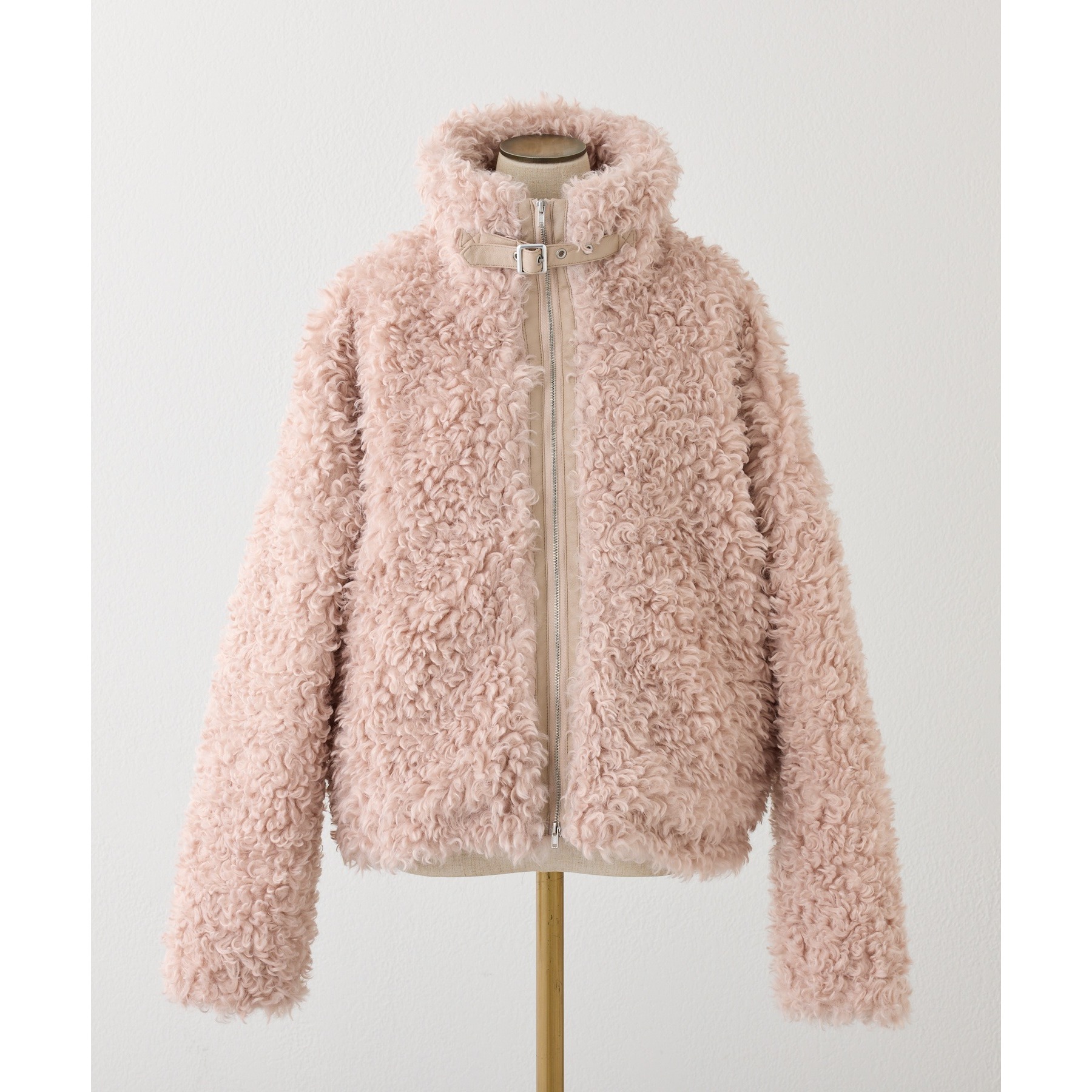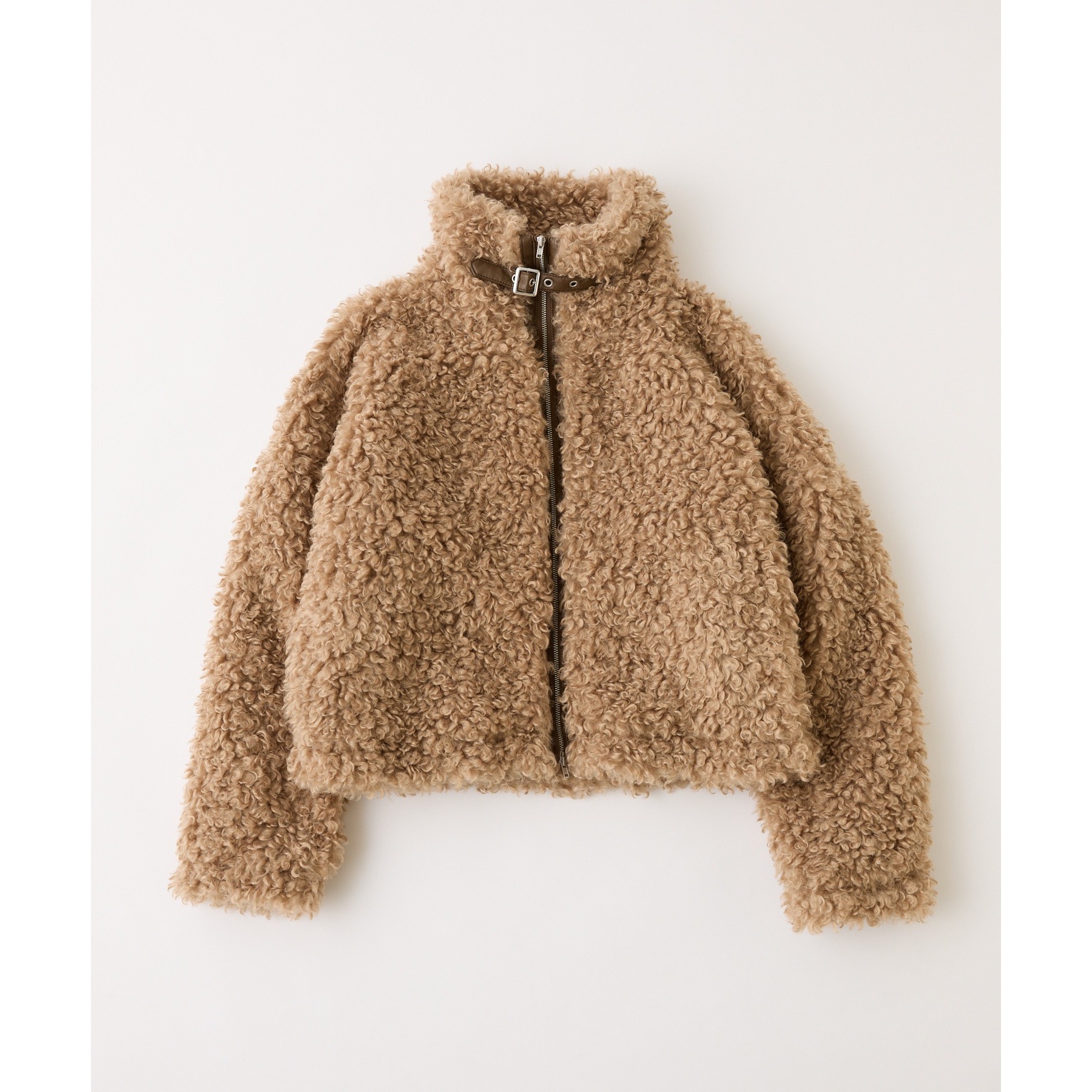 ふわふわのプードル素材で仕立てたショート丈コート。