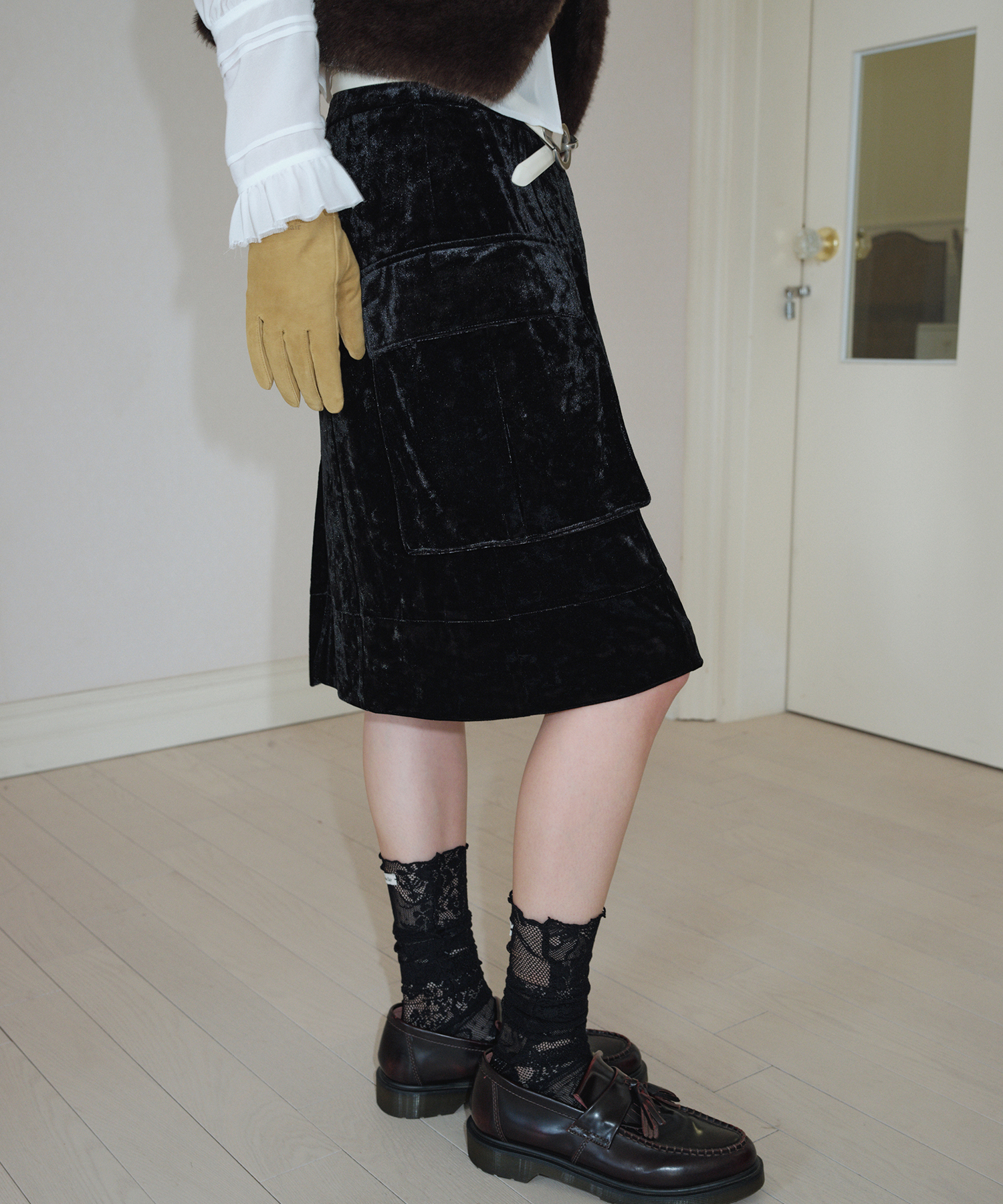 【購入特典】[KEI x overdue flair] VELVET CARGO MIDI SKIRT_BLACK