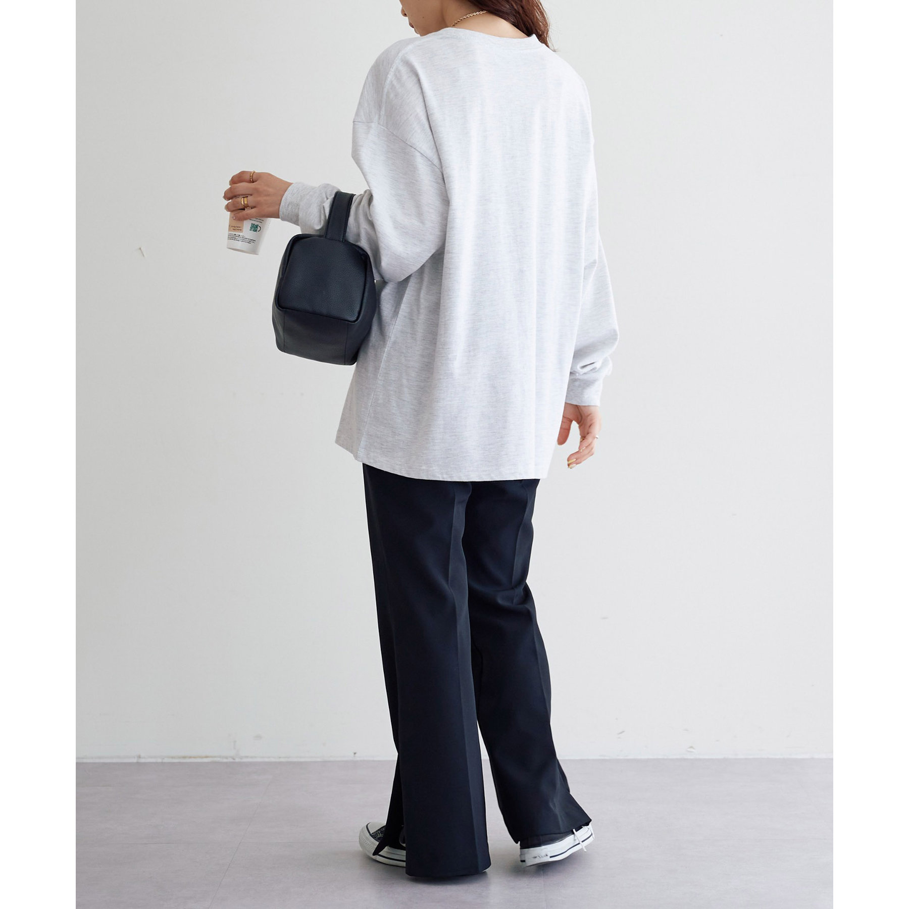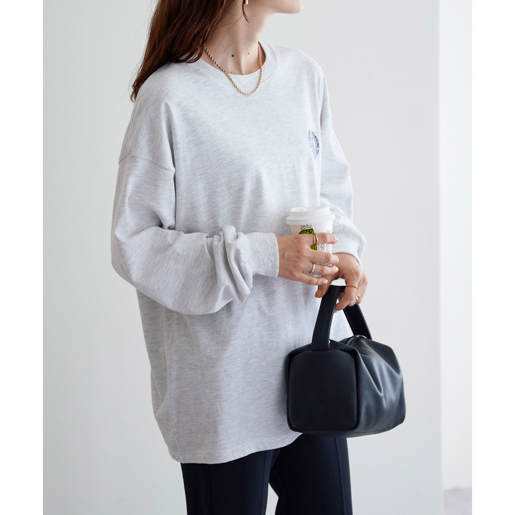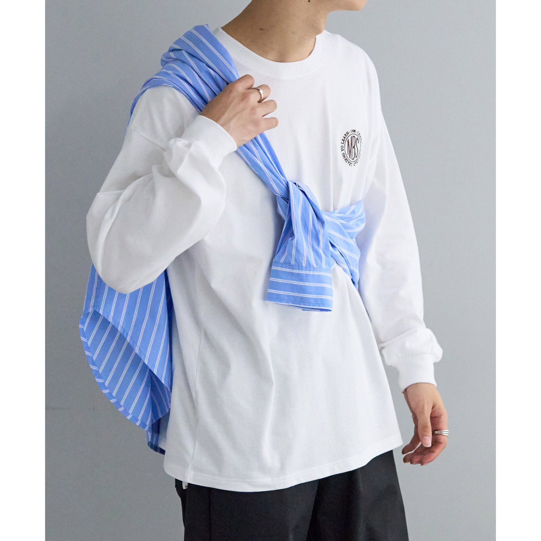 レディースはビッグシルエットで、メンズは程よくゆったりとしたサイジングで着用ができ、一枚でも、季節の変わり目にインナーとしても男女共にデイリーユースの着回しに幅広く万能です。