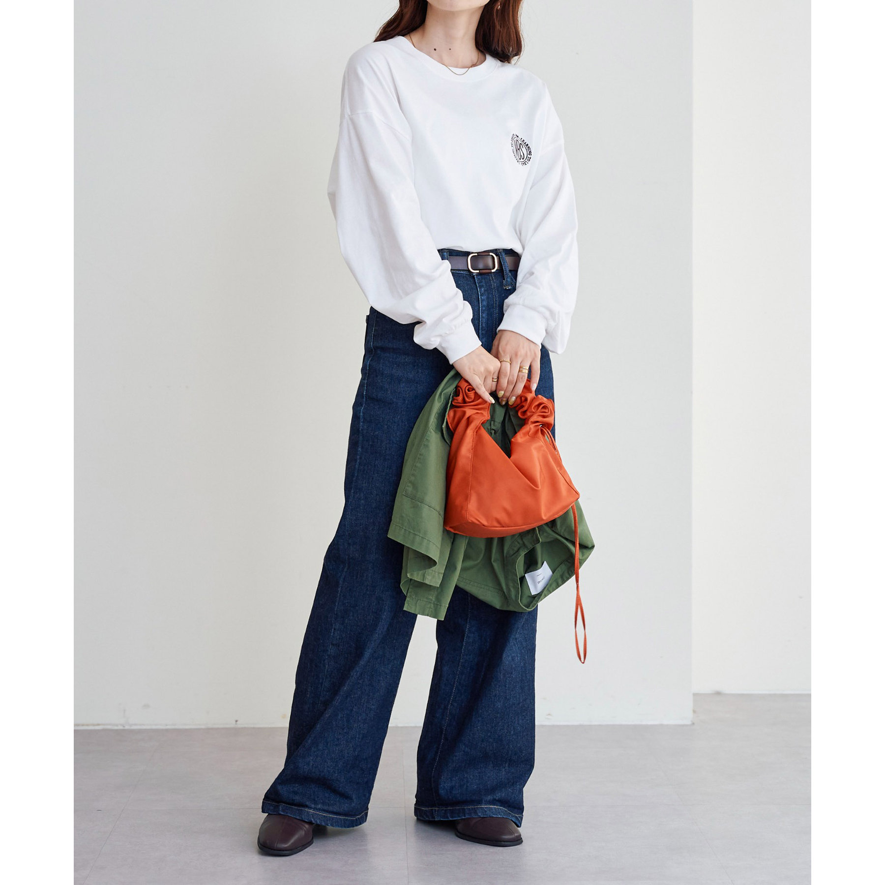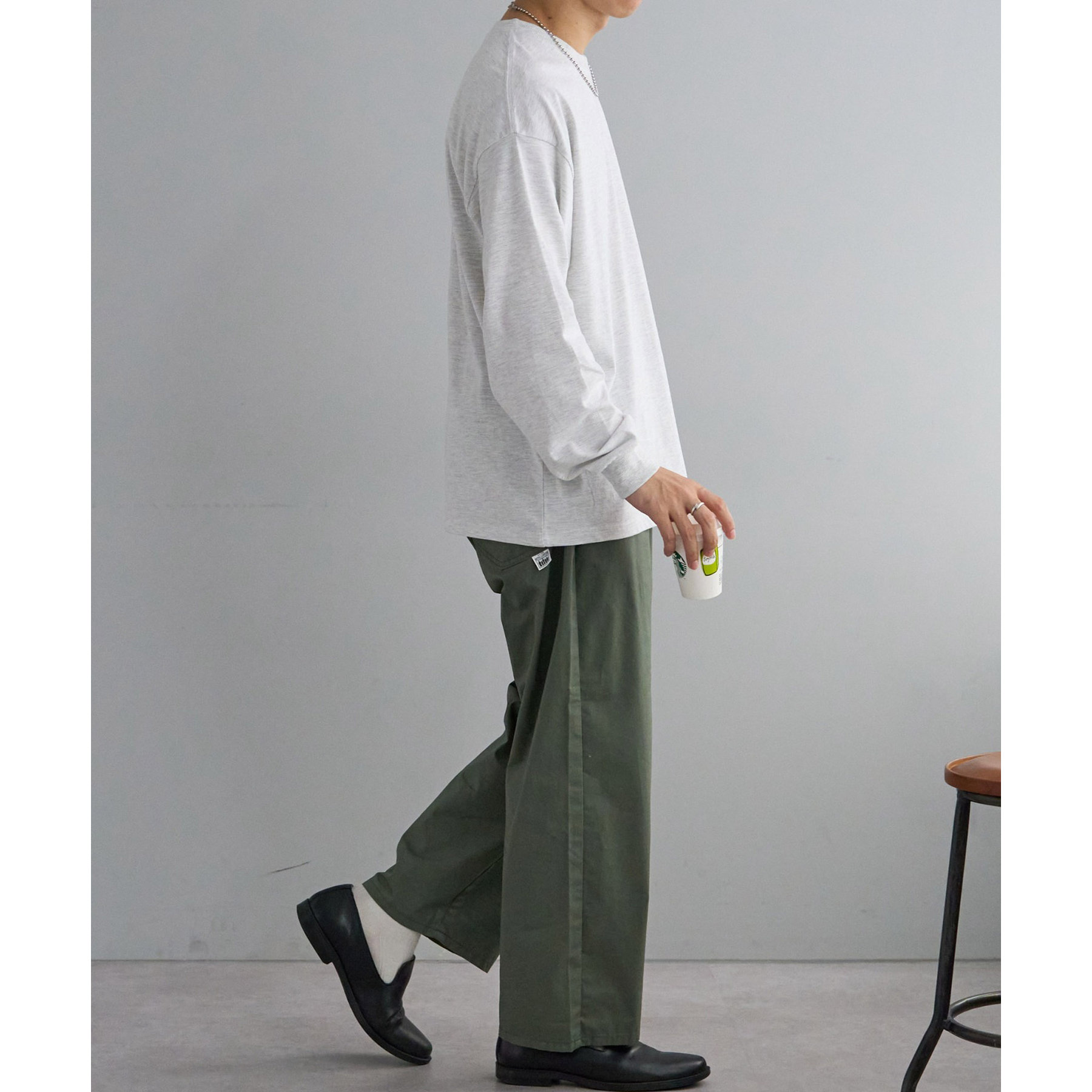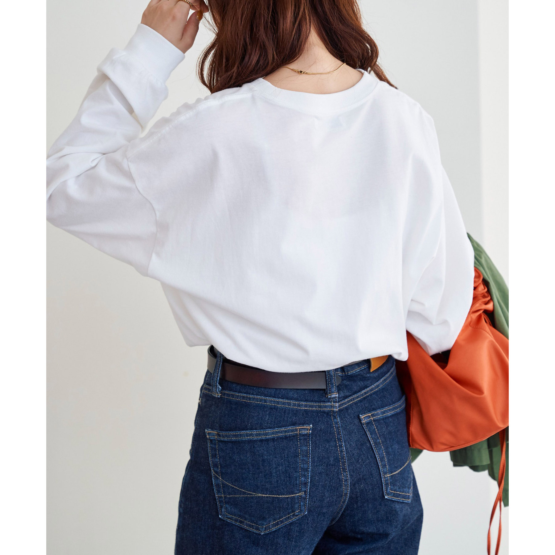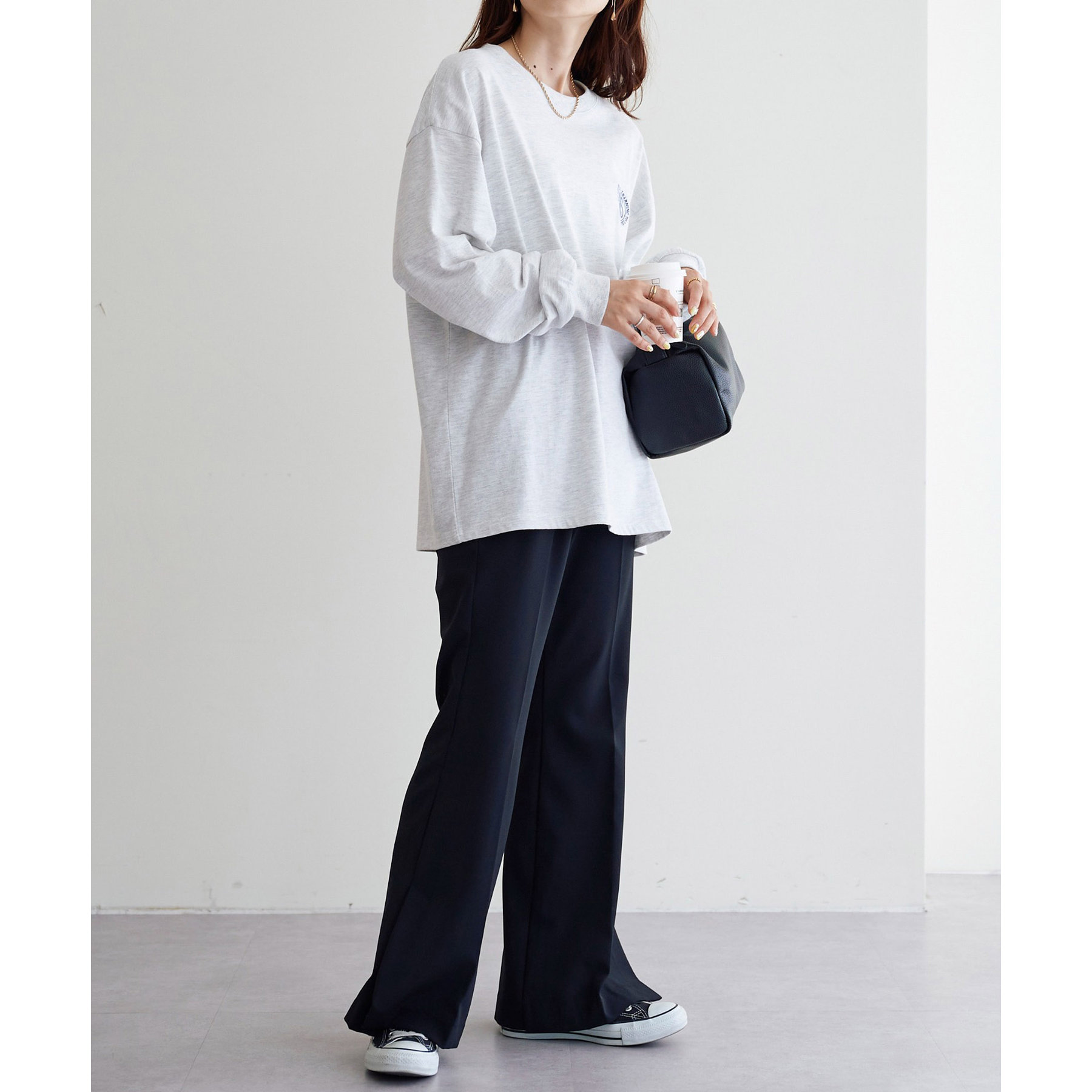 レディースはビッグシルエットで、メンズは程よくゆったりとしたサイジングで着用ができ、一枚でも、季節の変わり目にインナーとしても男女共にデイリーユースの着回しに幅広く万能です。