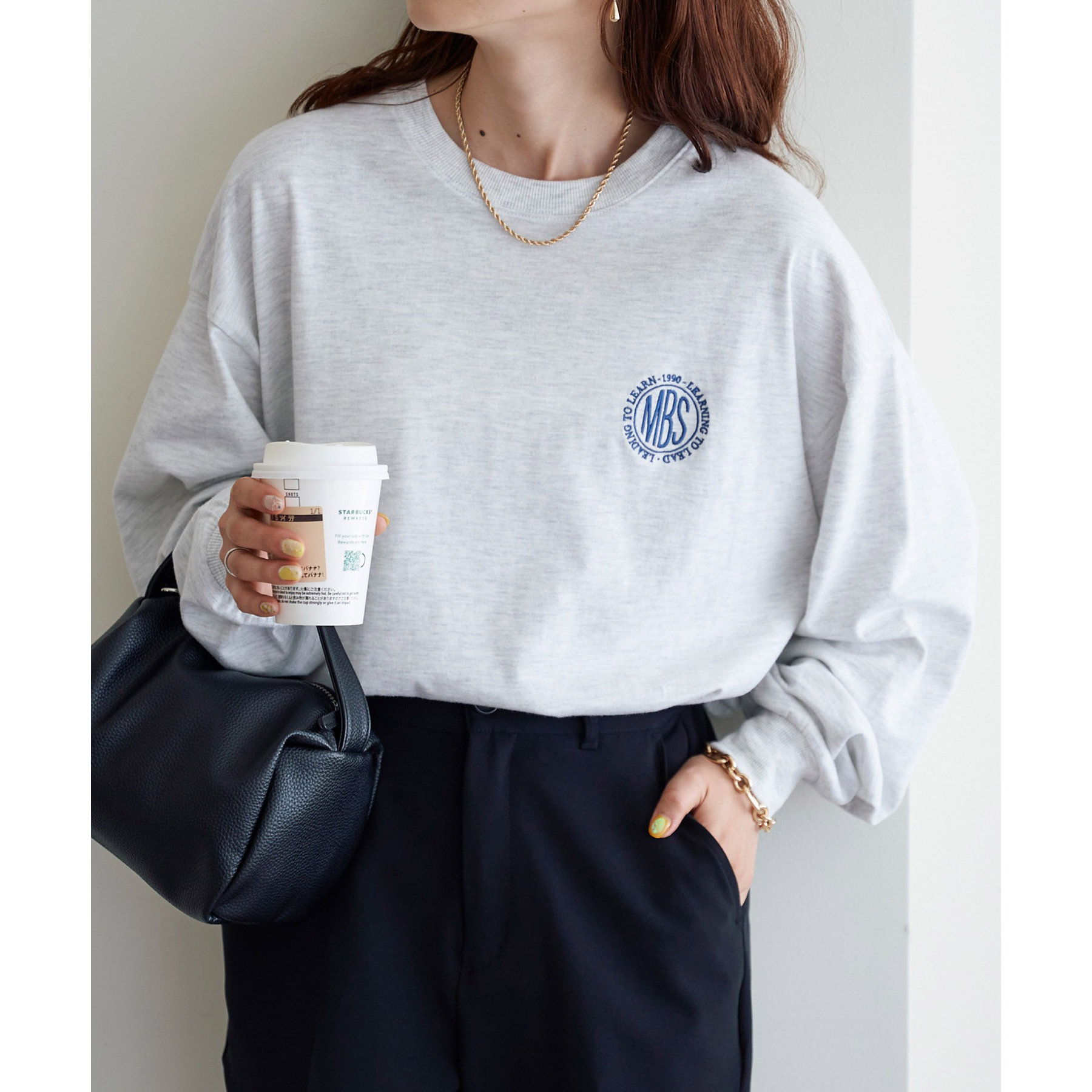 シンプルだからこそ使い勝手が良い、ワンポイント刺繍ロンTシャツ