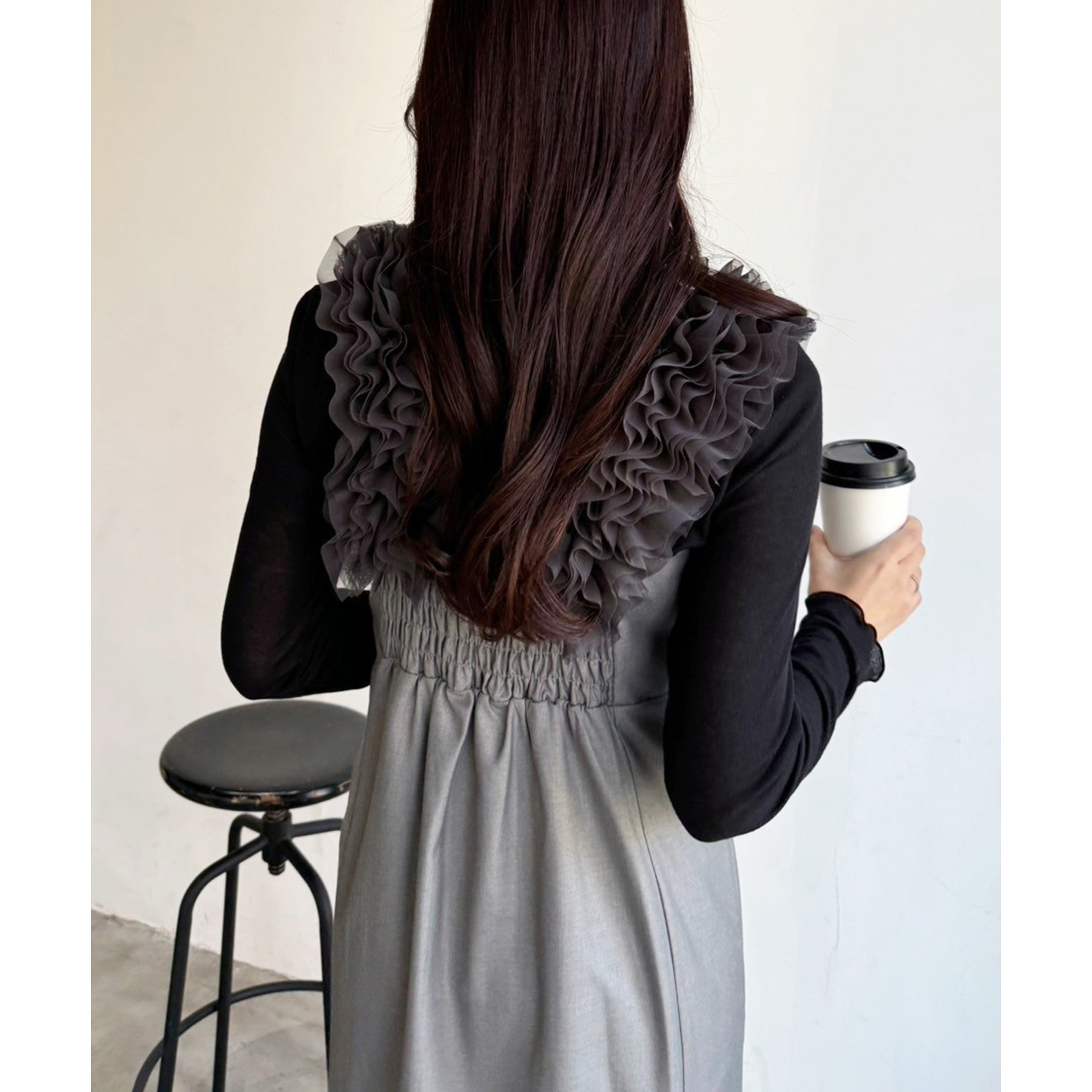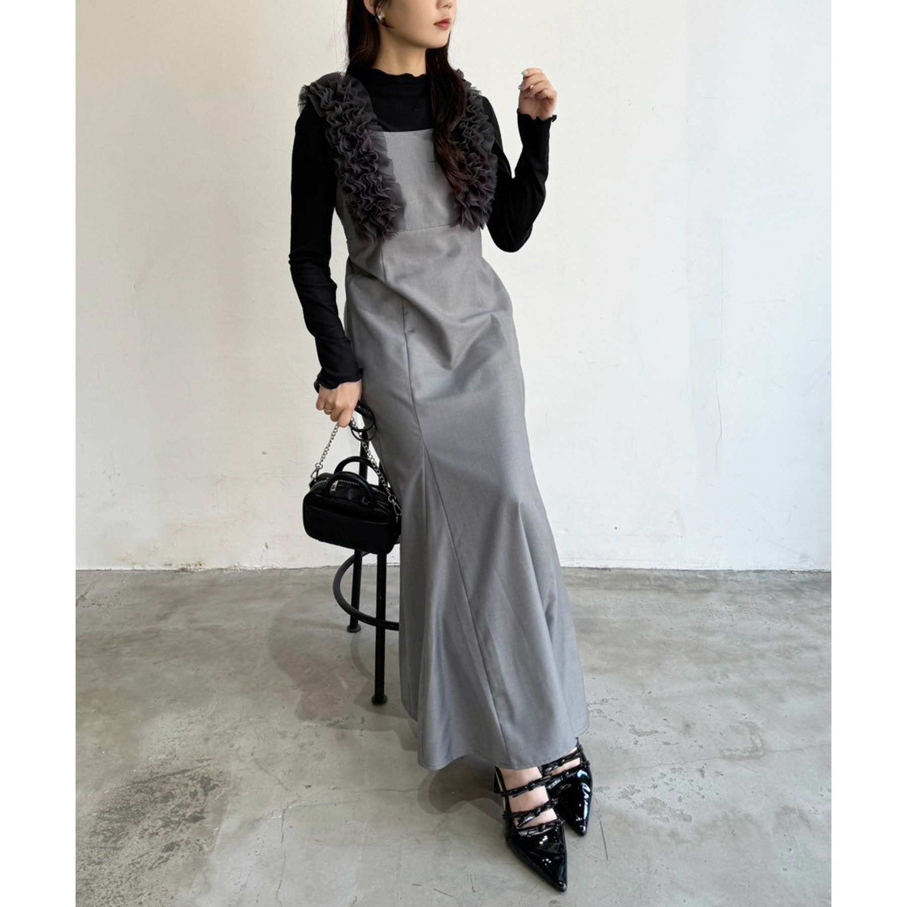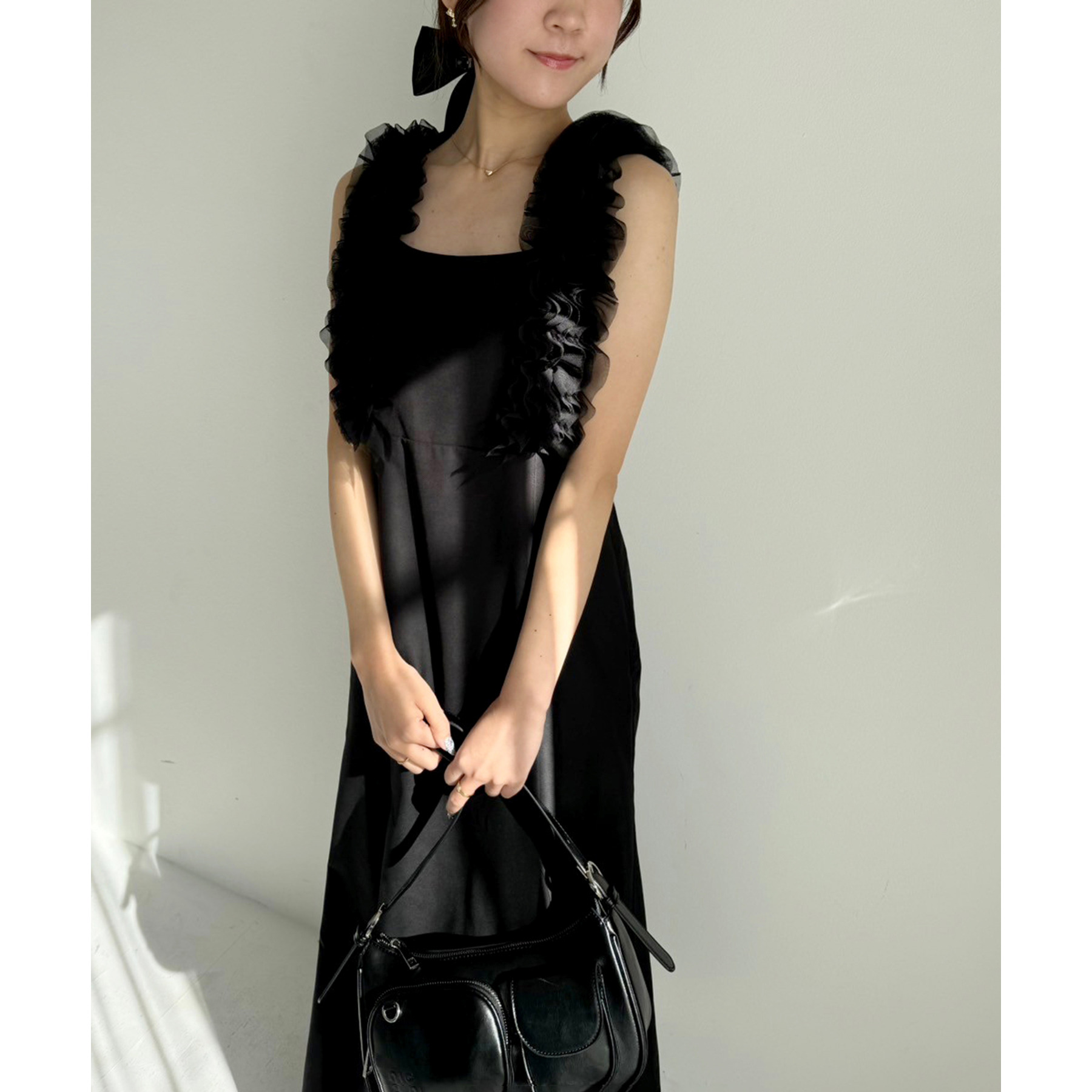 フリルは取り外しもできるので、シンプルなキャミワンピースとしても着用可能。