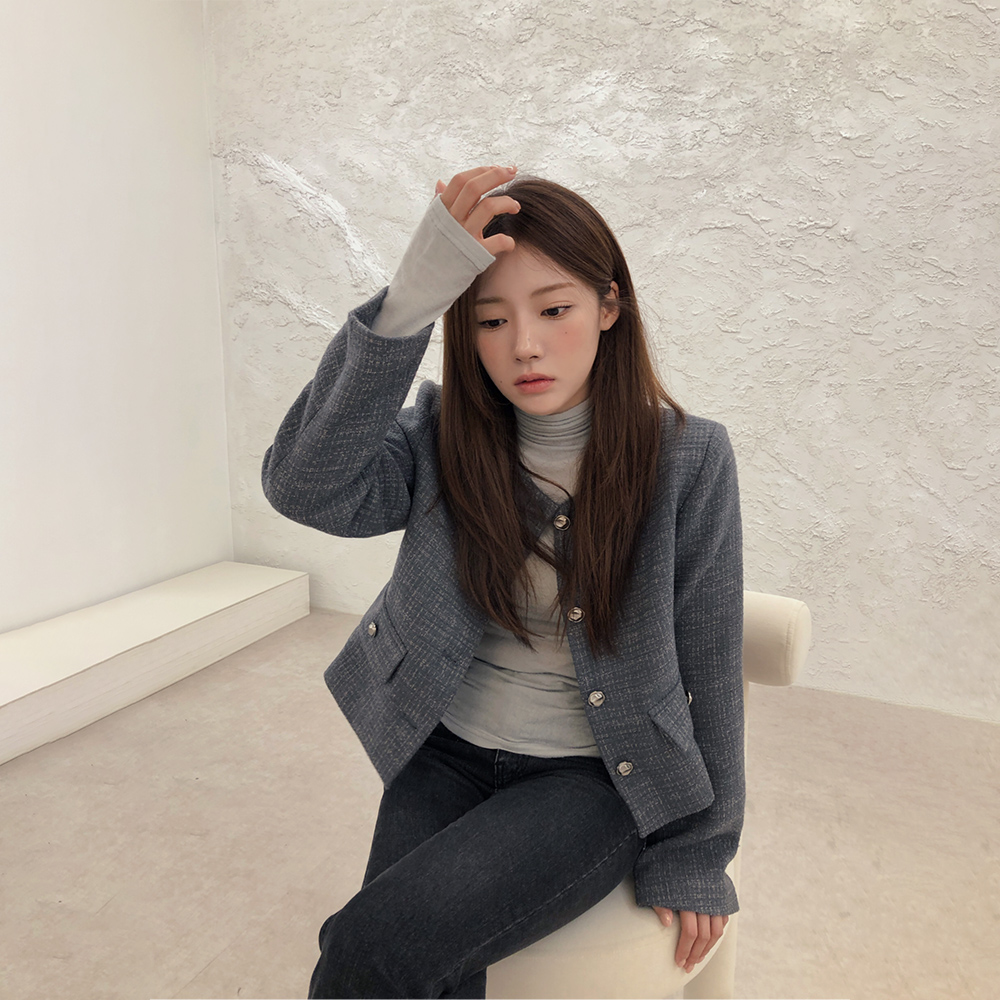 Mandara No-Collar Tweed Jacket