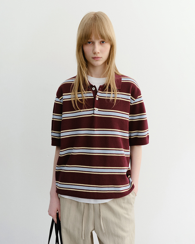 UNISEX MULTI STRIPED POLO KNIT BURGUNDY SKY BLUE_UDSW6B122D2