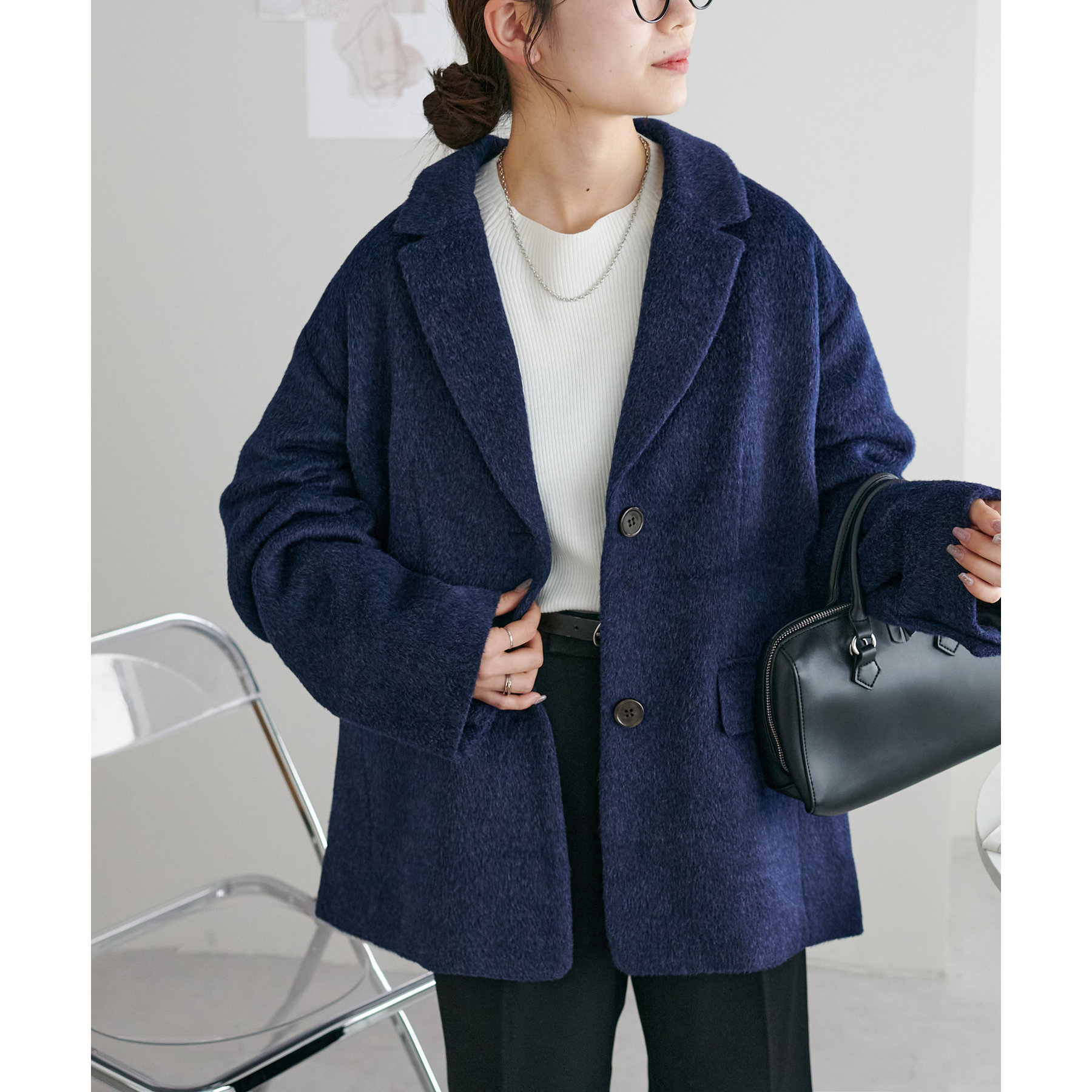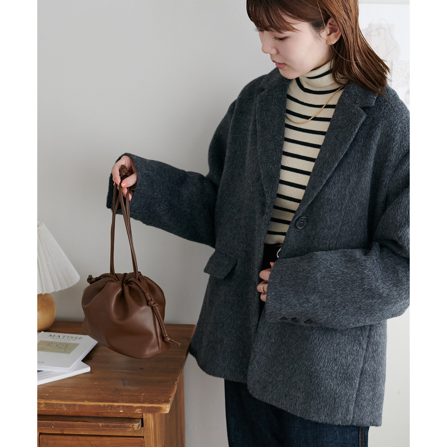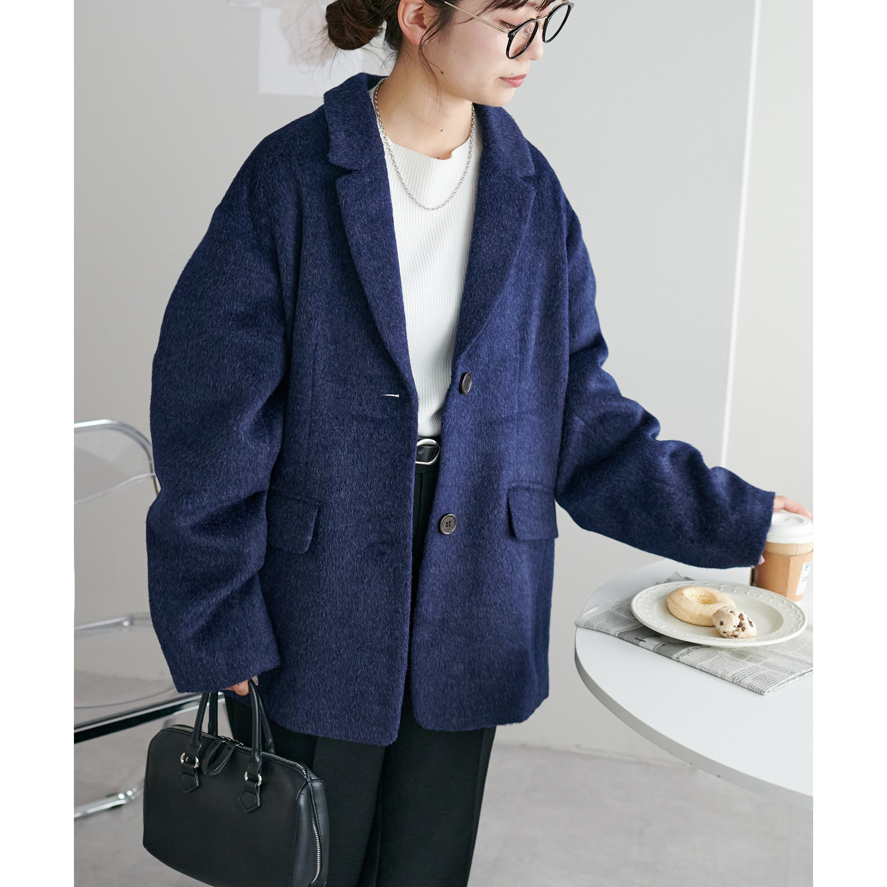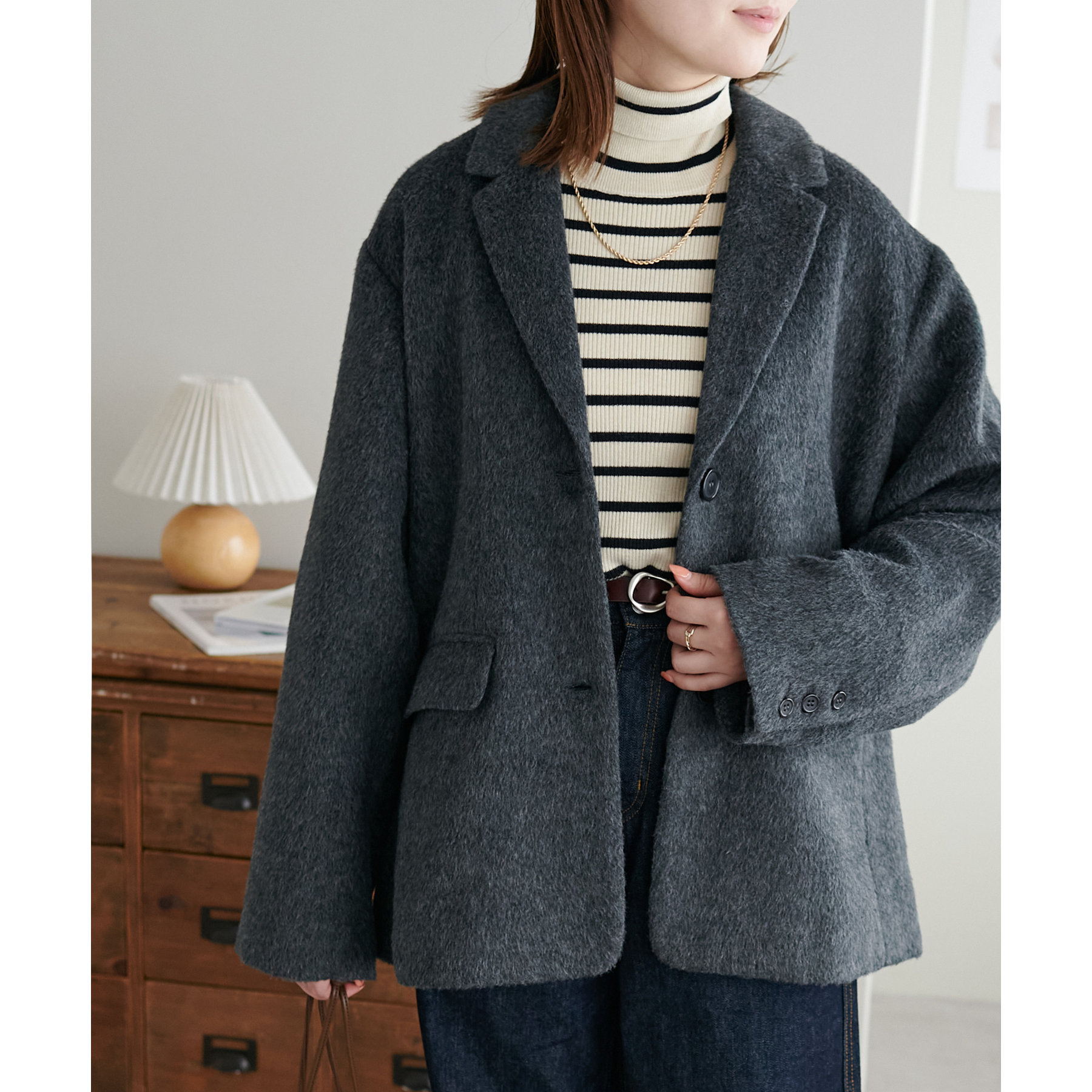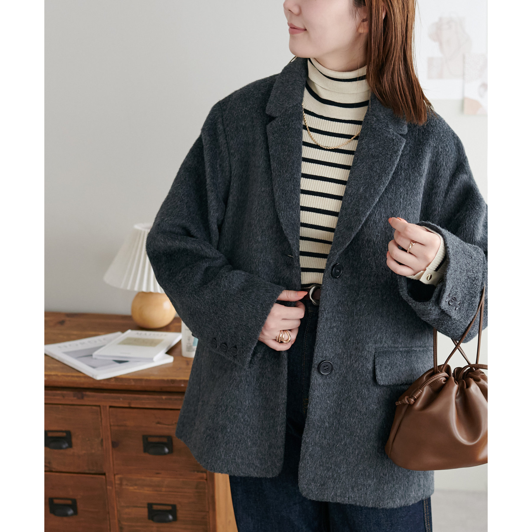 160cmスタッフ:暖かみのある素材で、柔らかい印象になるジャケット。お尻が隠れる丈感なので暖かく着ていただけます◎