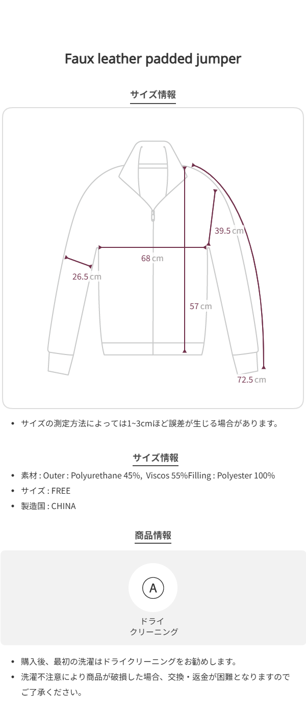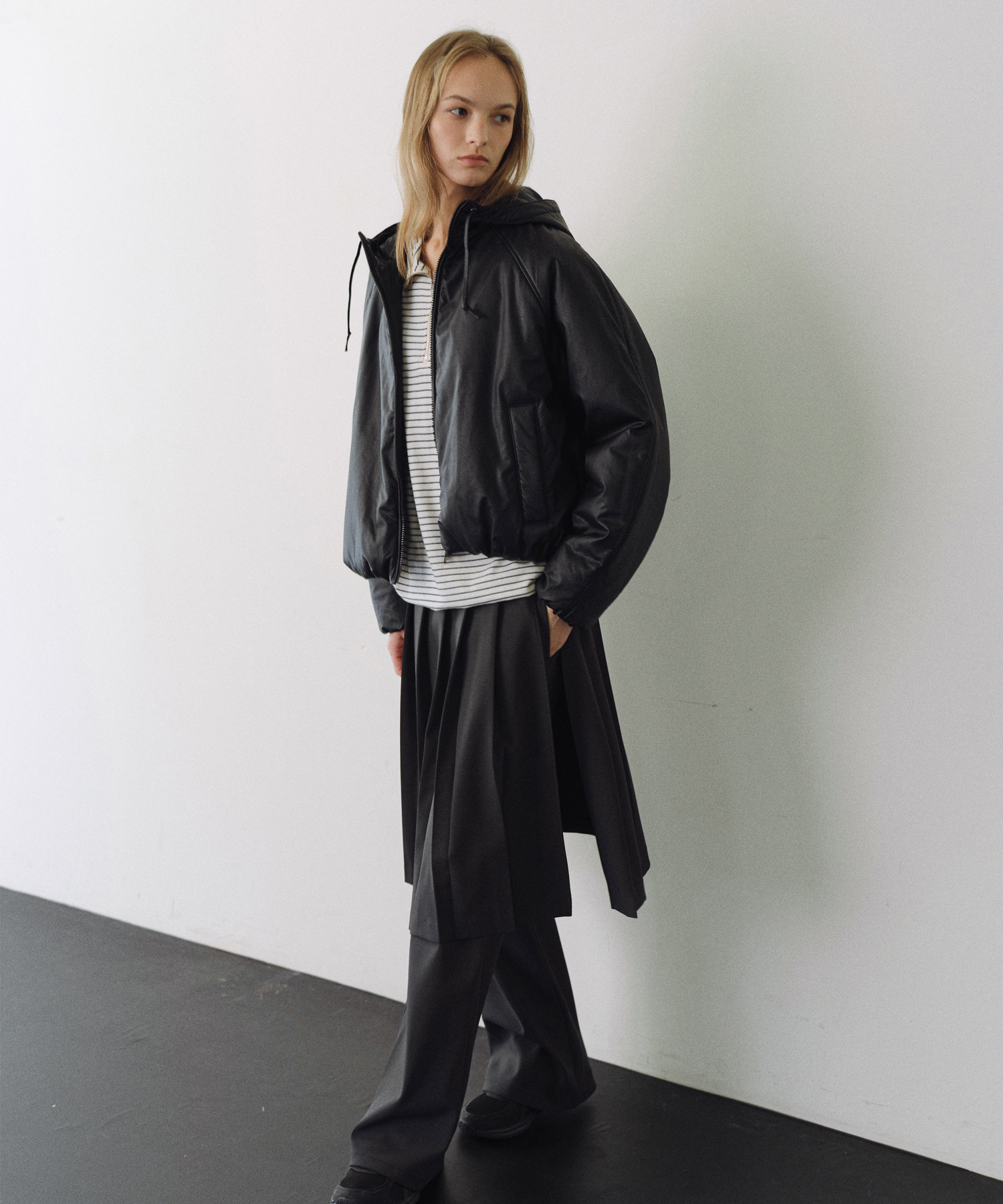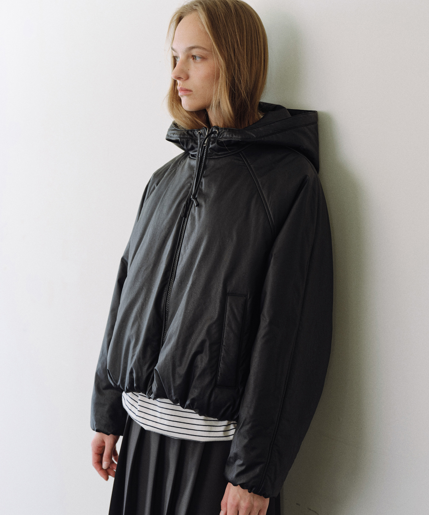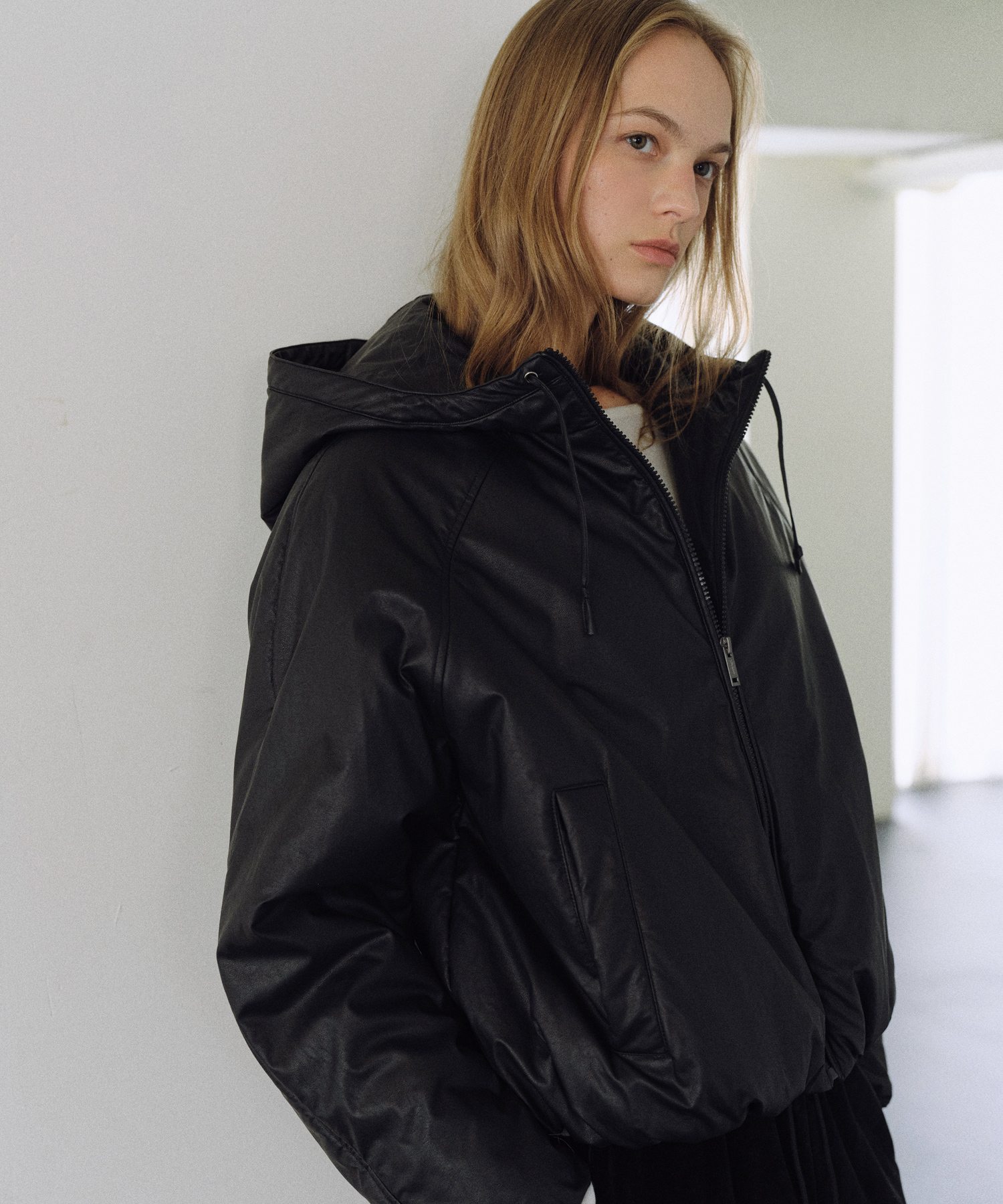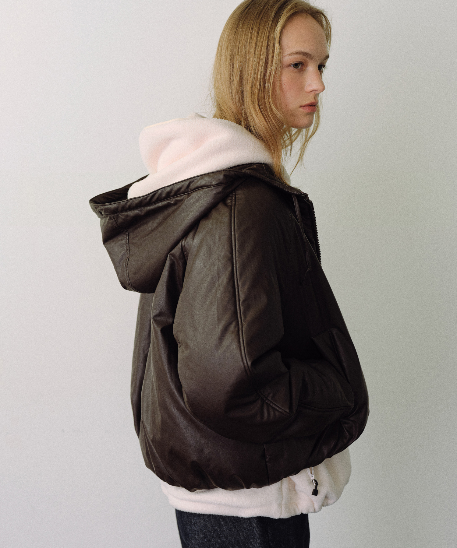 - 軽くて柔らかなフェイクレザー素材で仕立てられたパディングジャンパーです。
