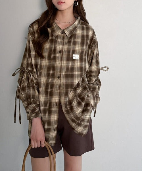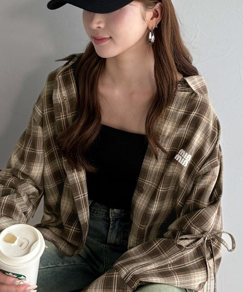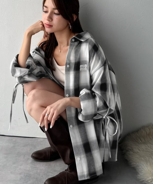 【mily bilet】アレンジ自在!2wayオフショルチェック柄襟シャツ(長袖) mi1019112