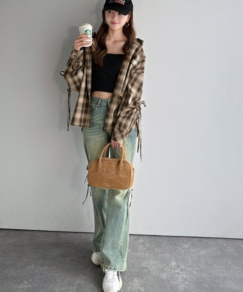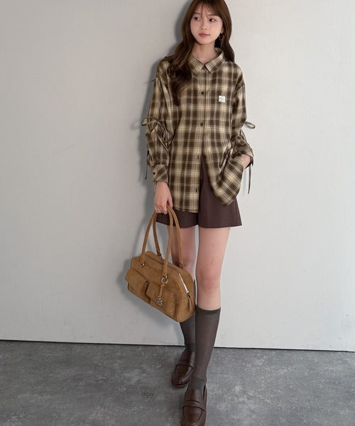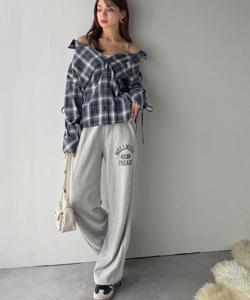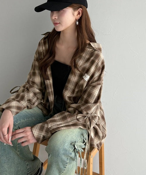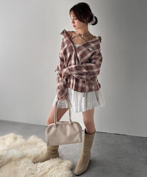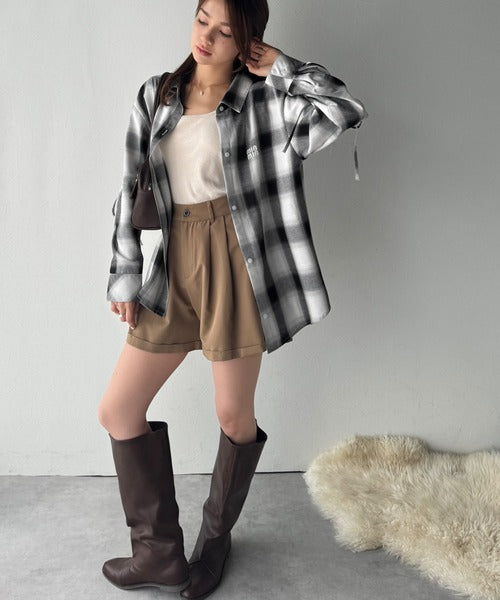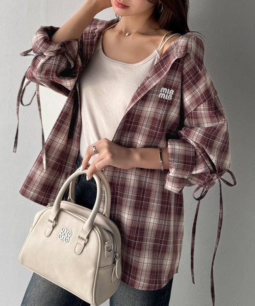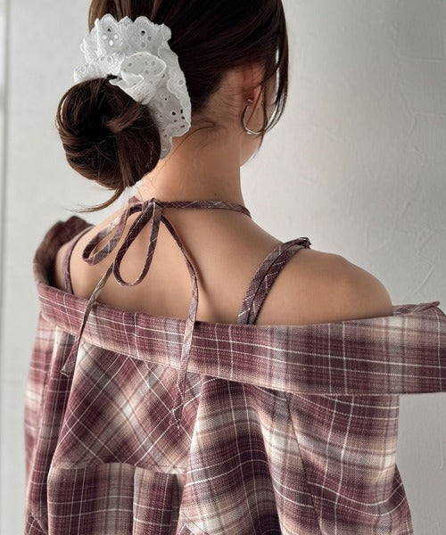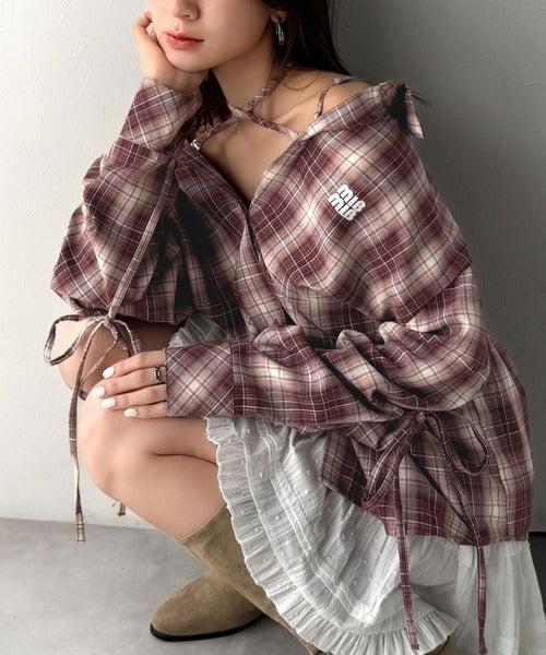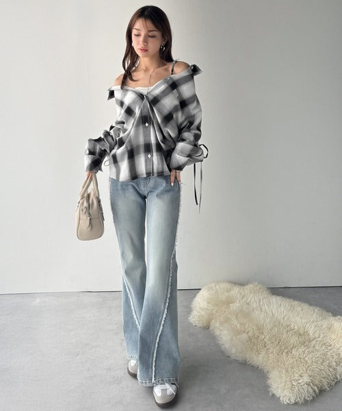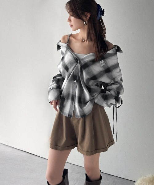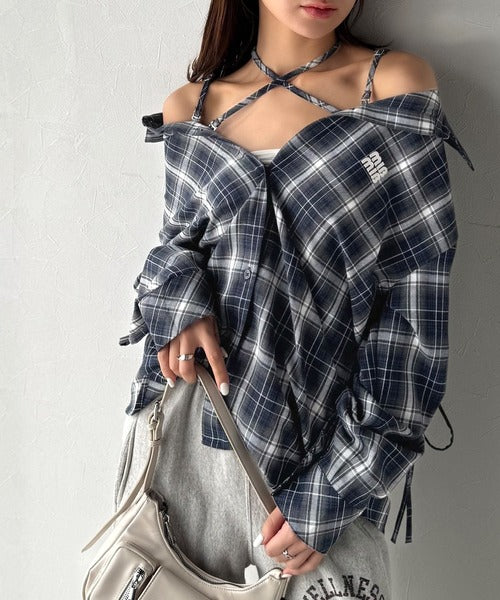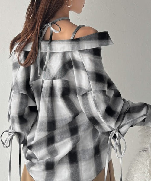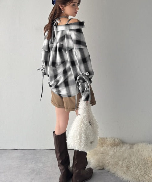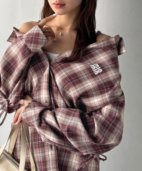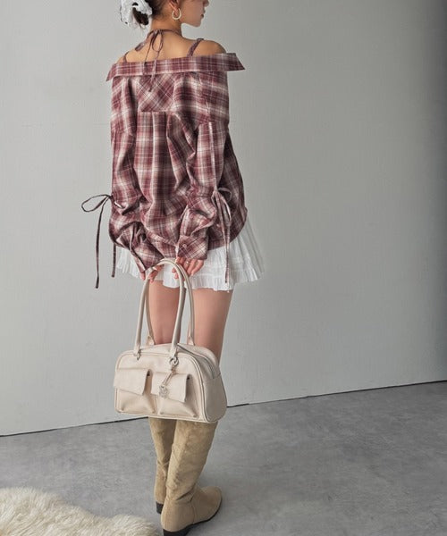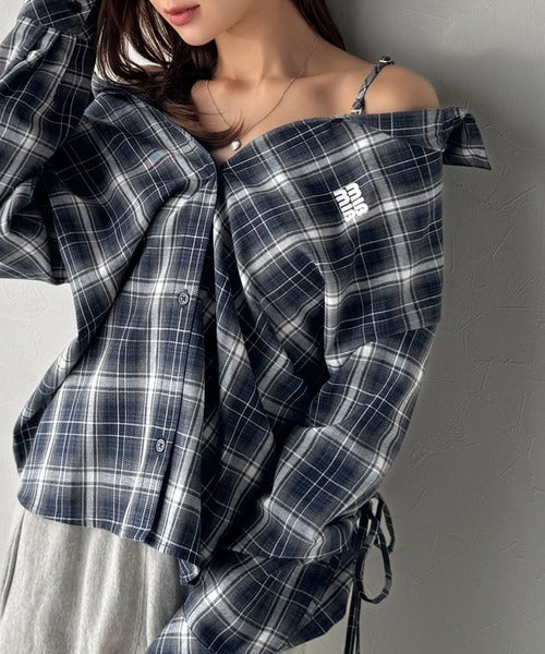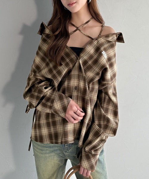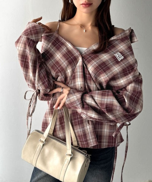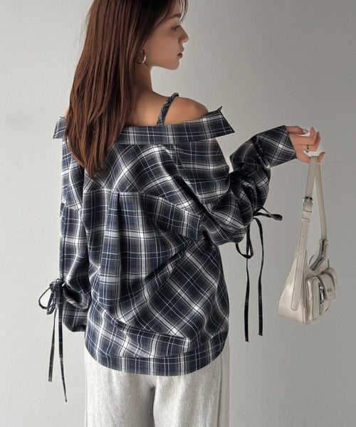 ゆるシルエットのオフショル2wayチェック柄シャツ。
