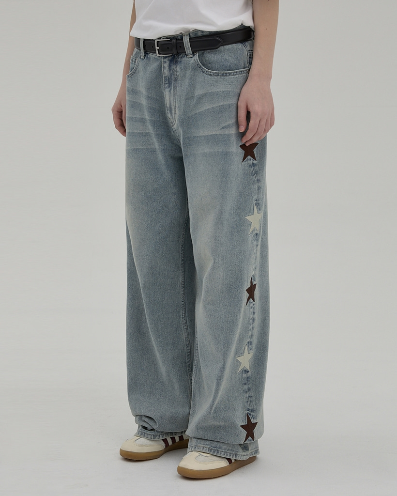 [K-POPアイドル着用] Star Denim Pants YELLOW WASHED LIGHT BLUE