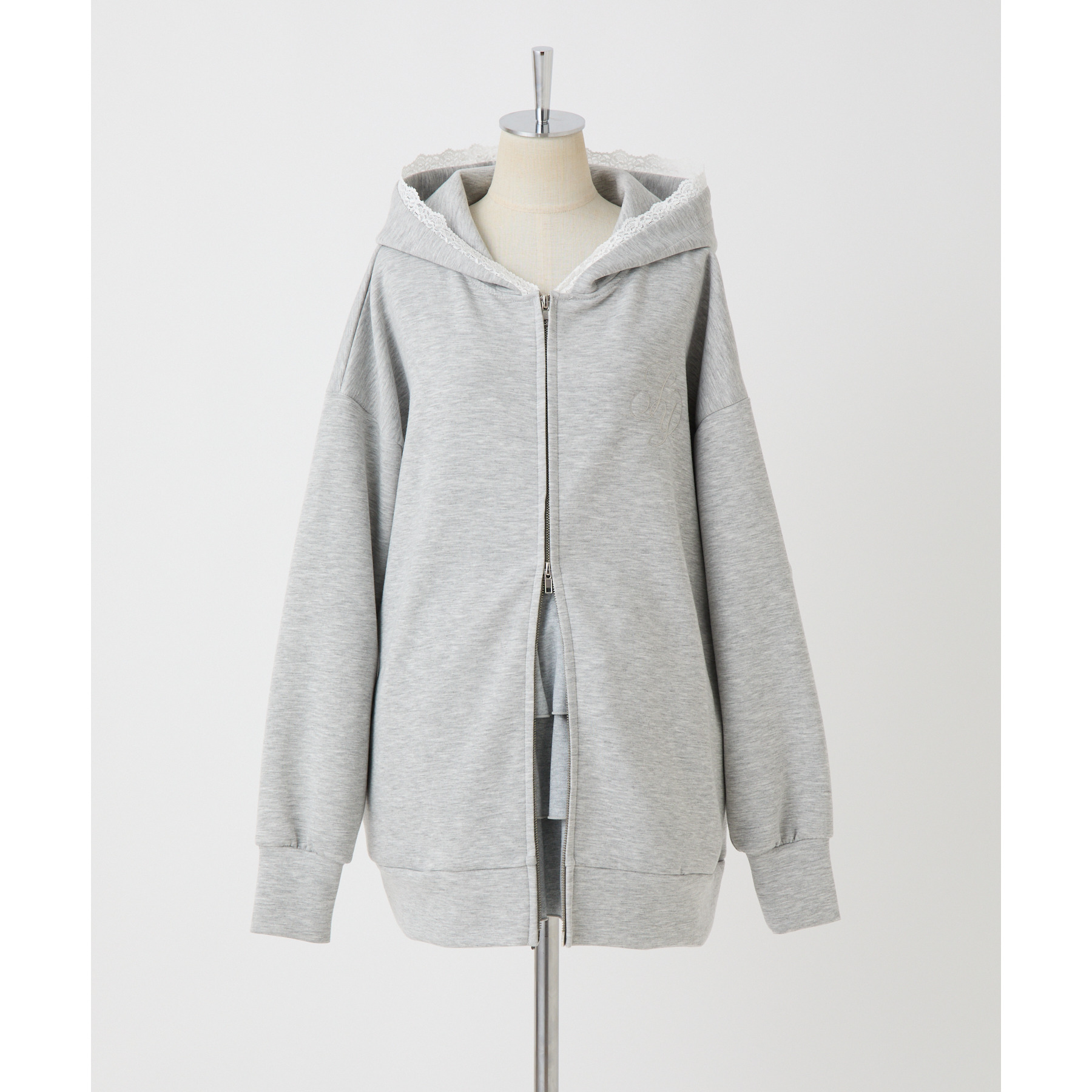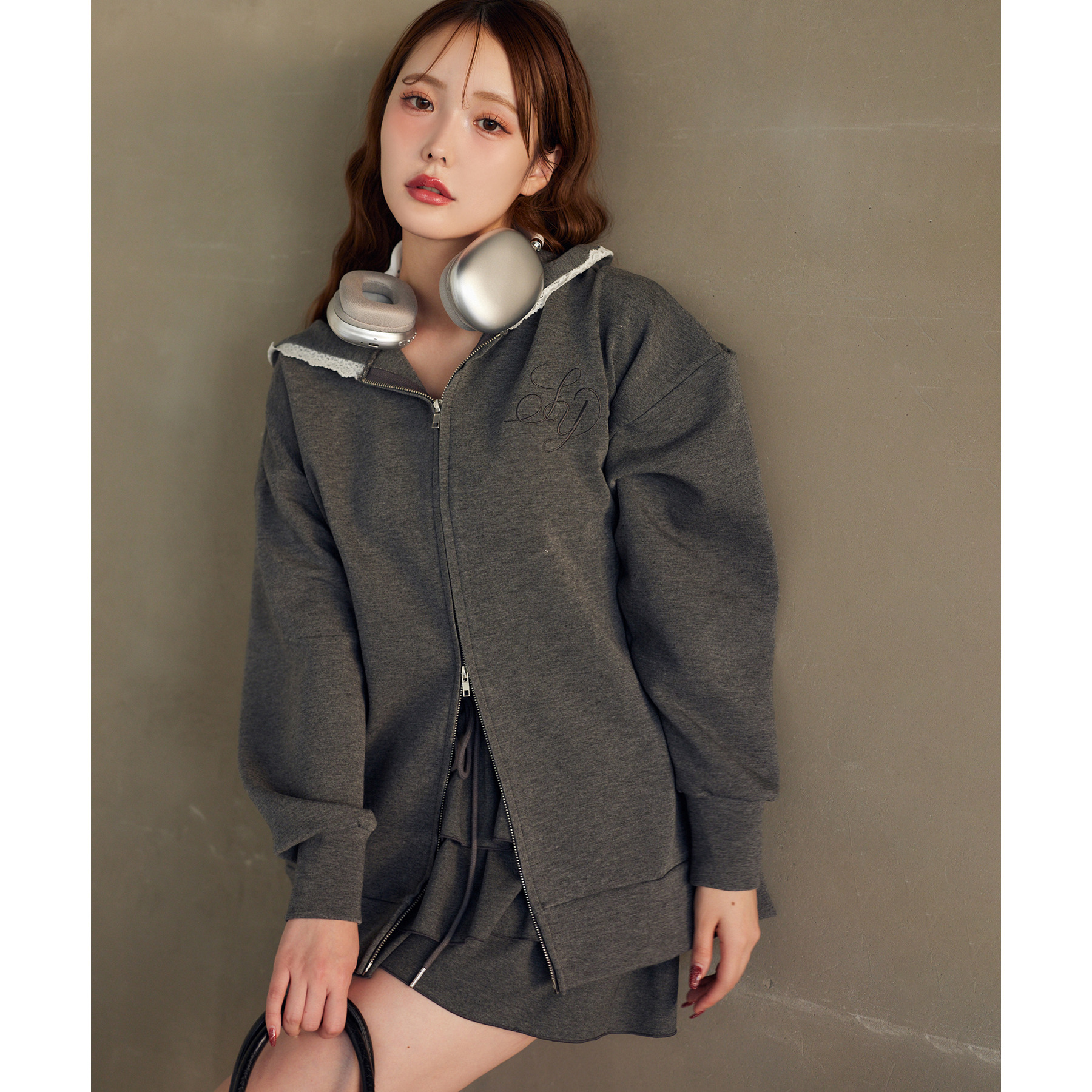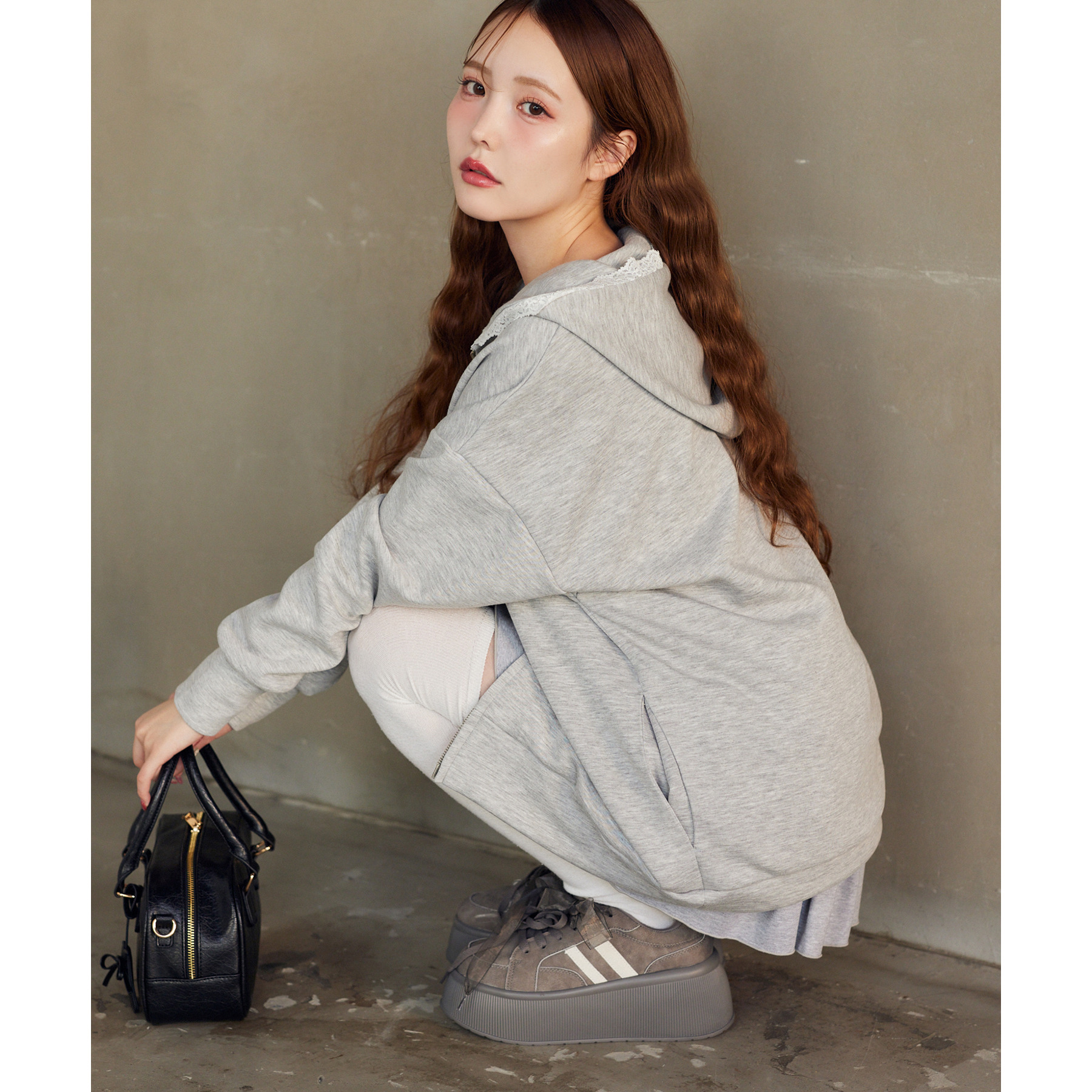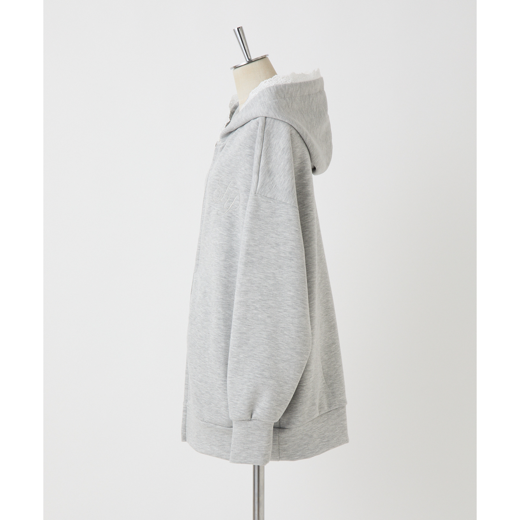 パーカーは胸元の刺しゅうや袖のボリューム感がこなれた印象に。