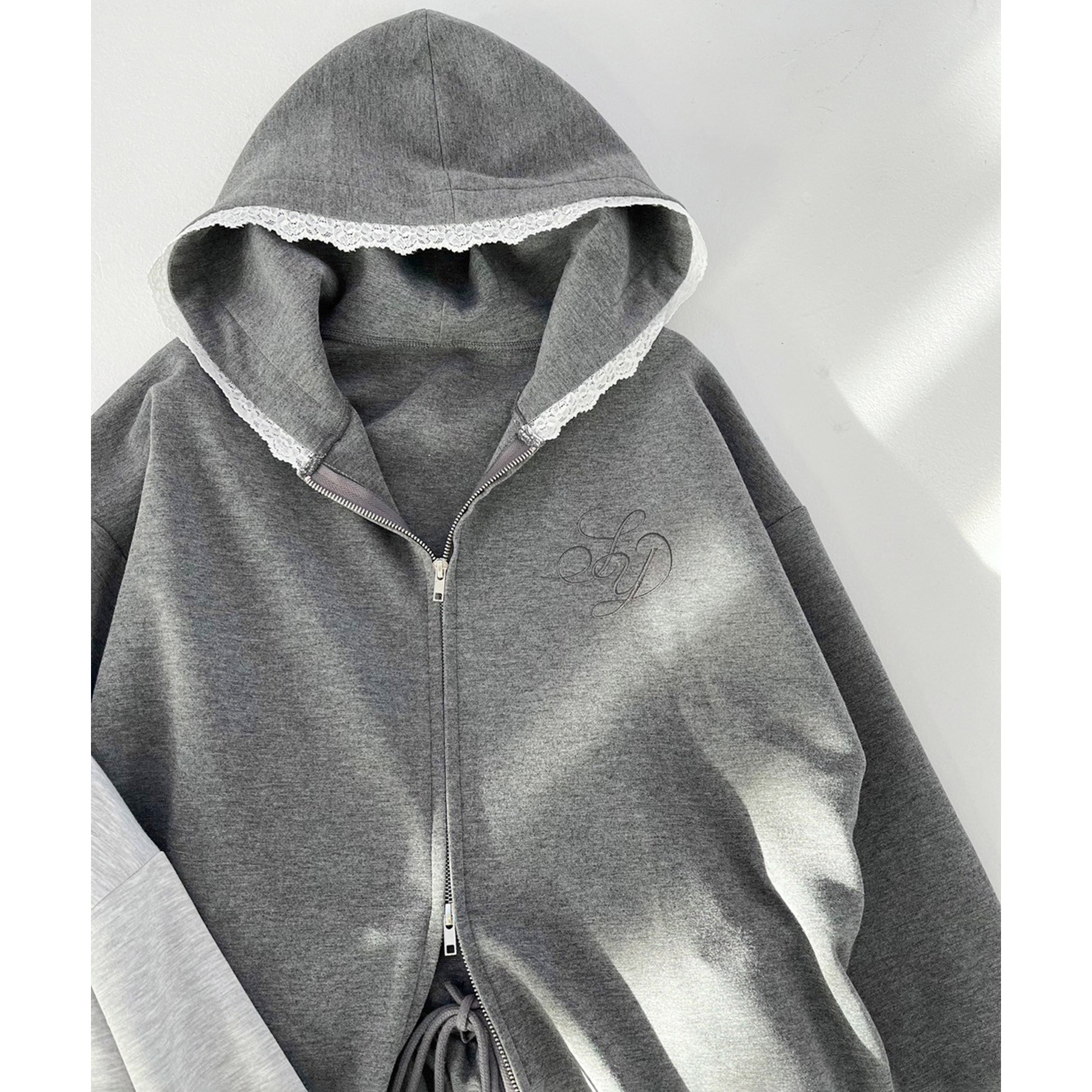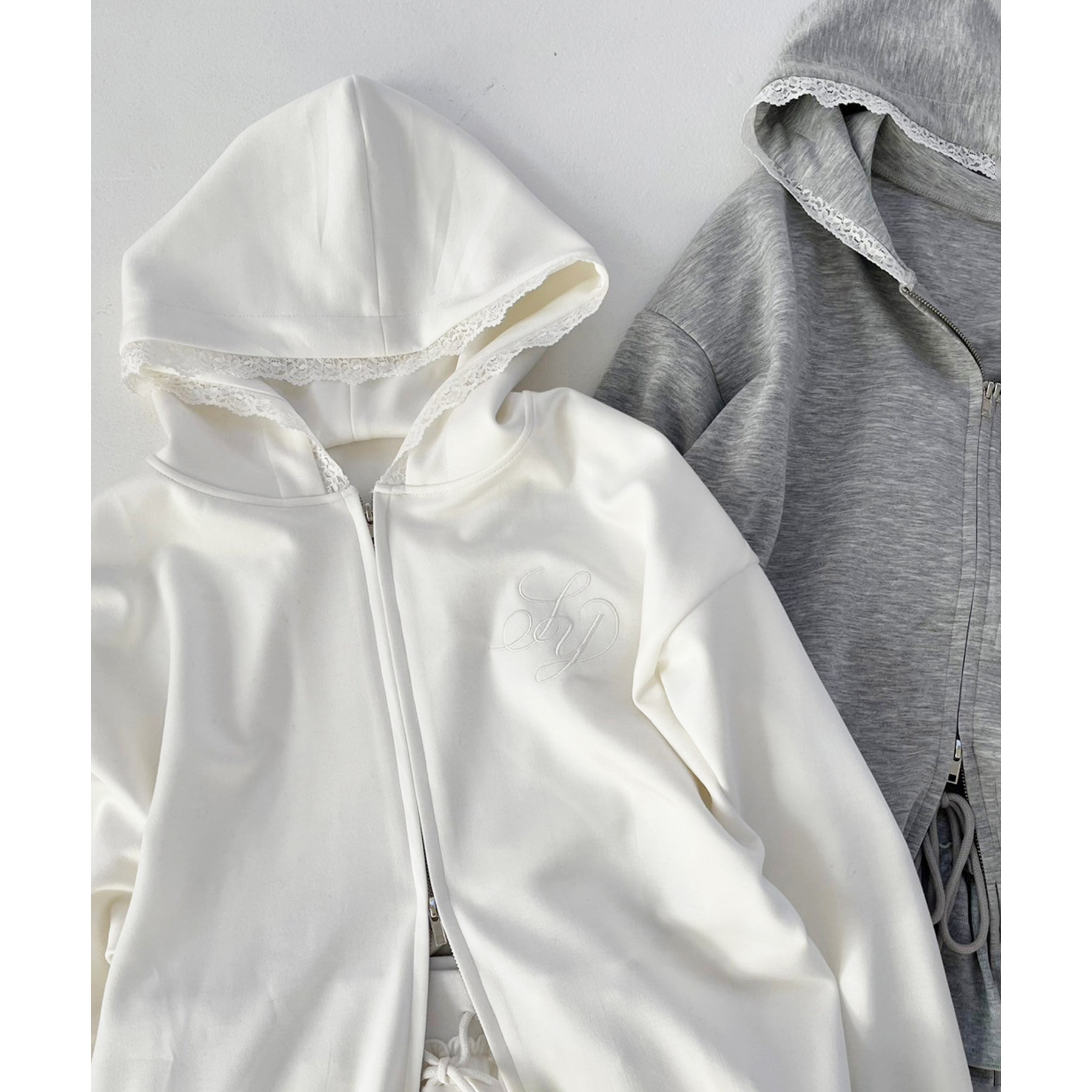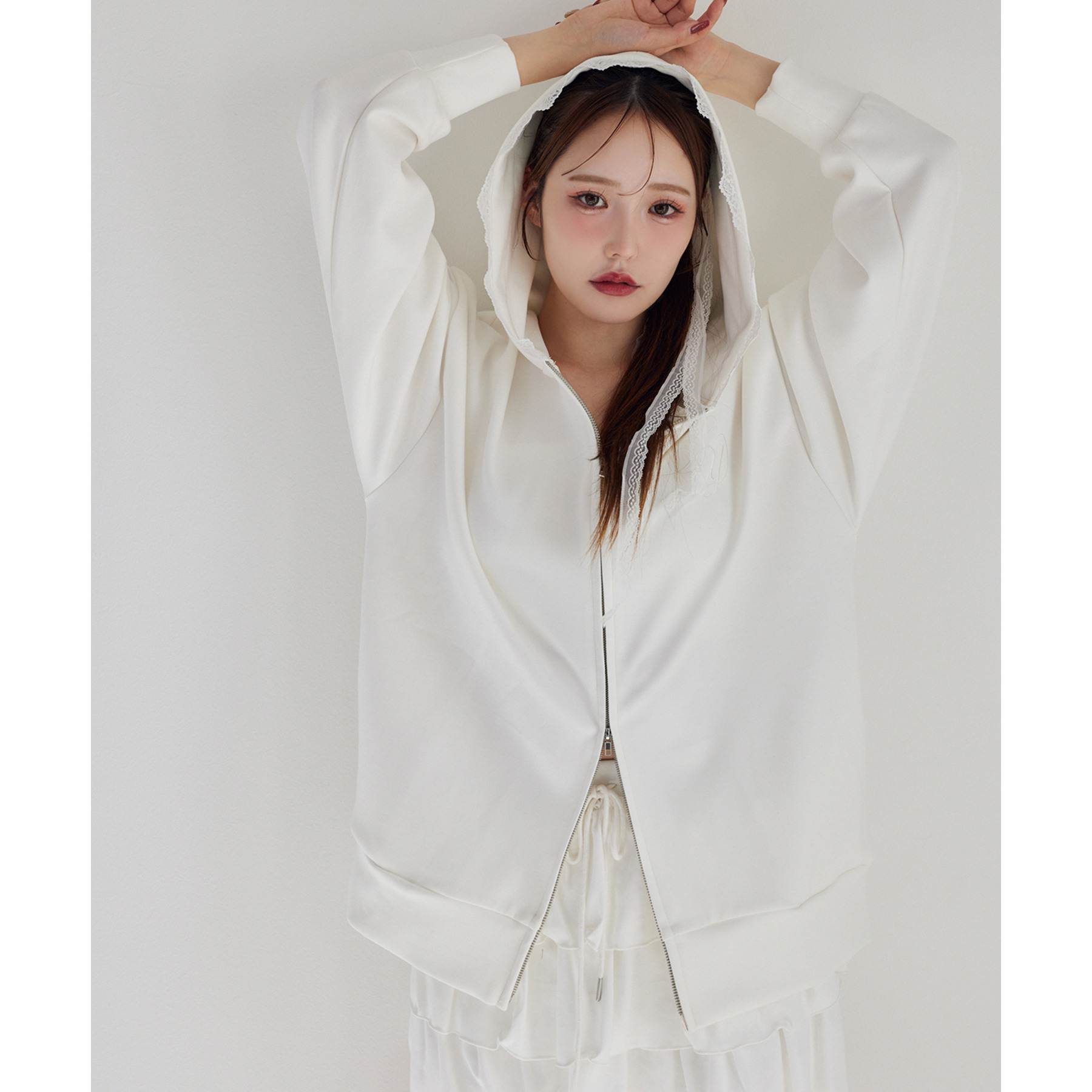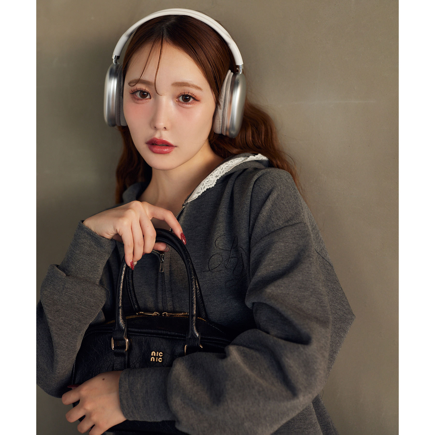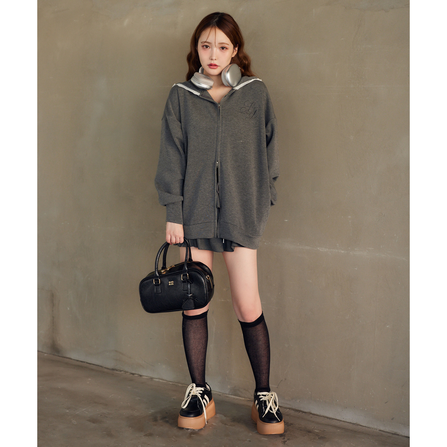 パーカーは胸元の刺しゅうや袖のボリューム感がこなれた印象に。