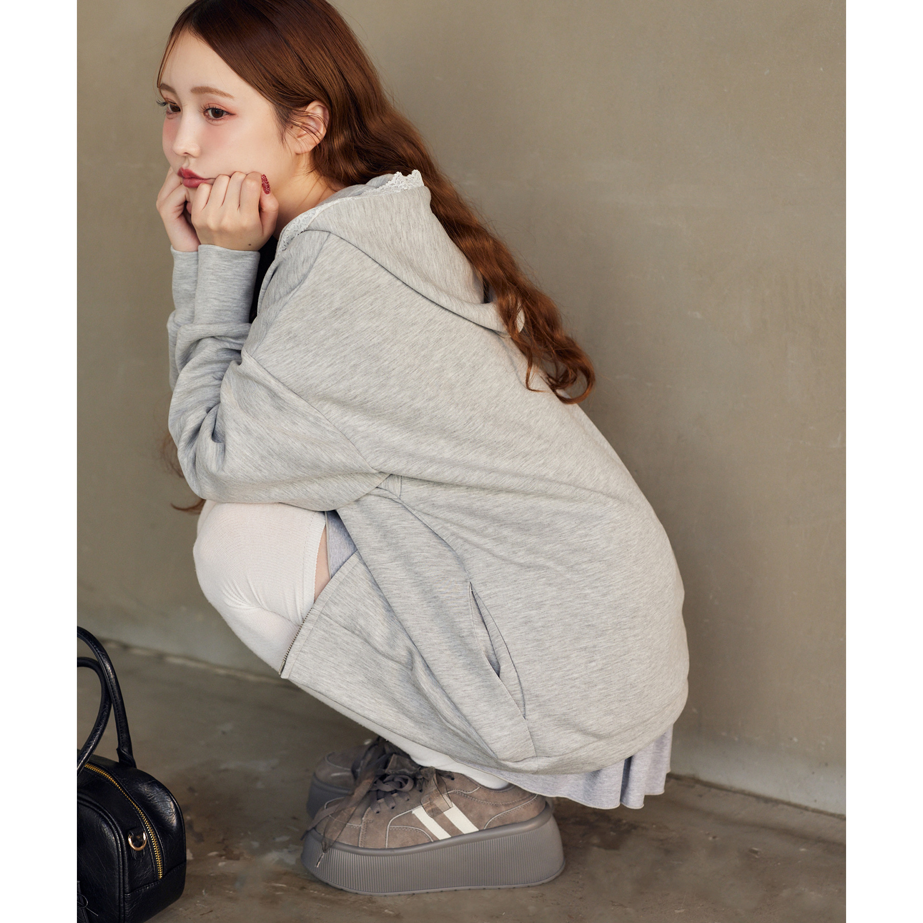 パーカーは着丈が長めなので、ミニワンピ風に着ていただくのもオススメです。