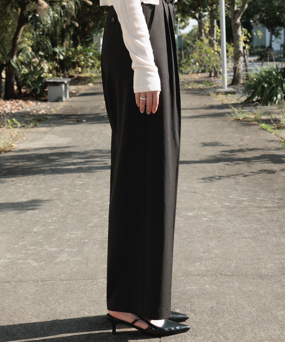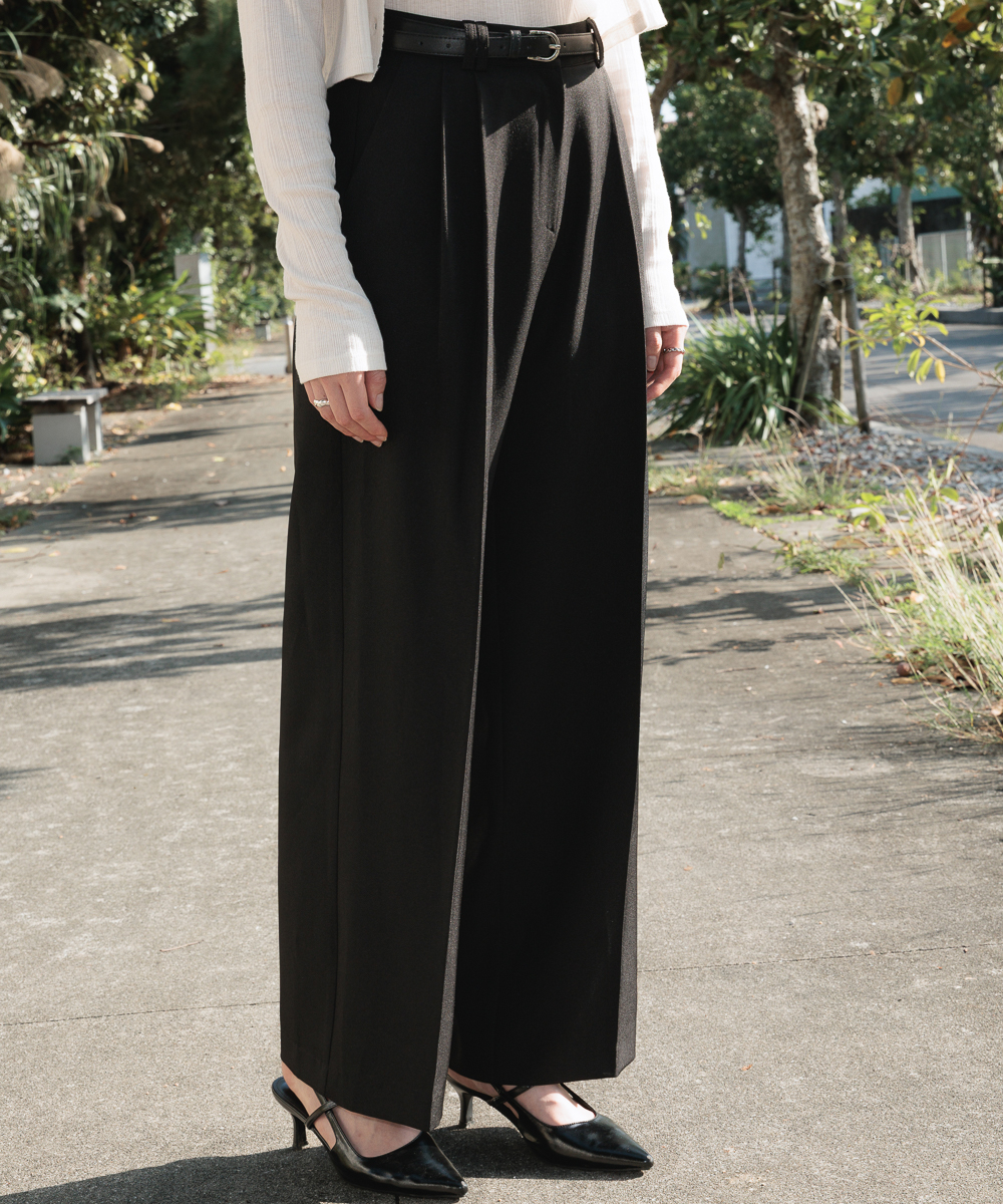 Classic Pintuck Wide Slacks [Black]
