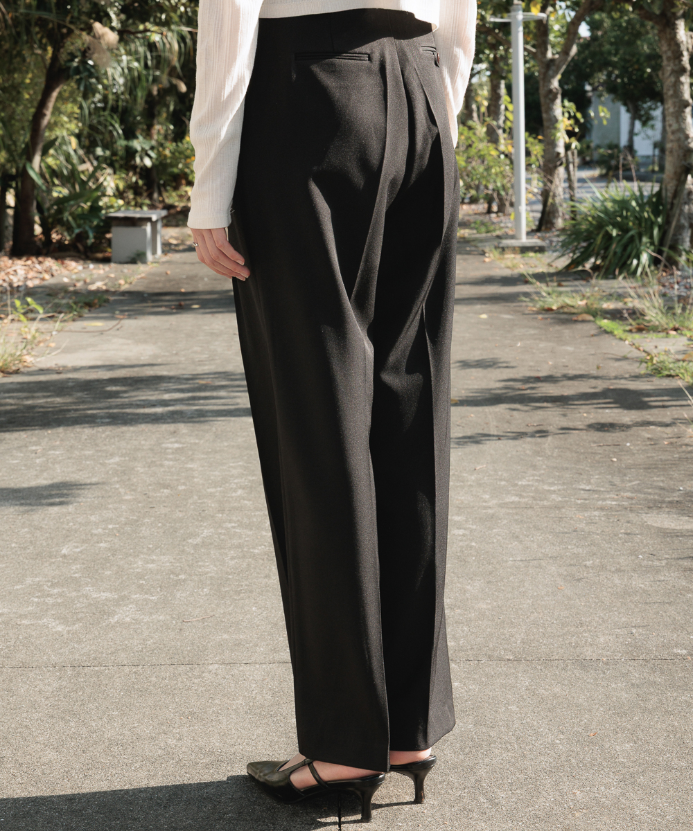 クラシックなムードのツータックハイウエストワイドスラックスです。