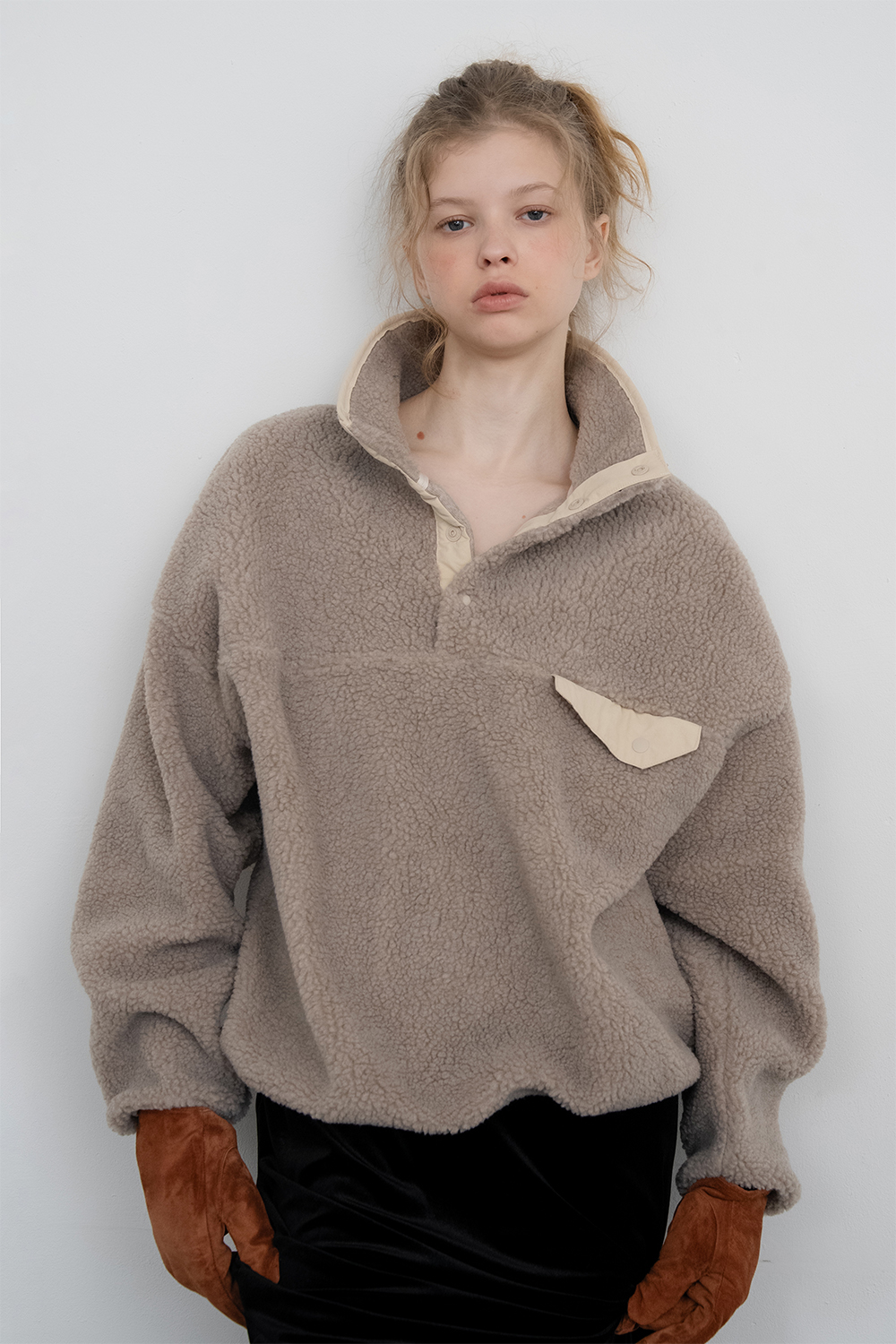 ふわふわとしたシアリングテクスチャーが特徴の「Teddy fleece half anorak」です。