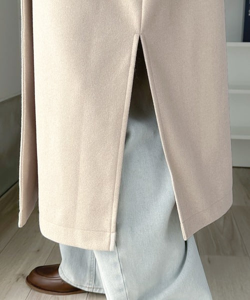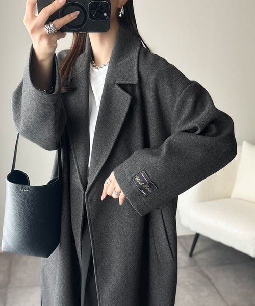 しっかり、かつ柔らかく肌触りのよい生地を使ったテーラードロングコート。