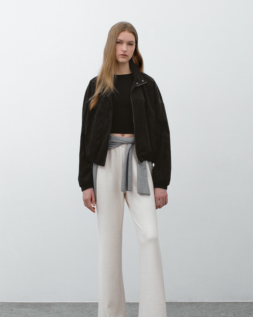 裾を絞れるストリングがあり、ブルゾンシルエットで演出が可能です。