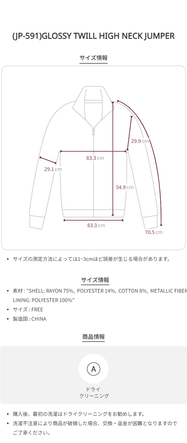 (JP-591)GLOSSY TWILL HIGH NECK JUMPER