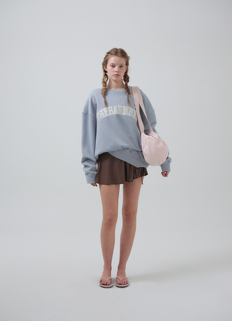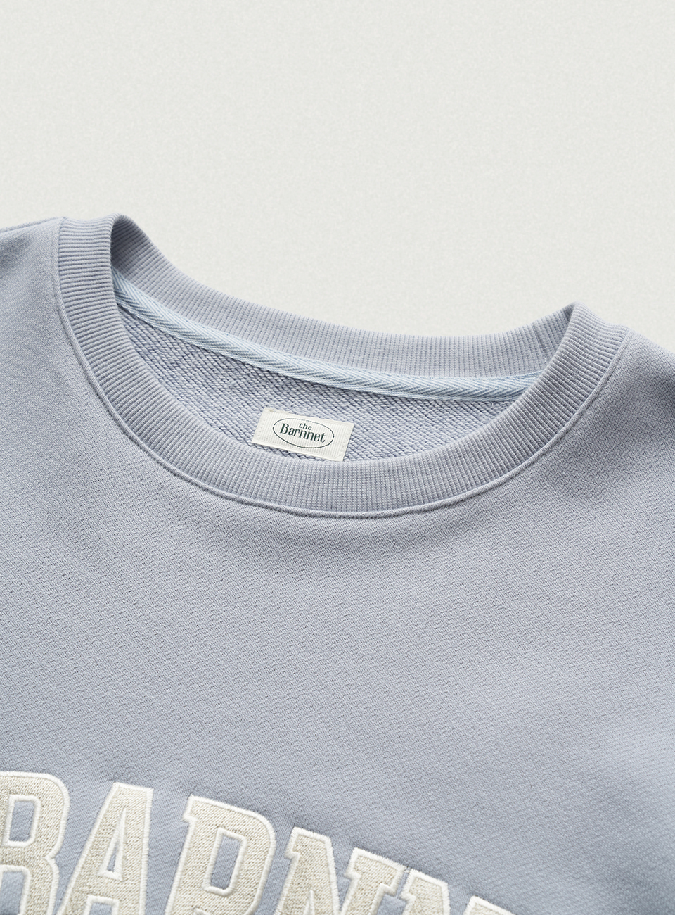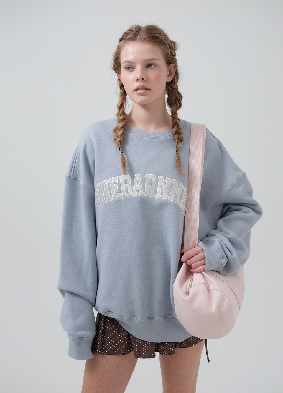 ナチュラルなフィットを演出するラウンドネックスウェットシャツ。