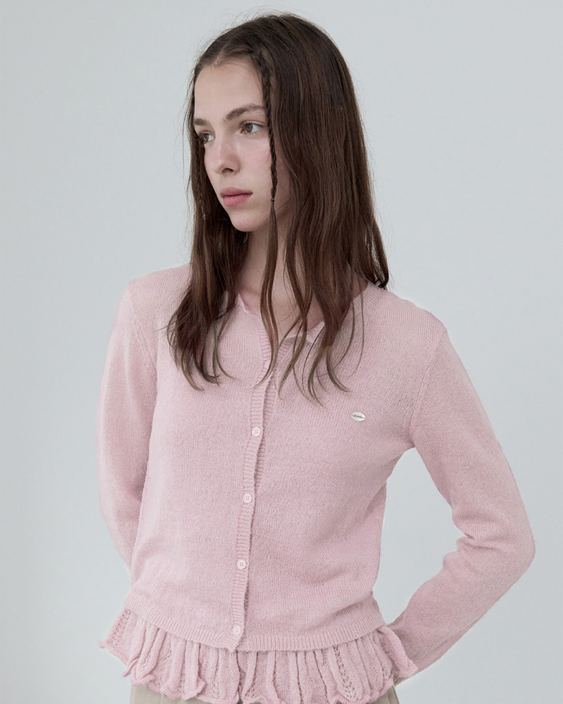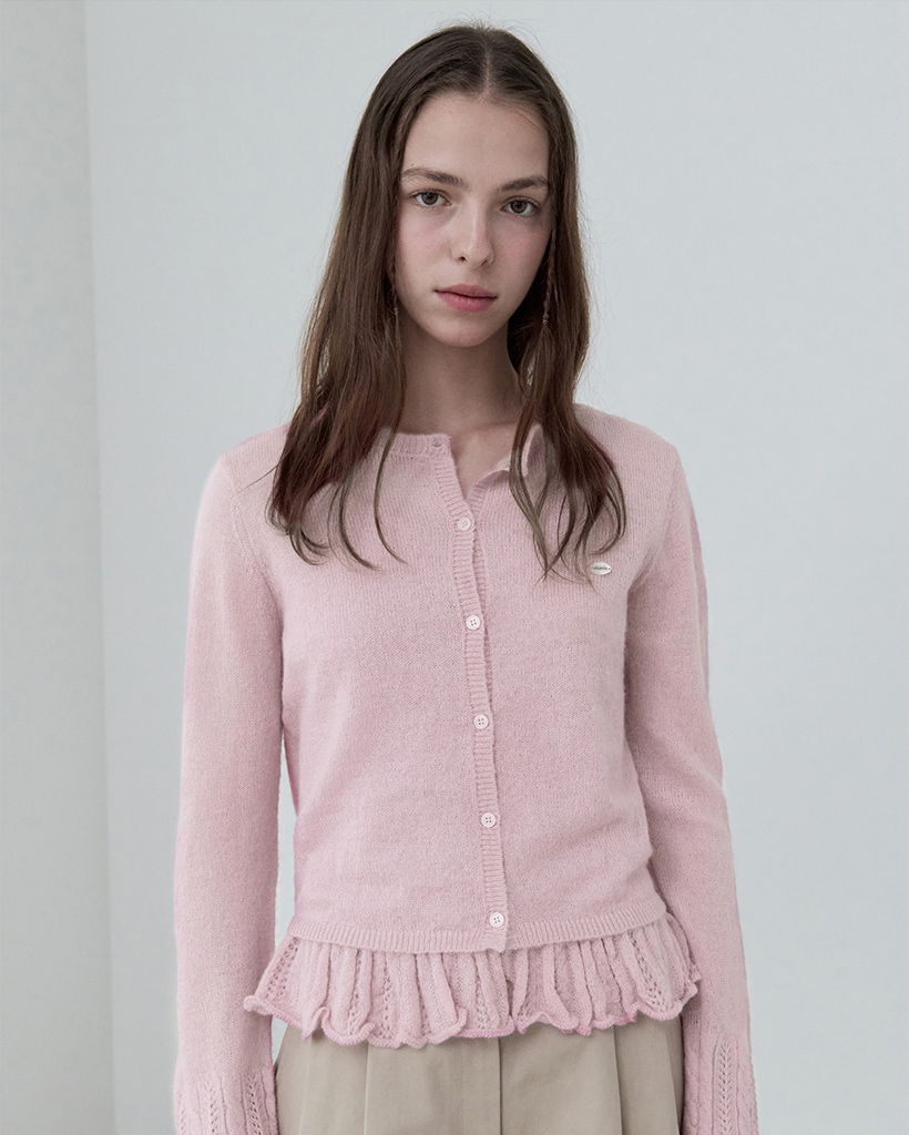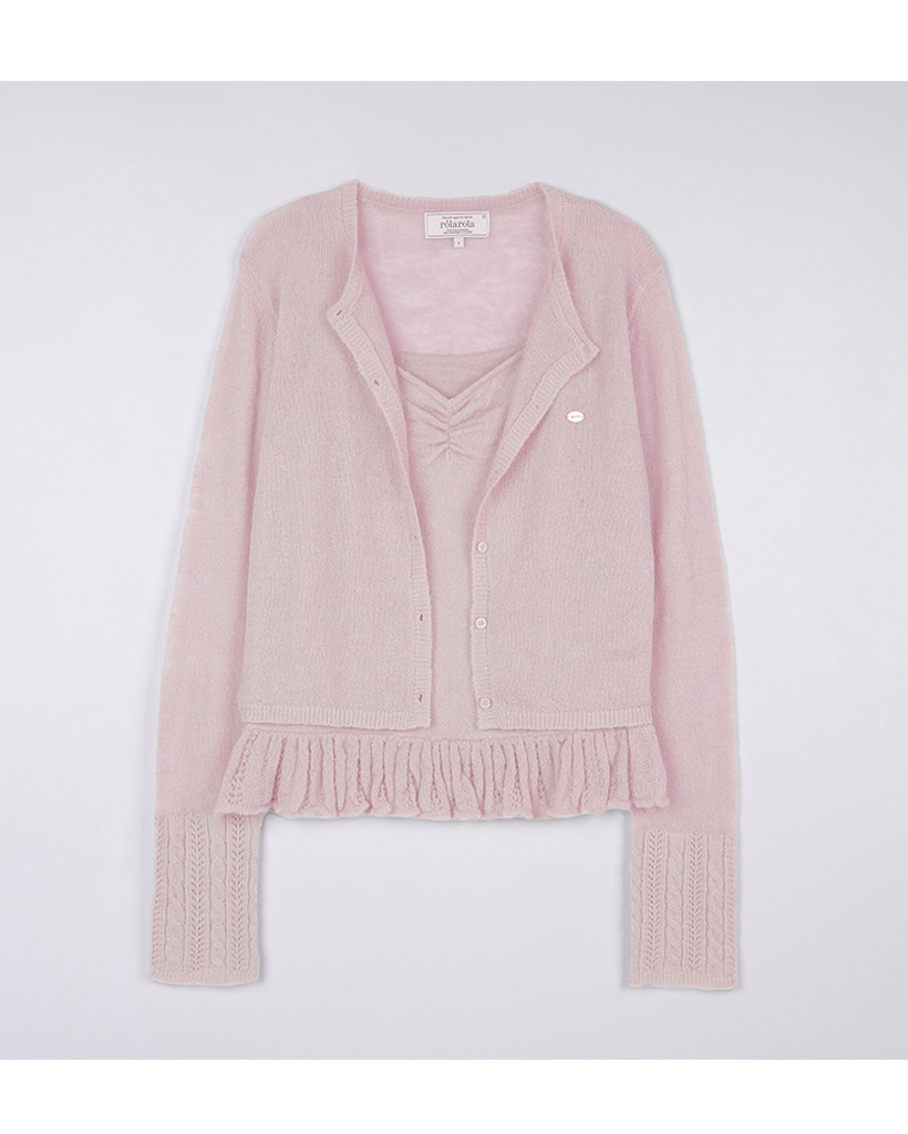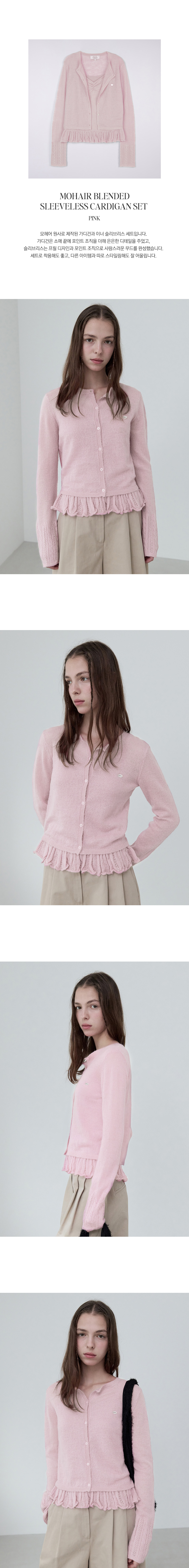 MOHAIR BLENDED SLEEVELESS CARDIGAN SET PINK
