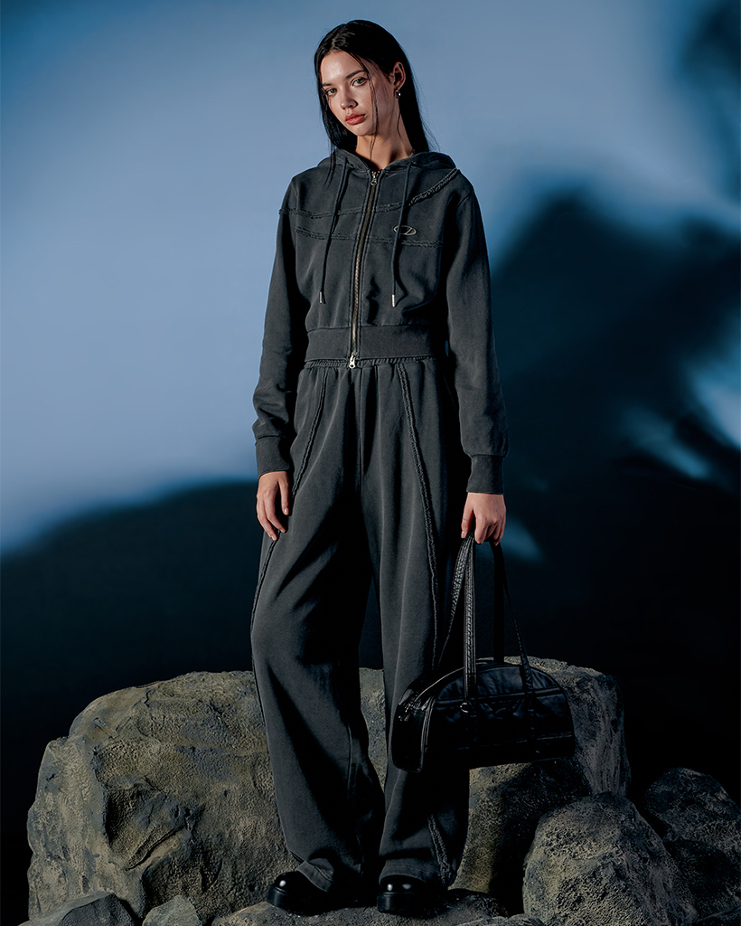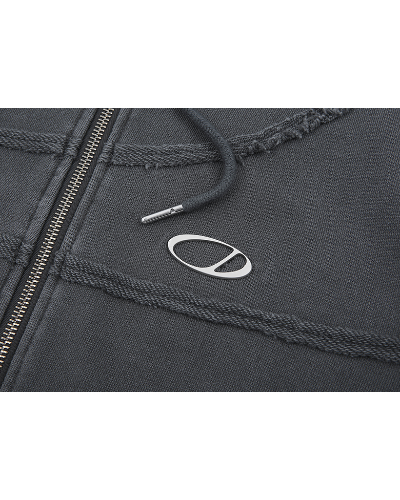 Pigment Cut-Off Hoodie Zip-Up - charcoal