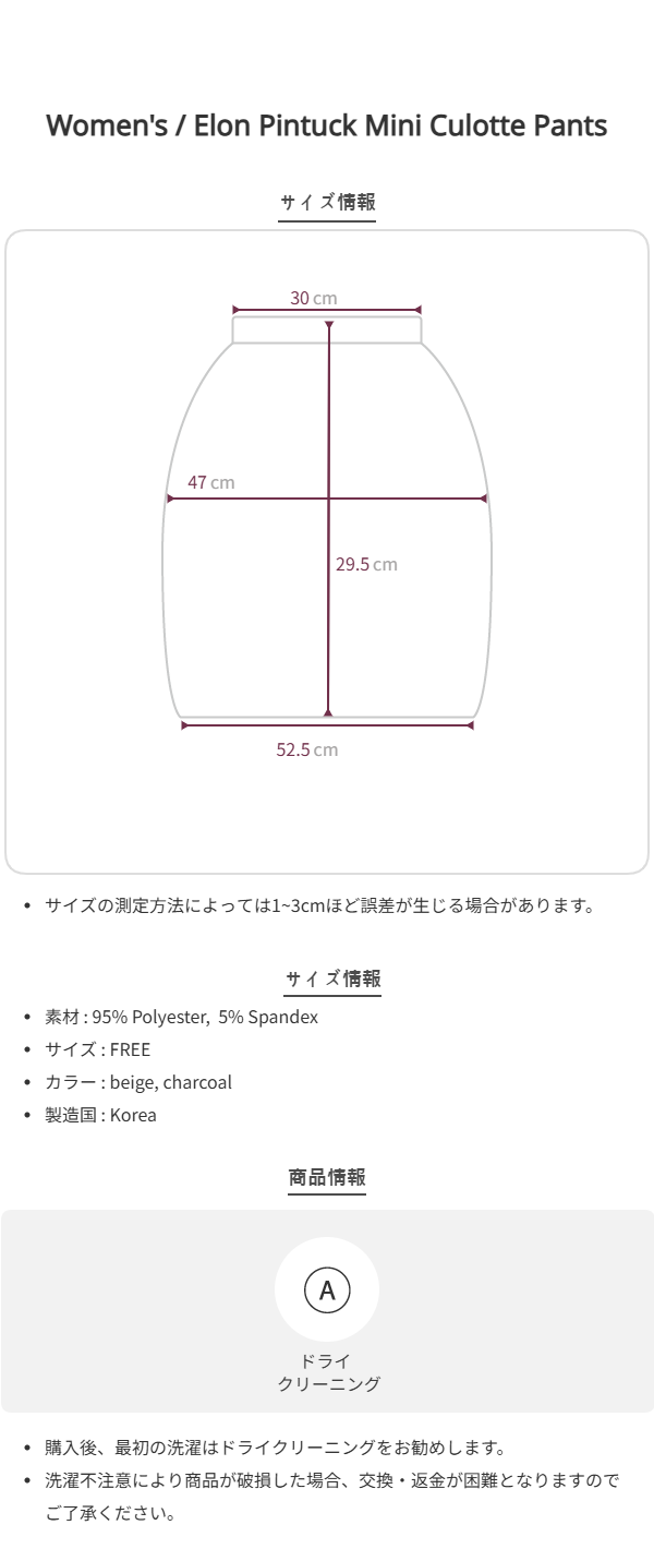 HEIGHT 170cm / BUST 81cm / WAIST 62cm / HIP 90cm