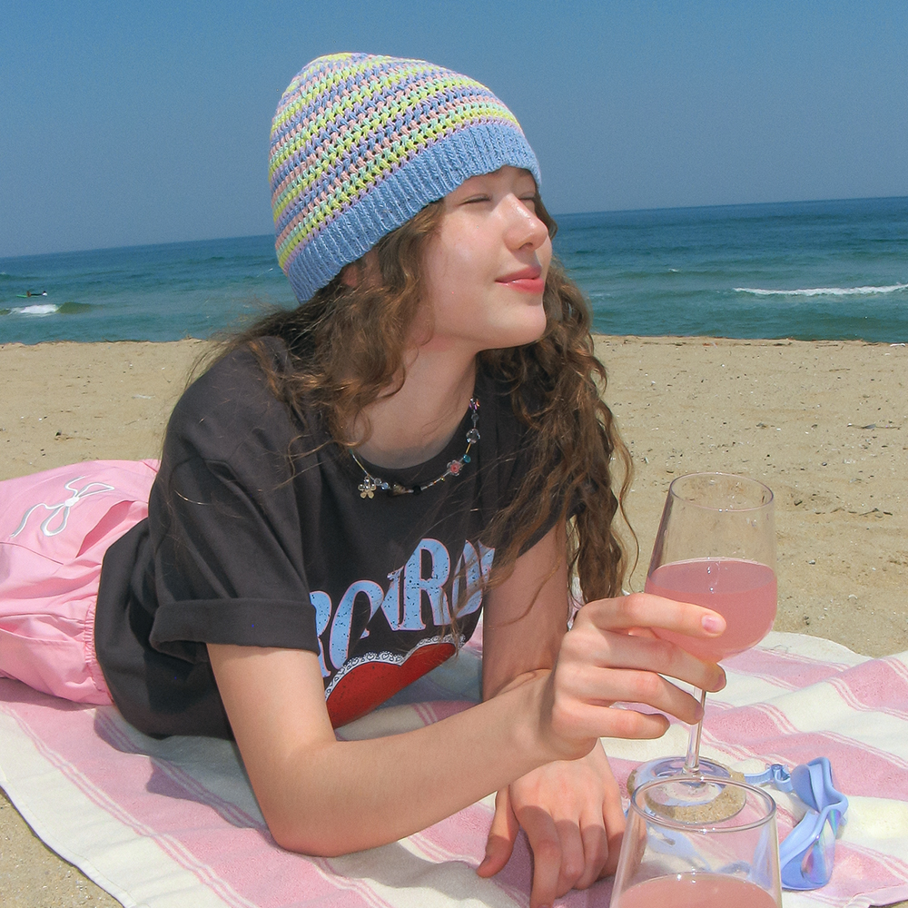 CROCHET KNIT BEANIE COLORED PASTEL