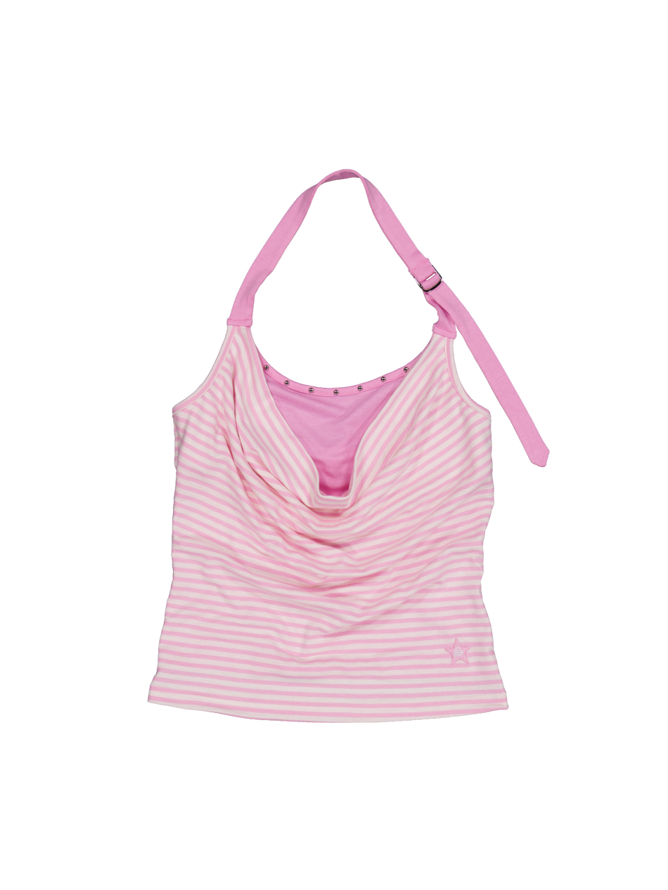STRIPE LAYERED HALTERNECK / PINK
