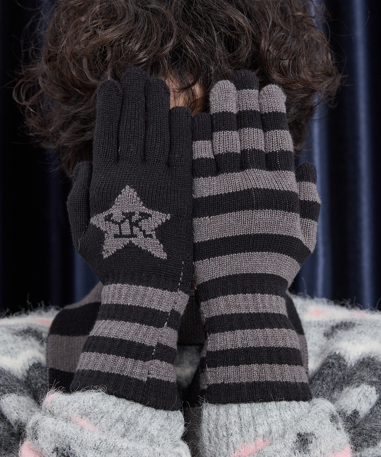 Stripe Star Knit Gloves CHARCOAL
