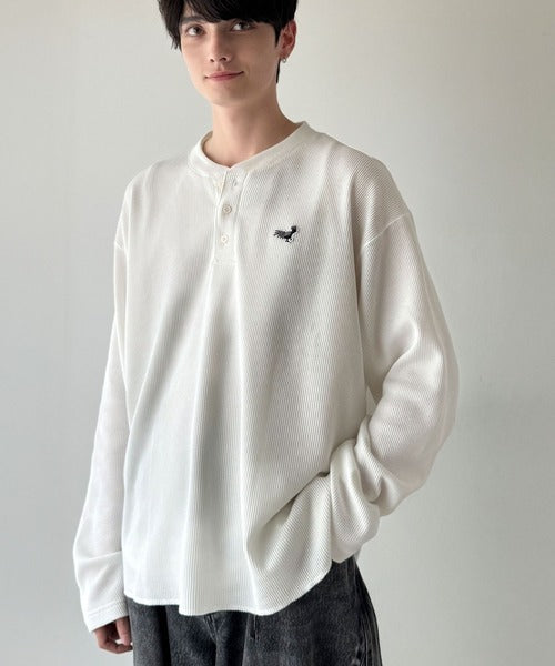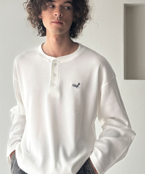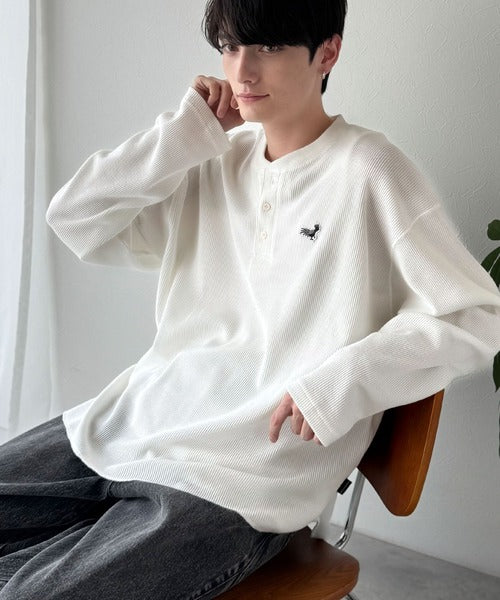 ピグメント加工サーマルヘンリーネックTシャツ」